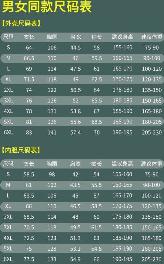 China (cm) 165 / 88-90 170 / 96-98 175 / 108-110 180 / 118-122 185 / 126-130