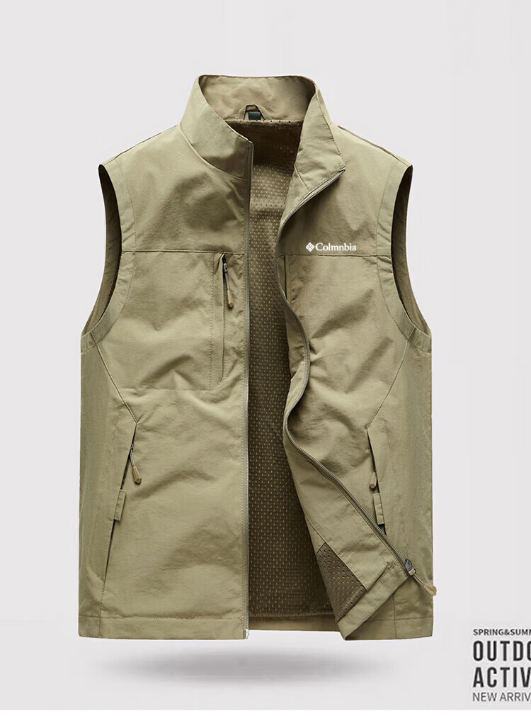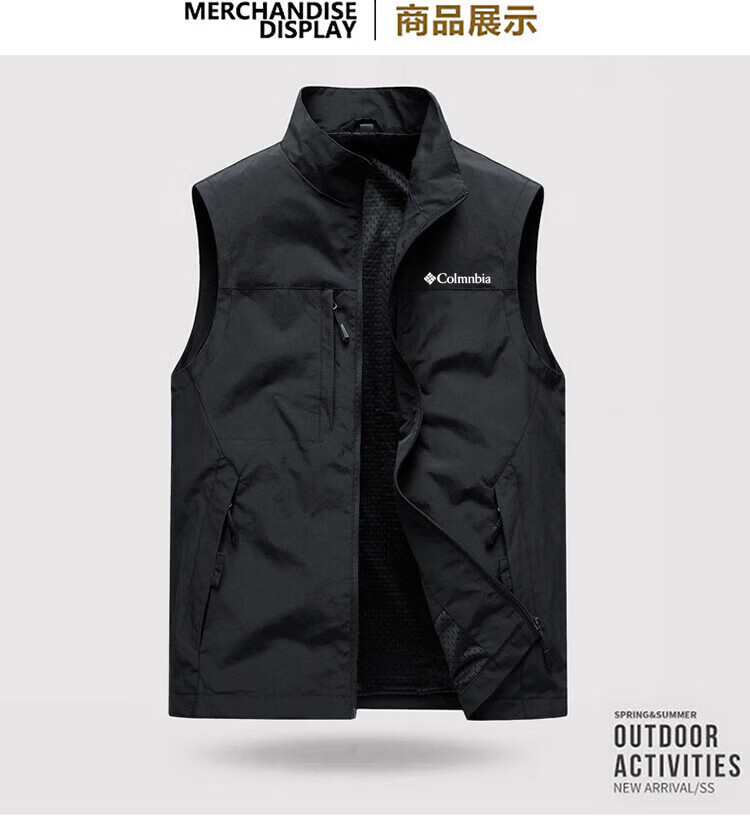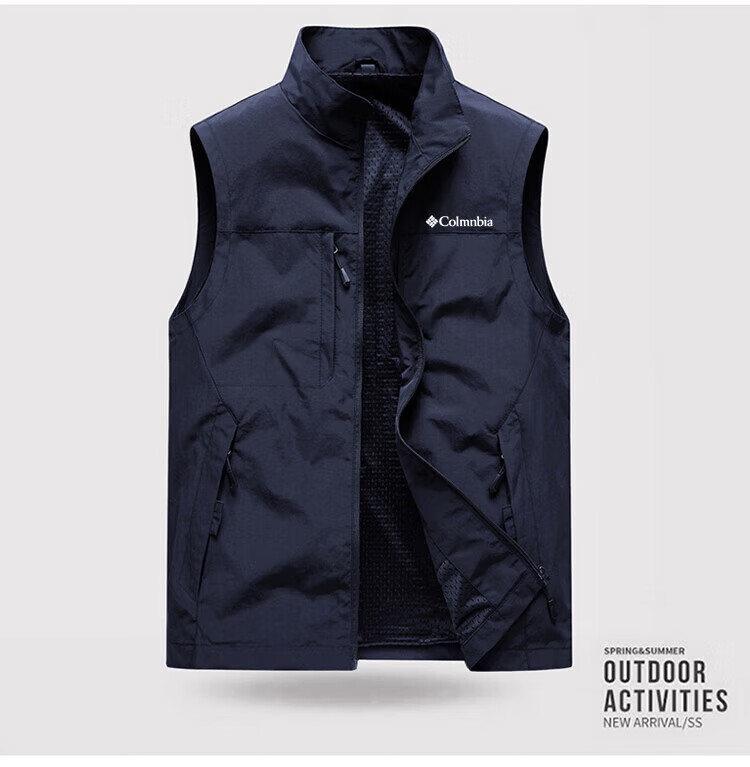 Columbia 2025 outdoor vest men's autumn casual vest fishing photography vest vest work jacket dark blue XL size