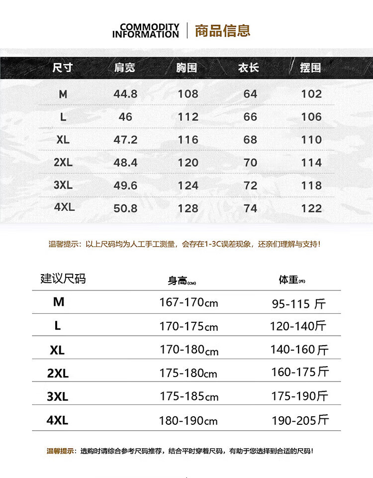 China (cm) 165 / 88-90 170 / 96-98 175 / 108-110 180 / 118-122 185 / 126-130