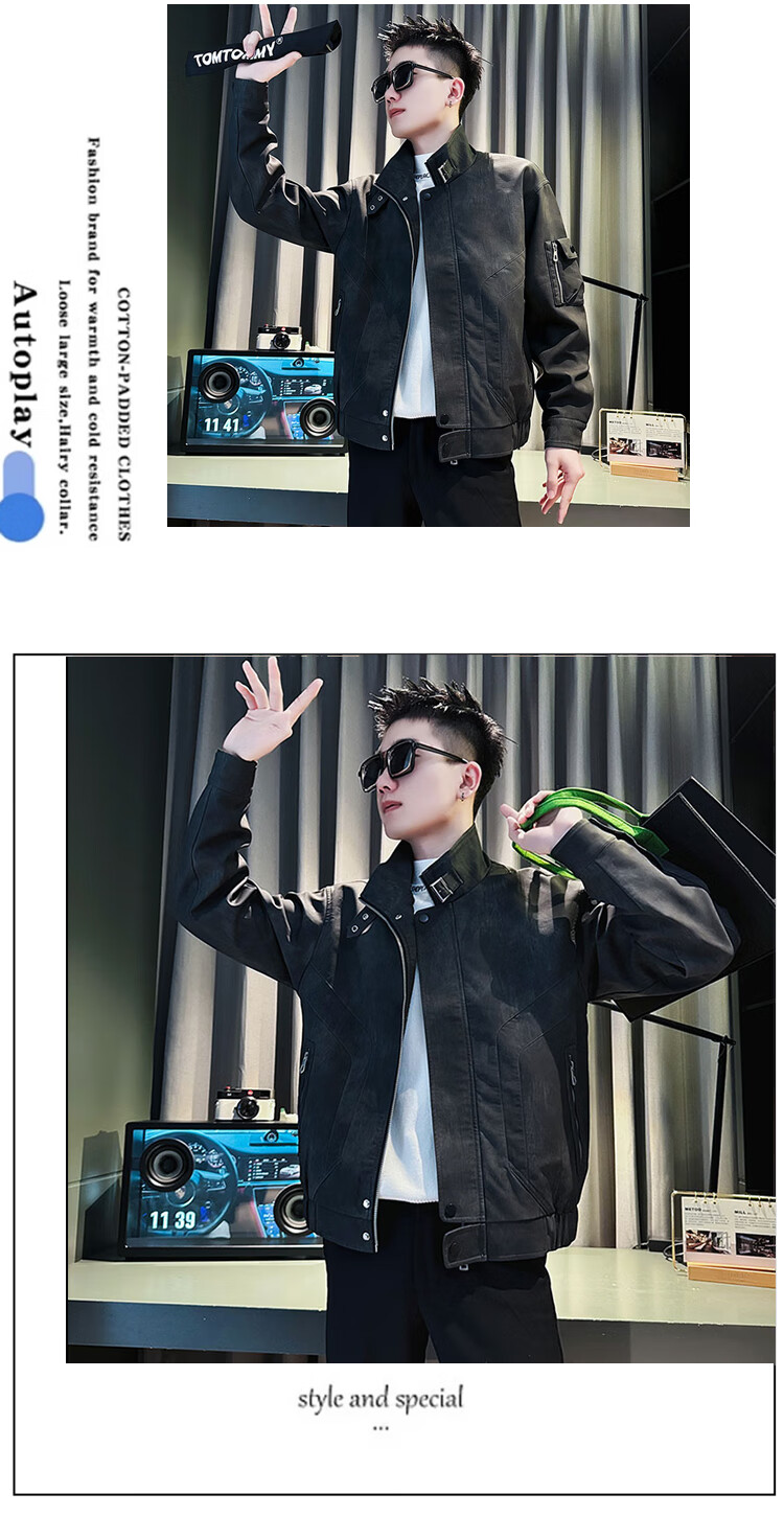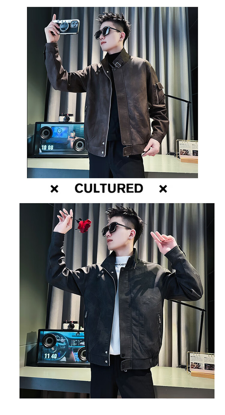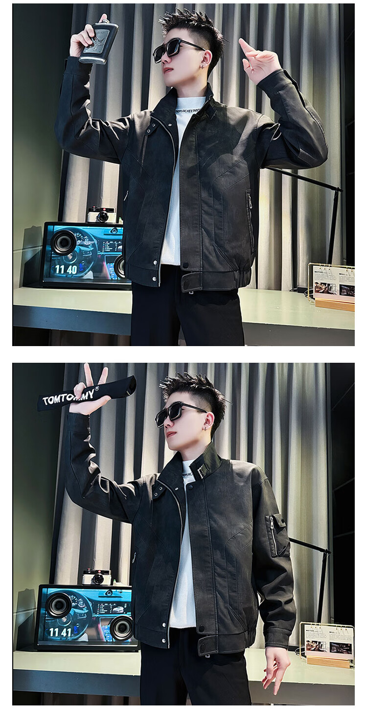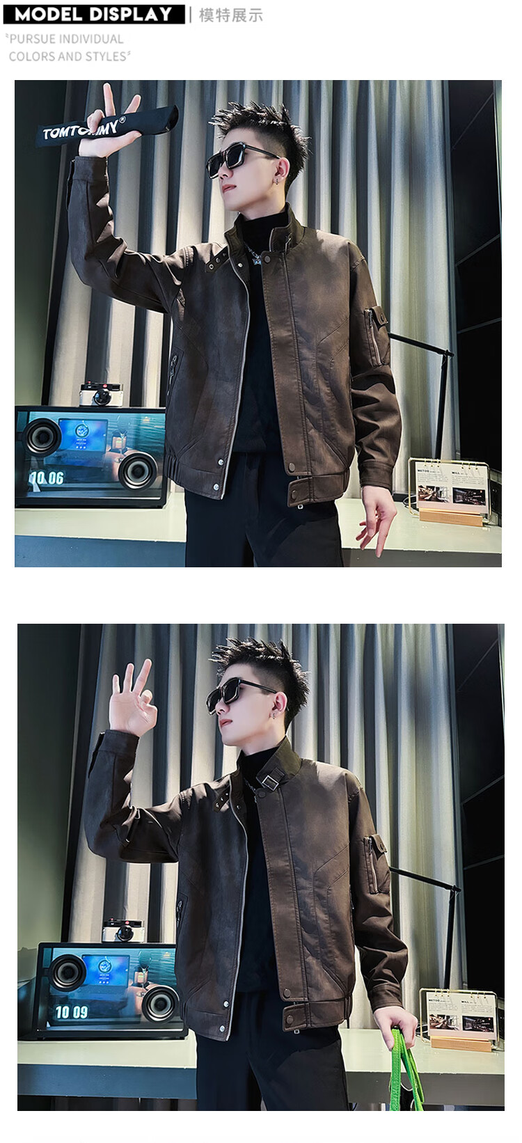 Мужская кожаная куртка с воротником-стойкой Playboy (PLAYBOY) с утолщенным топом на осень и зиму 2025 года, новая высококачественная красивая мотоциклетная кожаная куртка для мужчин кофейного цвета A343-JK180 M