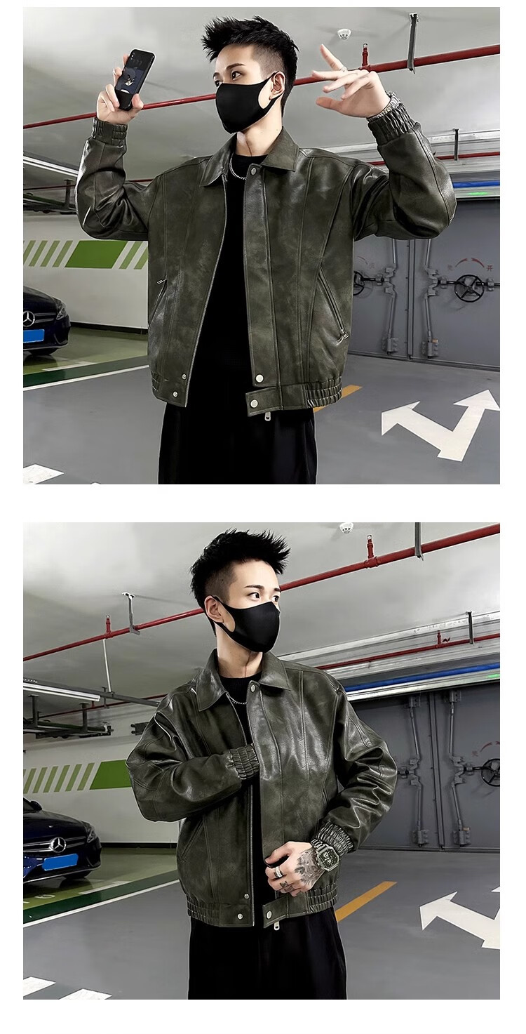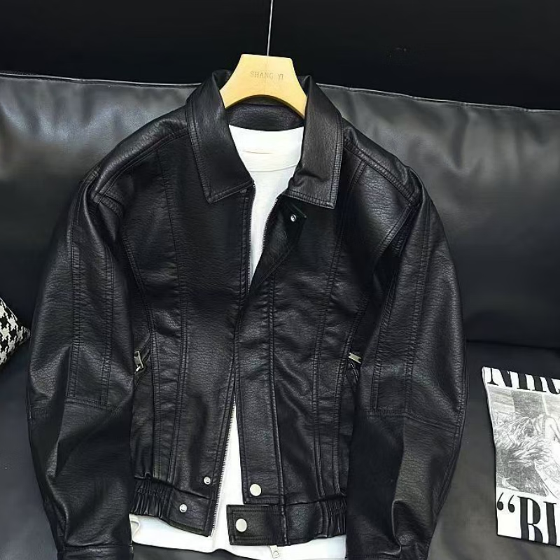 Playboy (PLAYBOY) Trendy Motorcycle Suit Leather Jacket Men's Jacket 2025 Autumn and Winter Short Lapel Casual Handsome Men's Leather Jacket Black Cotton D313-J92 Thickened L