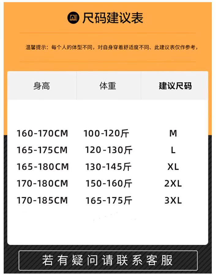China (cm) 165 / 88-90 170 / 96-98 175 / 108-110 180 / 118-122 185 / 126-130