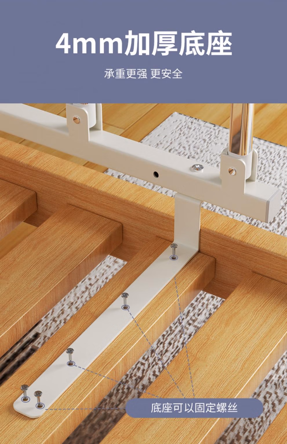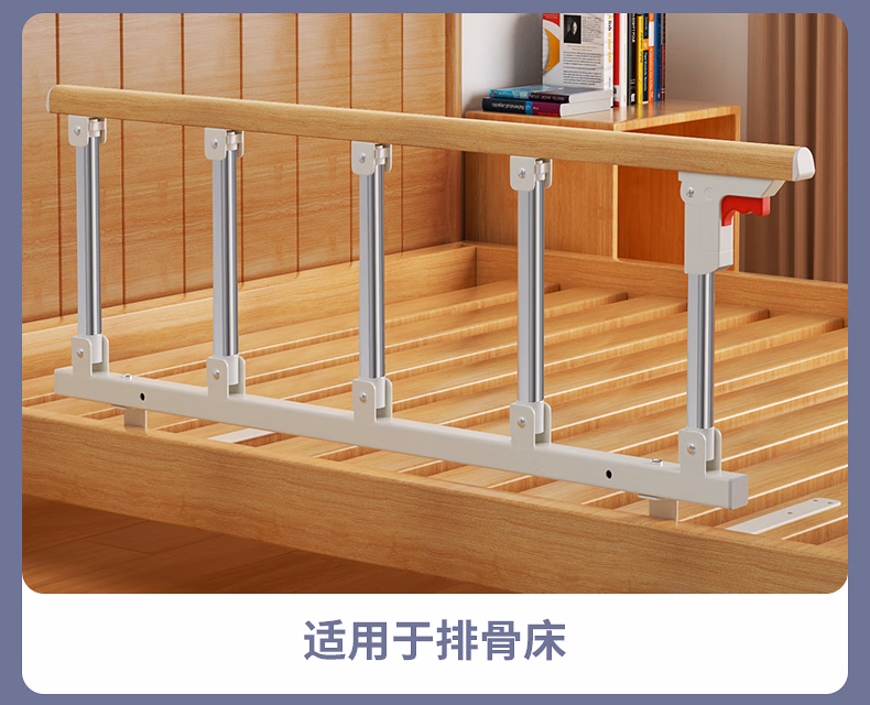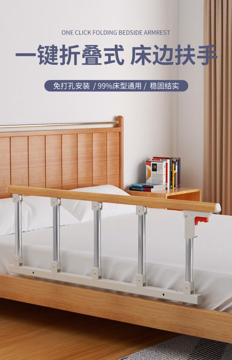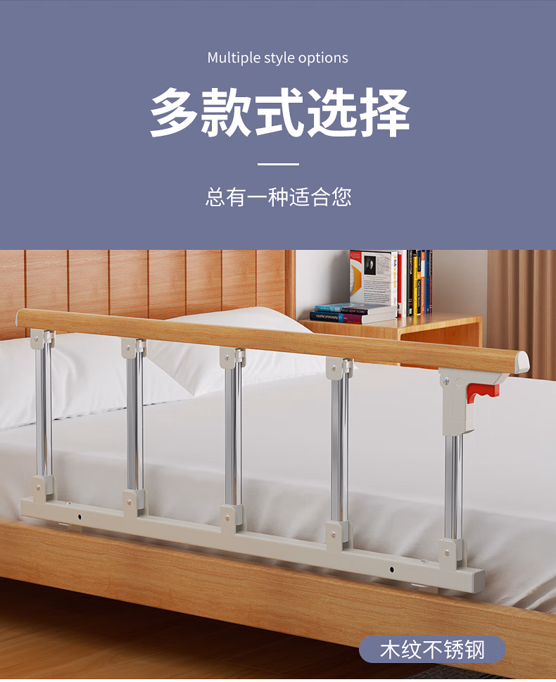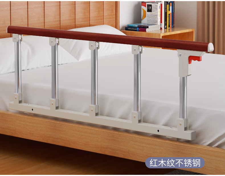 Bedside anti-fall guardrail, bedside armrest, elderly riser, crib fence guardrail, anti-fall guardrail, bed guardrail, one side, three-level wood grain color | thickened stainless steel | 8 cm base (universal base, suitable for most bed types) free installation tools, quality materials, lifetime warranty