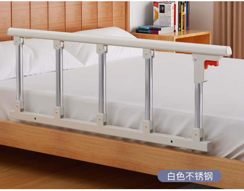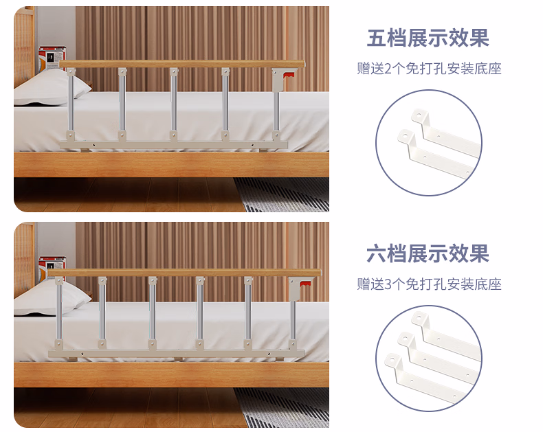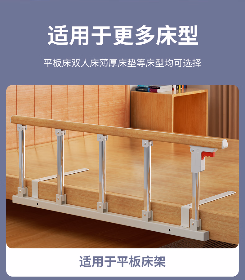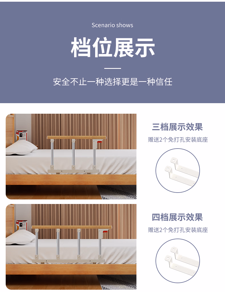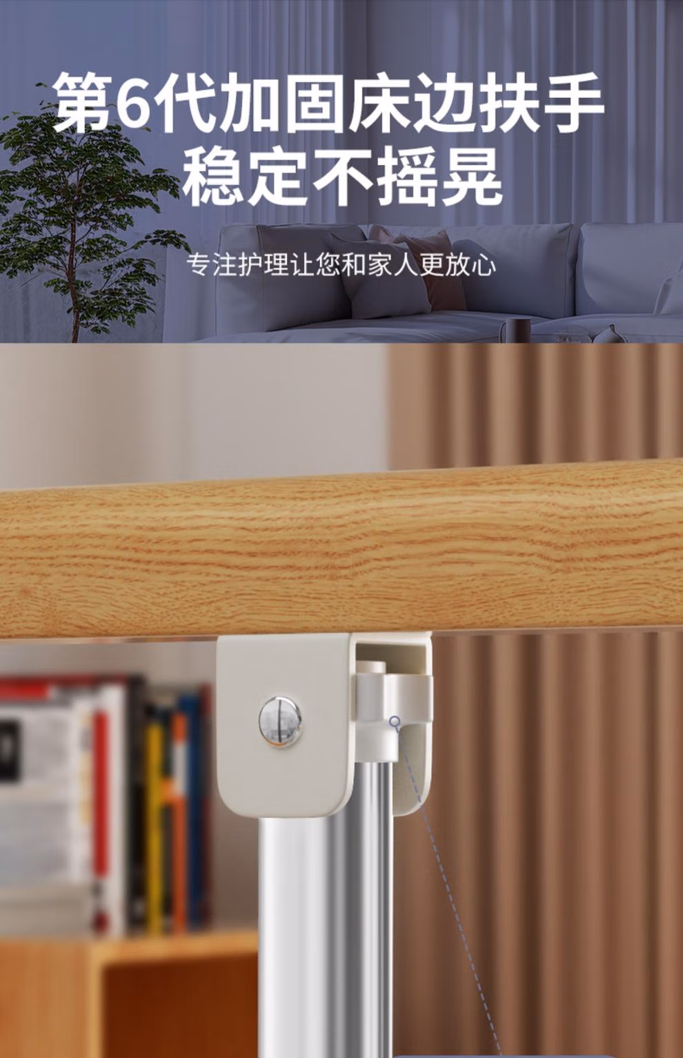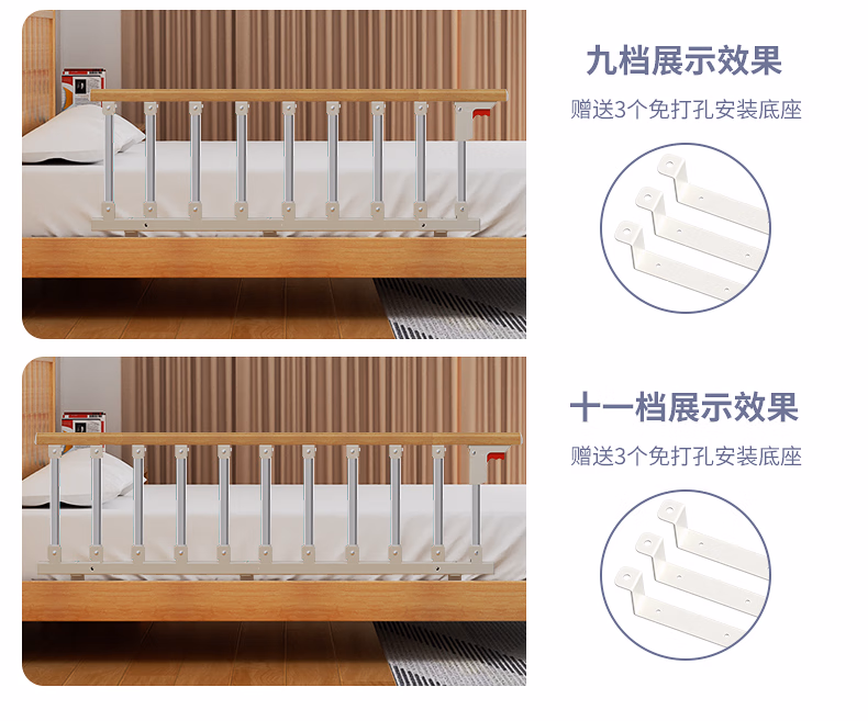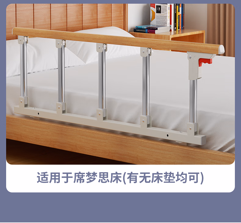 Bedside anti-fall guardrail, bedside armrest, elderly riser, crib fence guardrail, anti-fall guardrail, bed guardrail, one side, three-level wood grain color | thickened stainless steel | 8 cm base (universal base, suitable for most bed types) free installation tools, quality materials, lifetime warranty