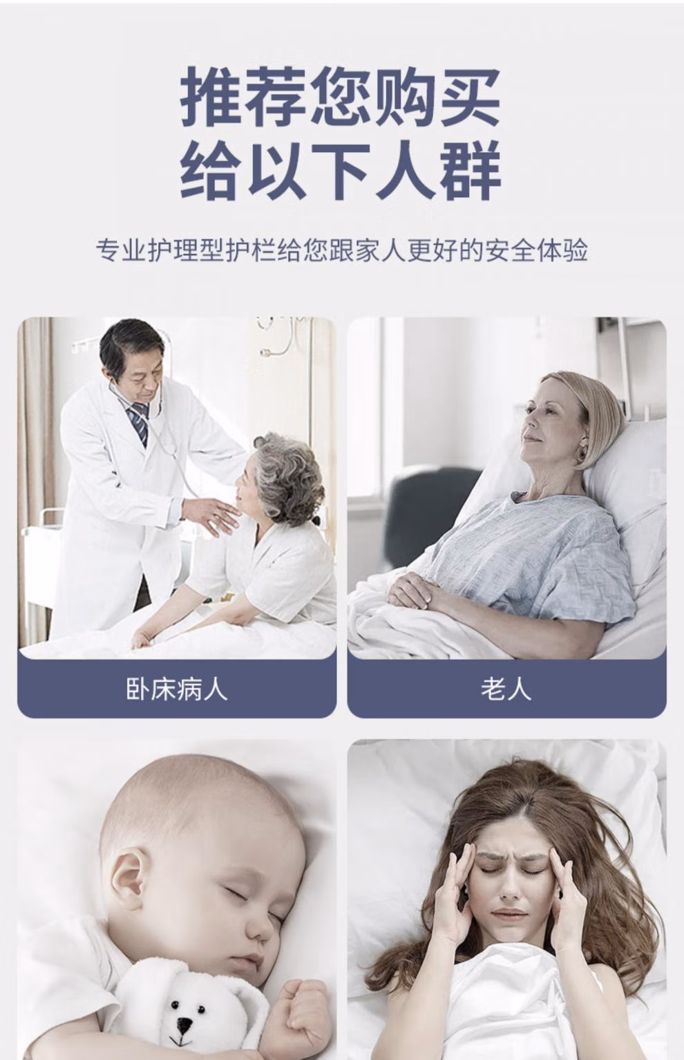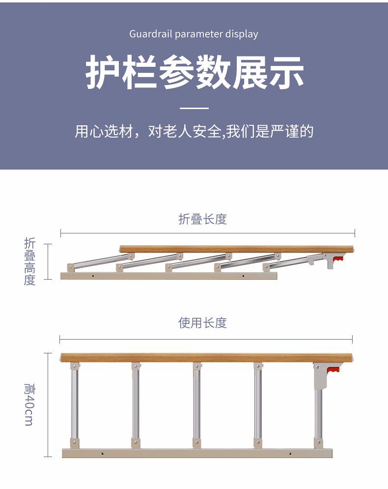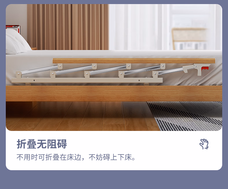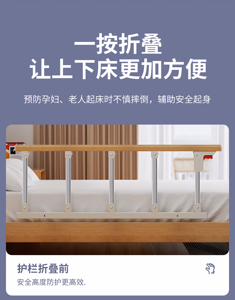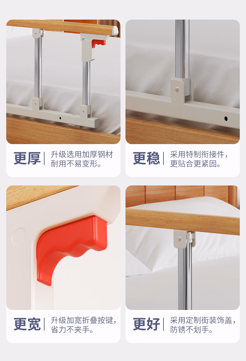 Bedside anti-fall guardrail, bedside armrest, elderly riser, crib fence guardrail, anti-fall guardrail, bed guardrail, one side, three-level wood grain color | thickened stainless steel | 8 cm base (universal base, suitable for most bed types) free installation tools, quality materials, lifetime warranty