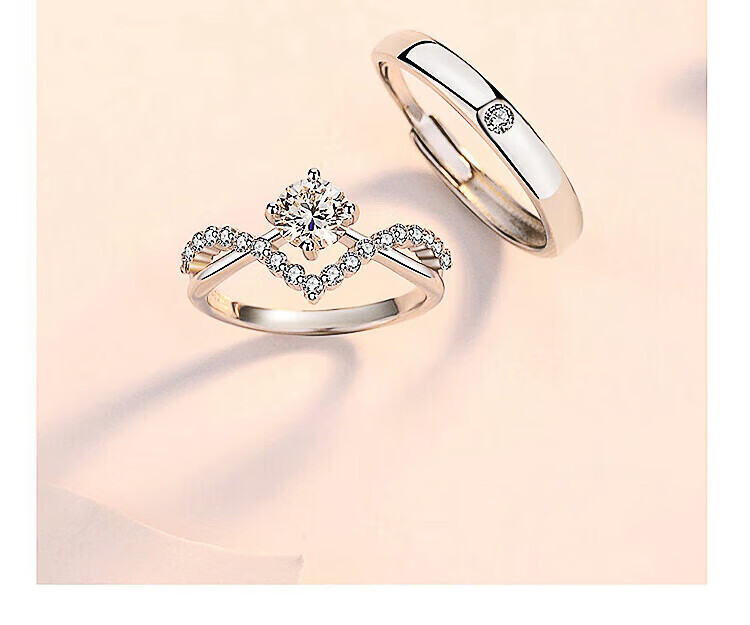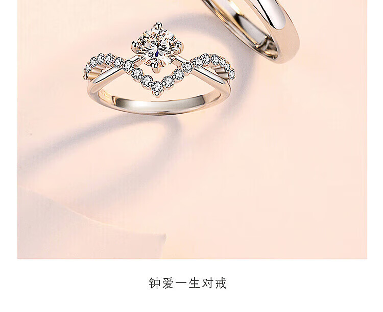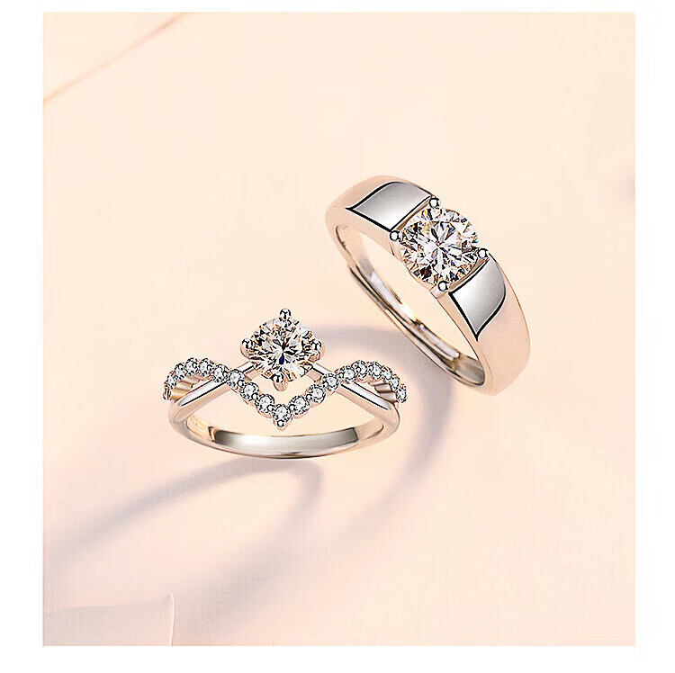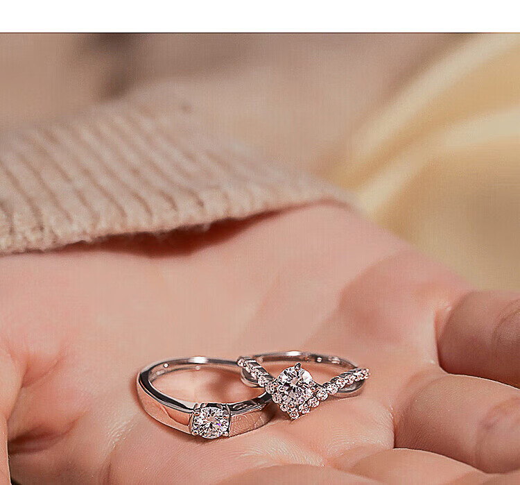 Pt950 platinum moissanite diamond ring couple ring wedding proposal niche design gift to girlfriend a pair of rings from one to the end - light luxury style
