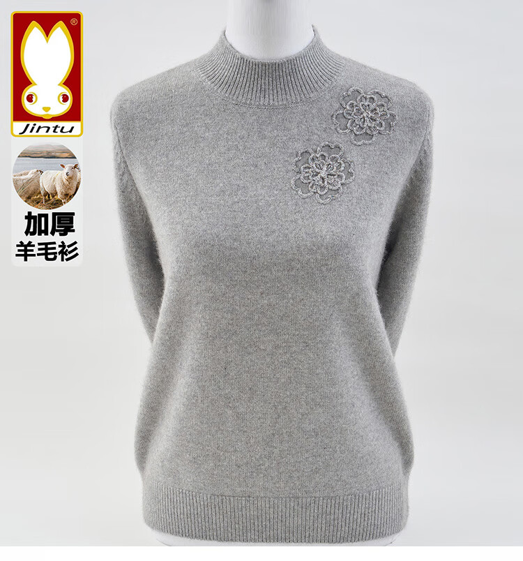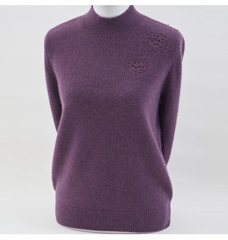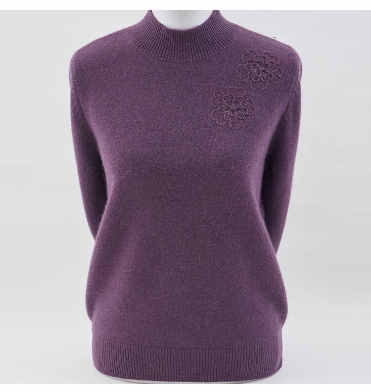 Jintu high-end woolen sweater for women in autumn and winter new style half turtleneck sweater loose thickened warm mother knitted bottoming top purple thick section XL recommended 105-120Jin Jin equals 0.5 kg