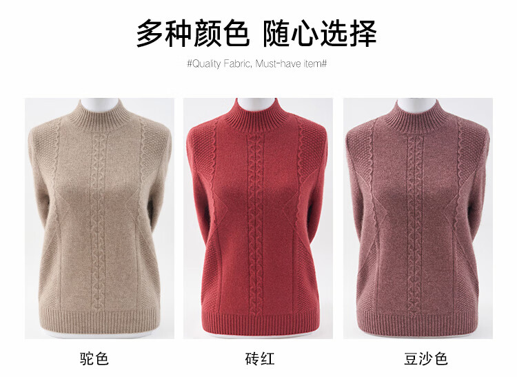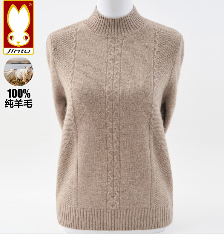 Jintu high-end autumn and winter half turtleneck cardigan women's sweater women's autumn and winter new thickened warm mother's bottoming shirt top camel thick section 4XL recommended 150-165Jin Jin equals 0.5 kg
