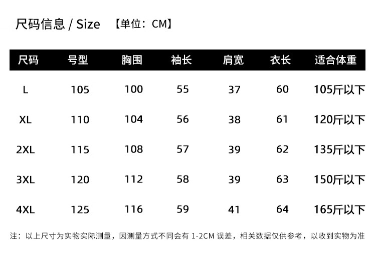 China (cm) 165 / 88-90 170 / 96-98 175 / 108-110 180 / 118-122 185 / 126-130