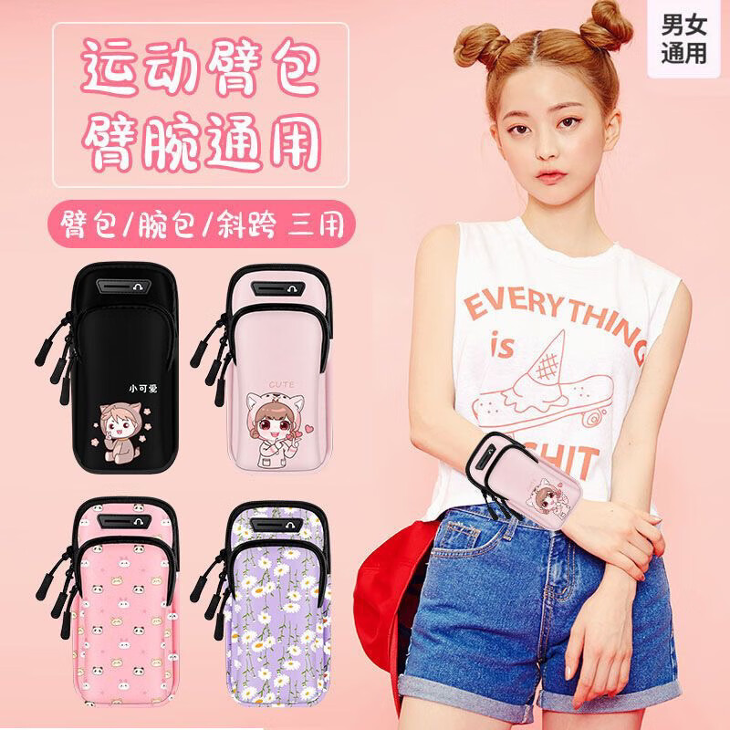 Chaosihui running mobile phone fitness sports men and women outdoor dancing arm universal wrist mobile phone arm bag crossbody dual use black flower