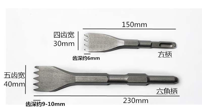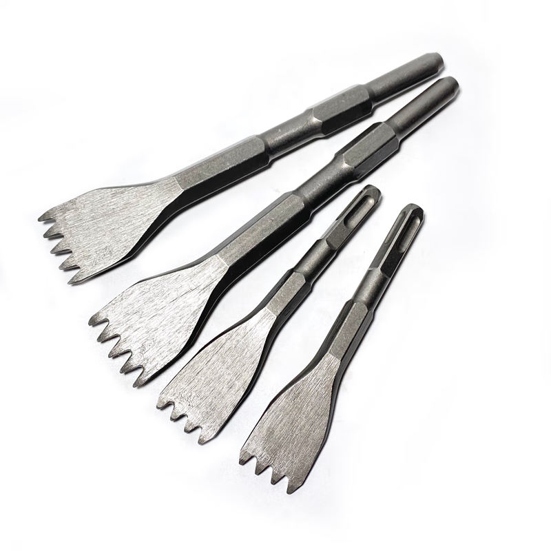 Electric pick chisel burr wall alloy shovel chisel slot electric hammer impact drill four-tooth flat shovel concrete cement chisel hexagonal handle 400 long 7 teeth