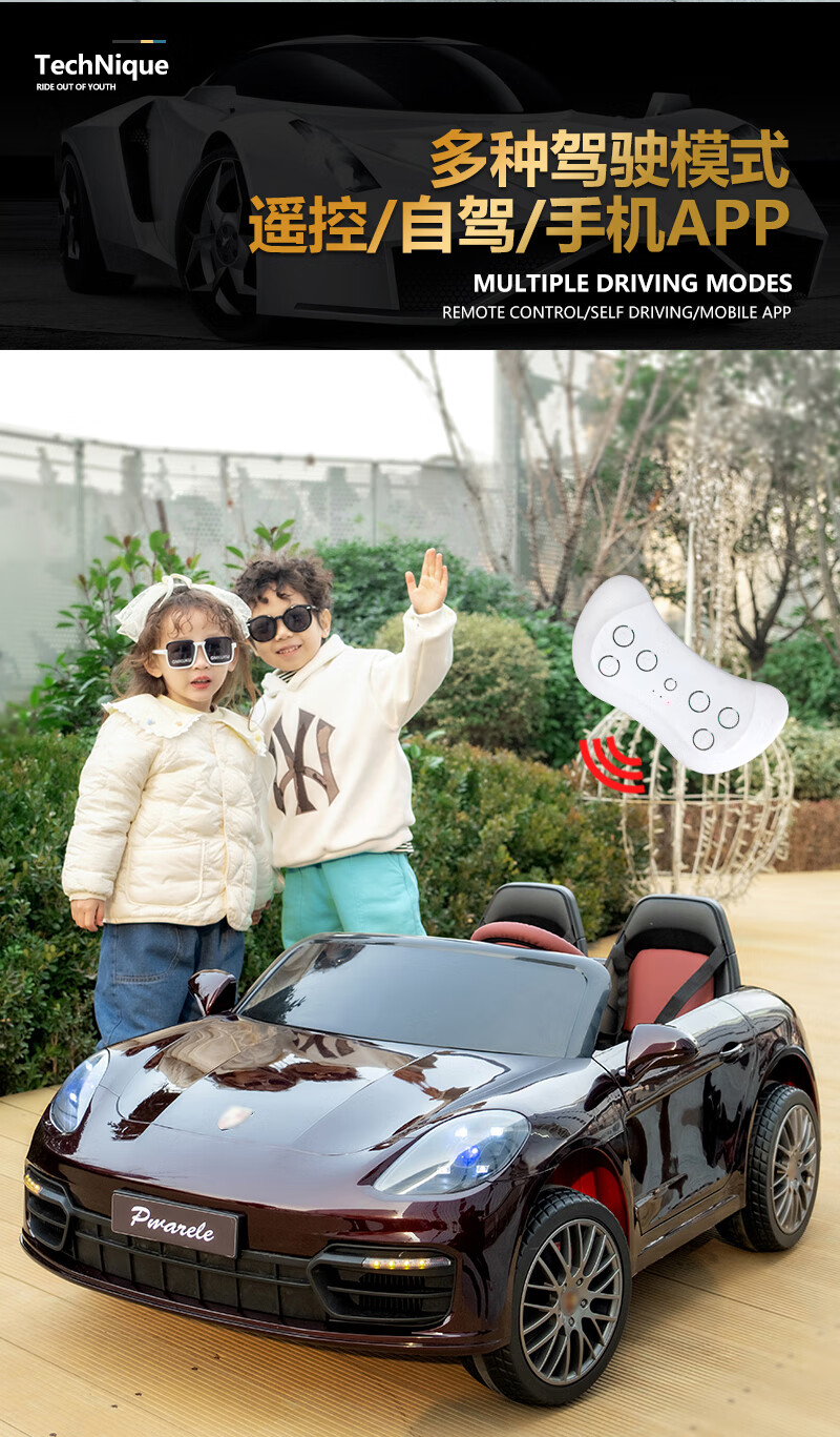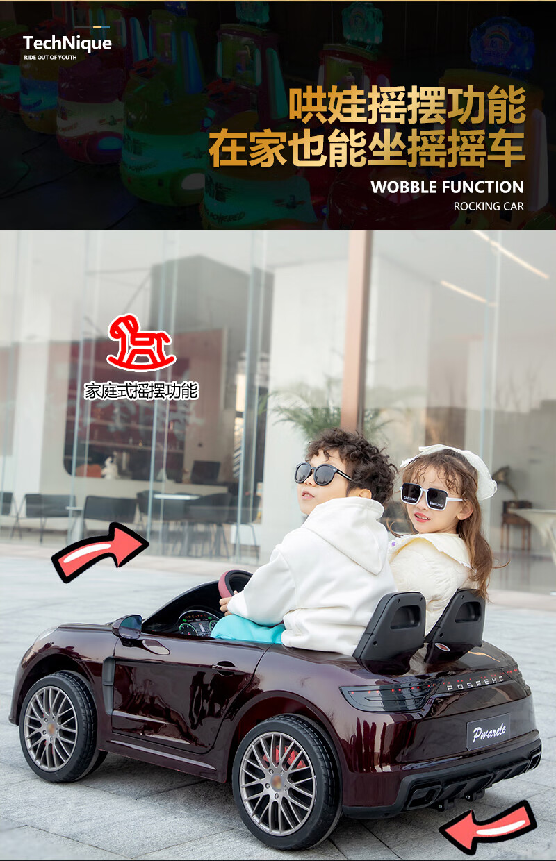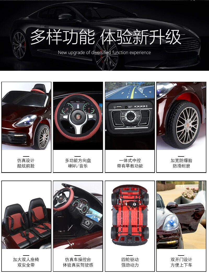 Aobele double children's electric car four-wheeled Paramela super large remote control toy stroller for adults and children standard version pink dual drive + 12V10A battery + leather seat + plastic wheels + full function