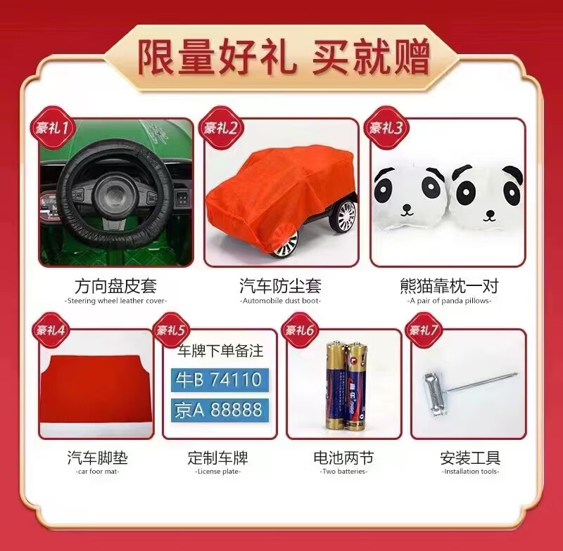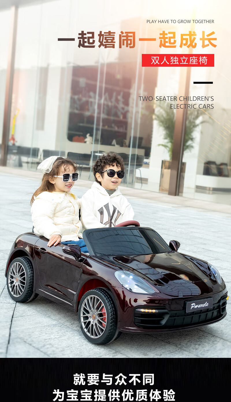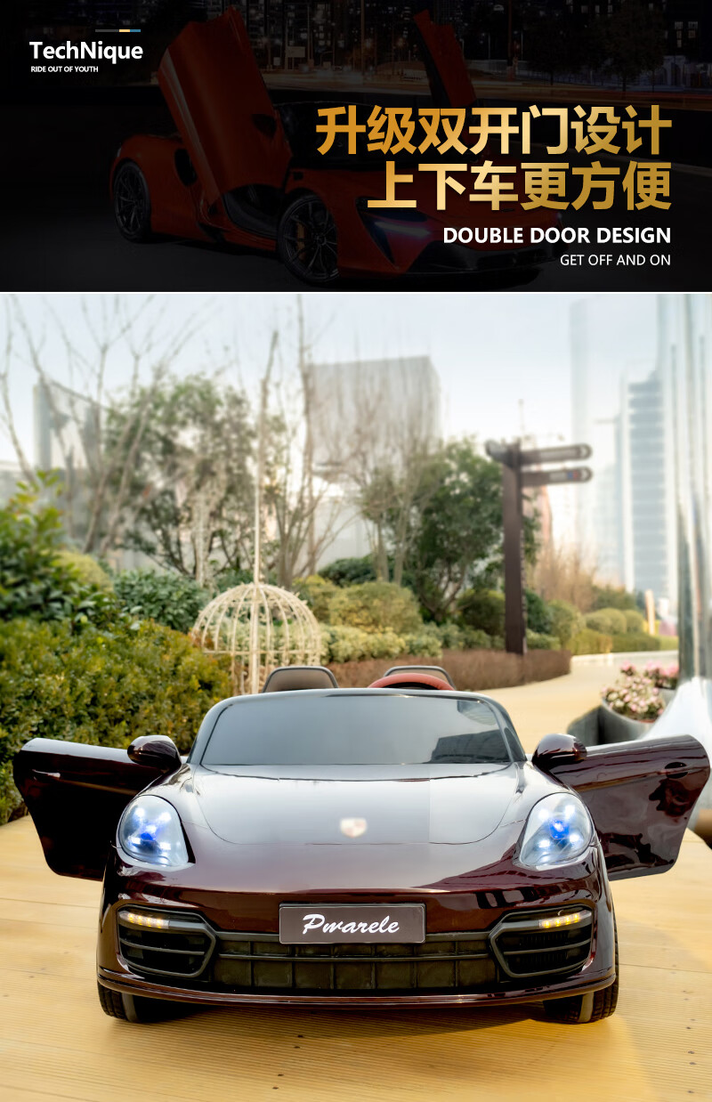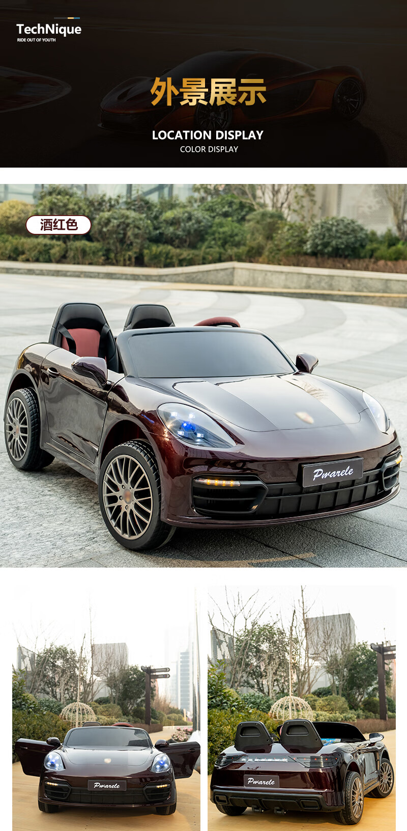 Aobele double children's electric car four-wheeled Paramela super large remote control toy stroller for adults and children standard version pink dual drive + 12V10A battery + leather seat + plastic wheels + full function
