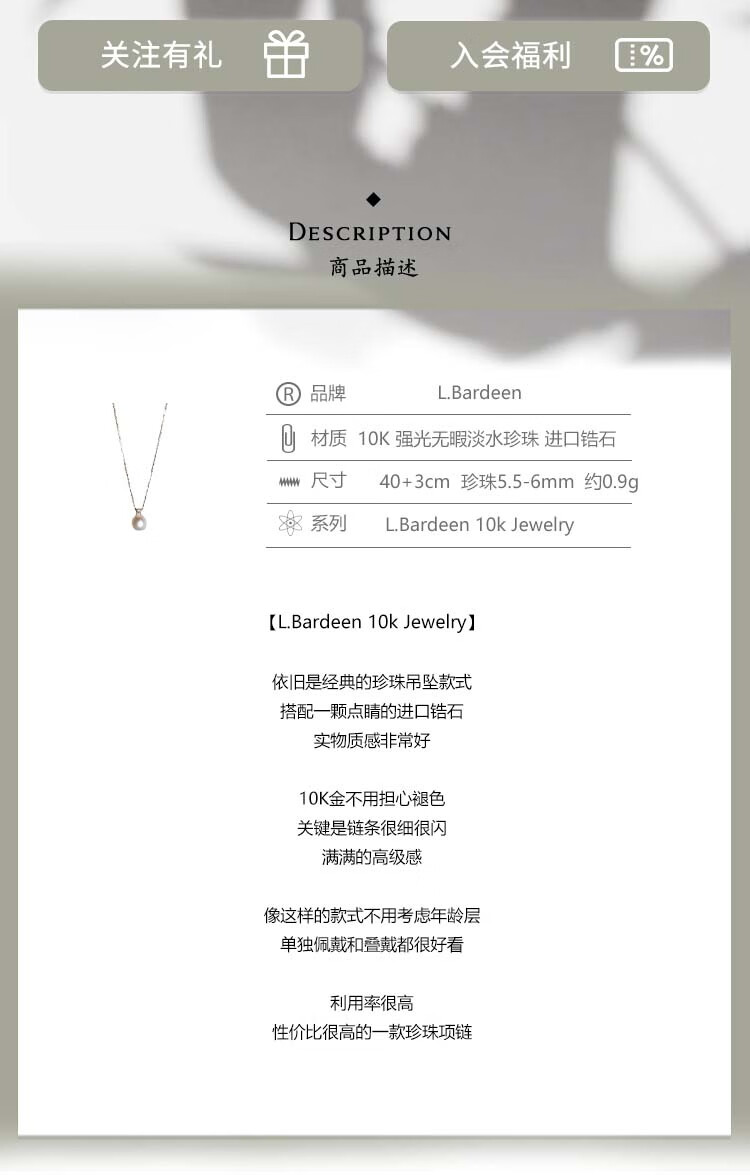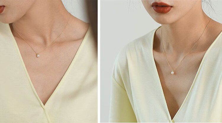 Pingyan 10k gold bright pearl pendant necklace women's minimalist clavicle chain necklace 10k gold pearl 5 points 5-6 spot