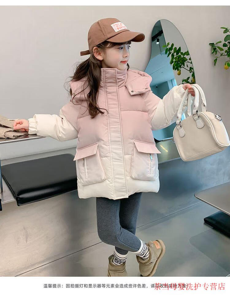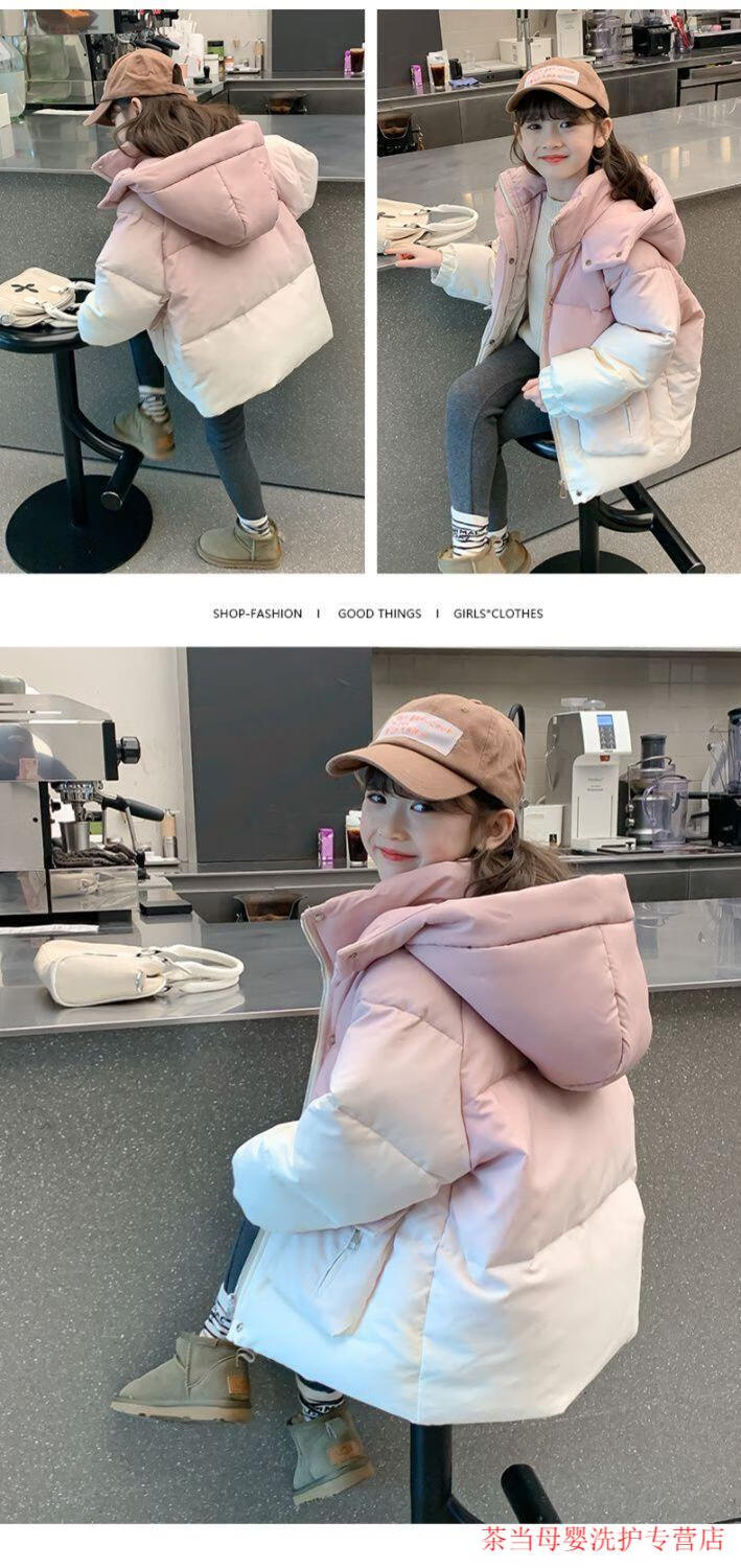G.duck Little Yellow Duck Girls' Cotton Clothes Winter Jackets Thick Warm Gradient Color Fashionable Western Fashion Middle and Older Children's Cotton Clothes Pink 319 Gradient Pink Sweaters 140 Suitable Height 130-140cm Age 9-10 Years Old