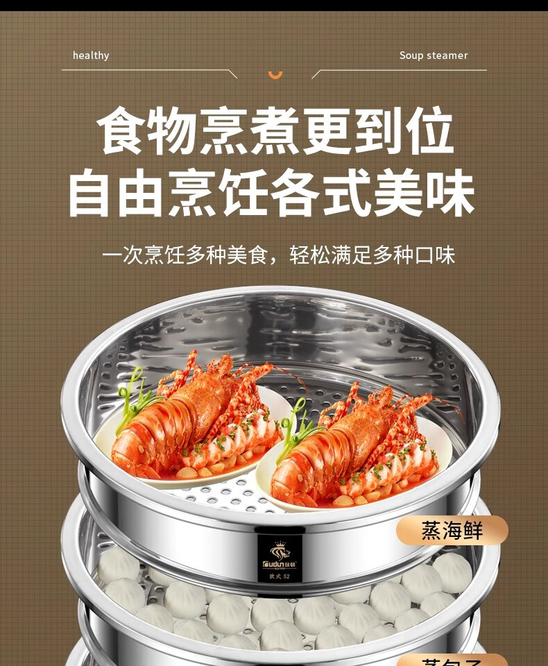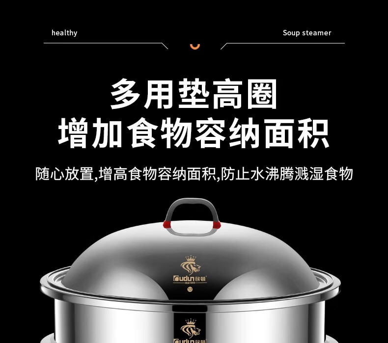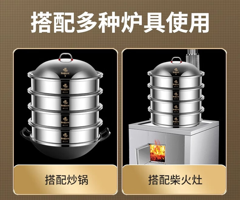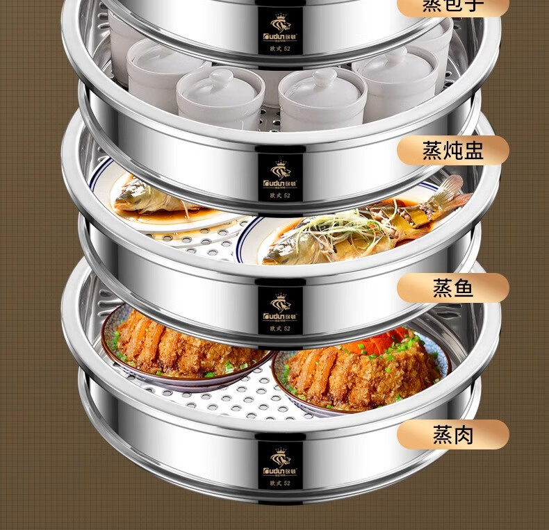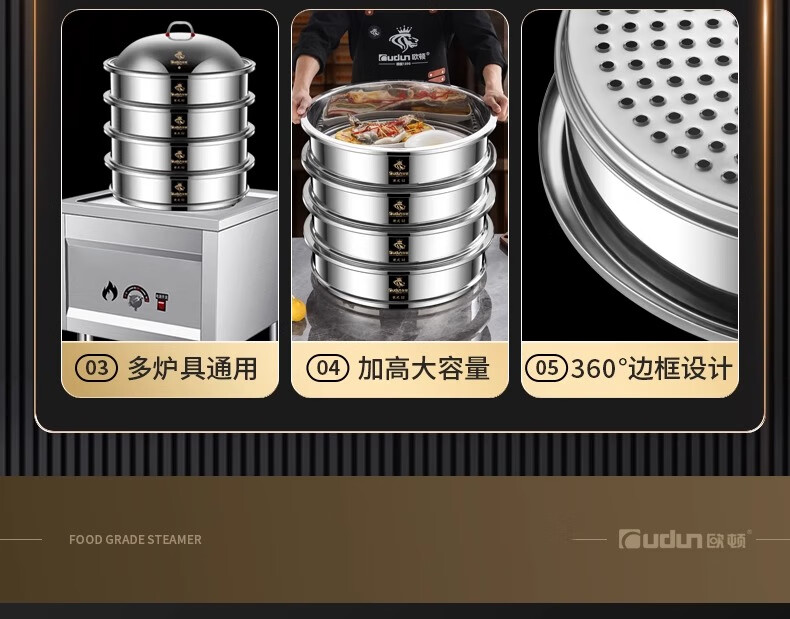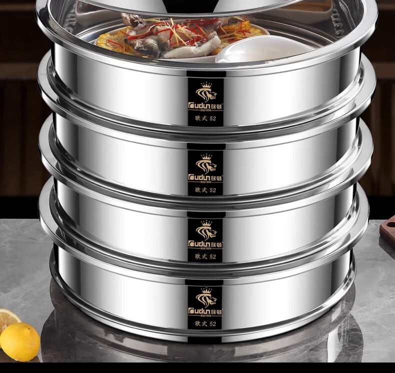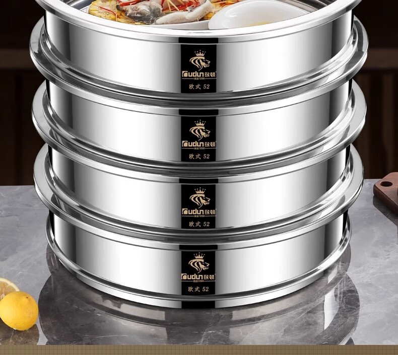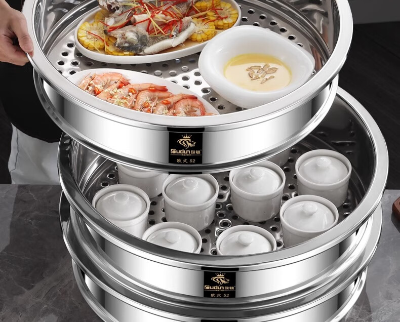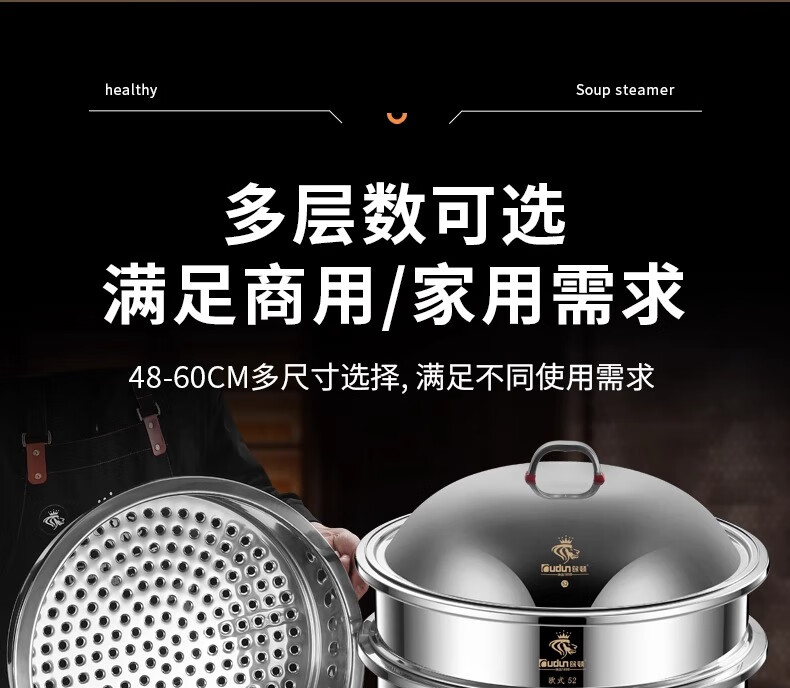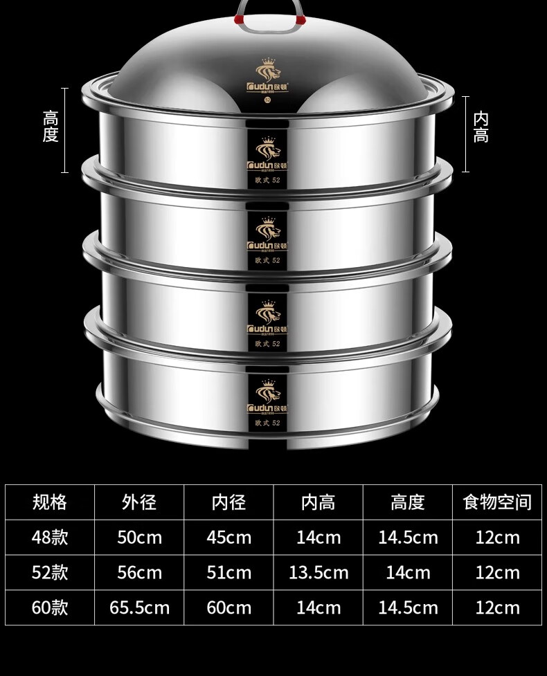 Orton stainless steel steamer, heightened and deepened, household commercial hotel canteen steamer large capacity multi-layer steamed meat and vegetable steamer 2 cages 1 cover 1 base new heightened and deepened 48 type