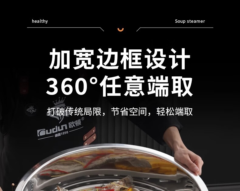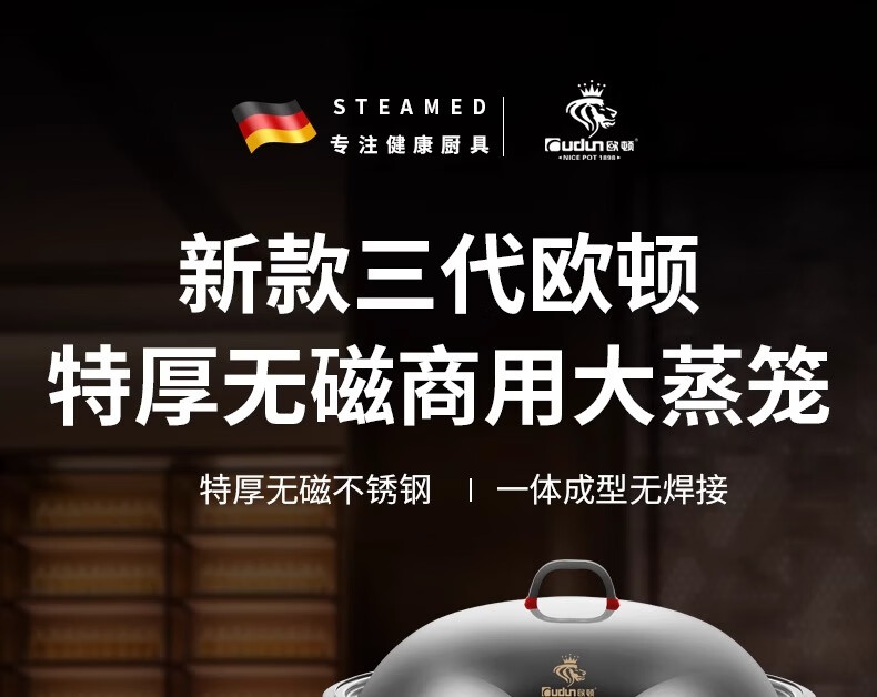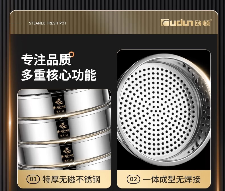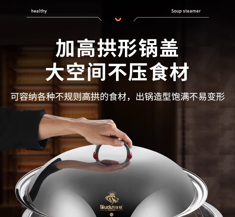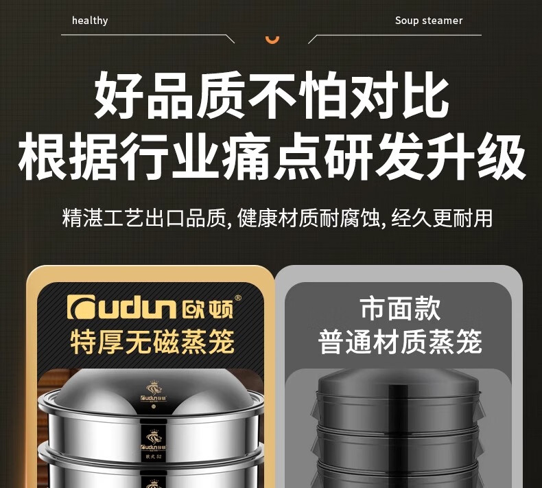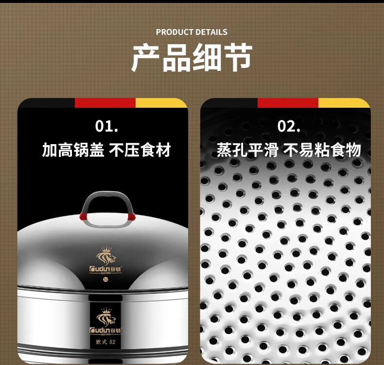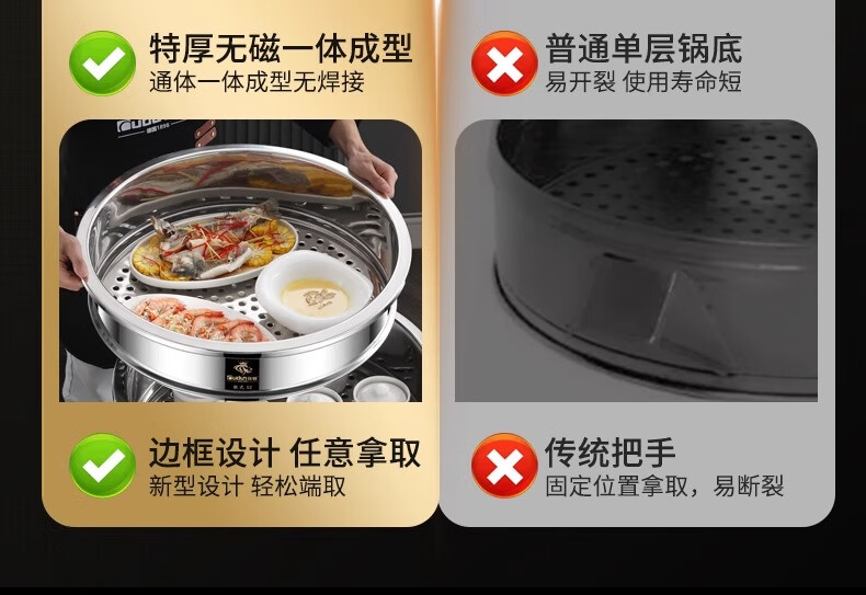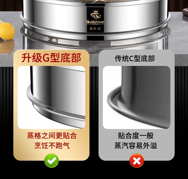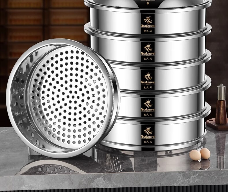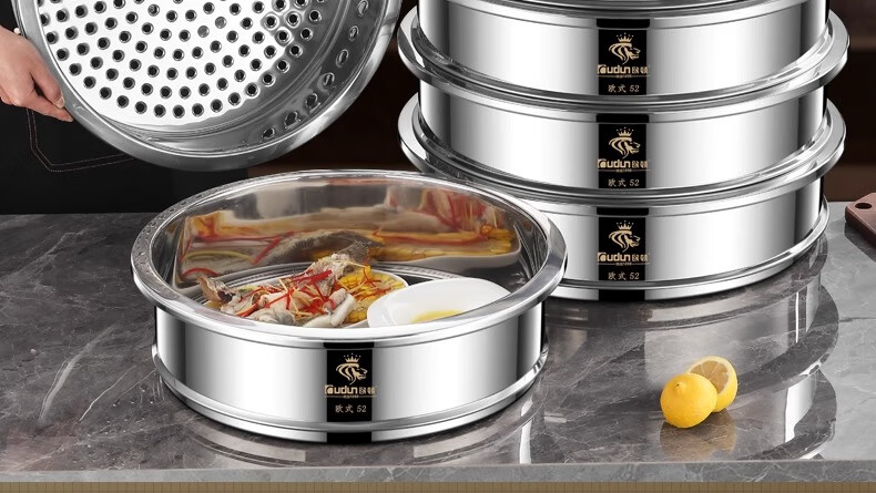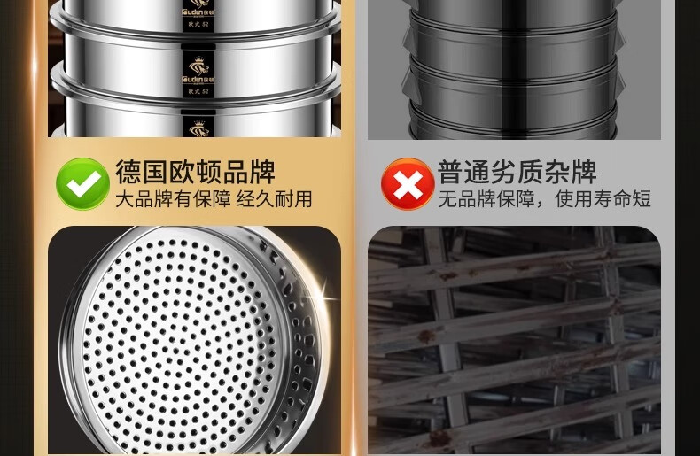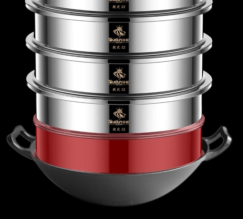 Orton stainless steel steamer, heightened and deepened, household commercial hotel canteen steamer large capacity multi-layer steamed meat and vegetable steamer 2 cages 1 cover 1 base new heightened and deepened 48 type