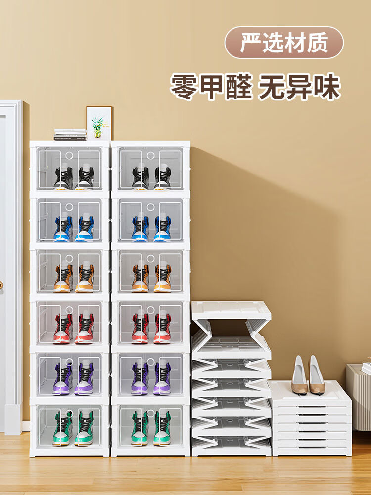 Installation-free shoe box storage box, transparent folding shoe cabinet, home door shoe storage artifact, space-saving shoe rack, 1 column, 9 layers, 9 compartments can hold 9 pairs of shoes, magnetic opening lid can hold 48 size shoes