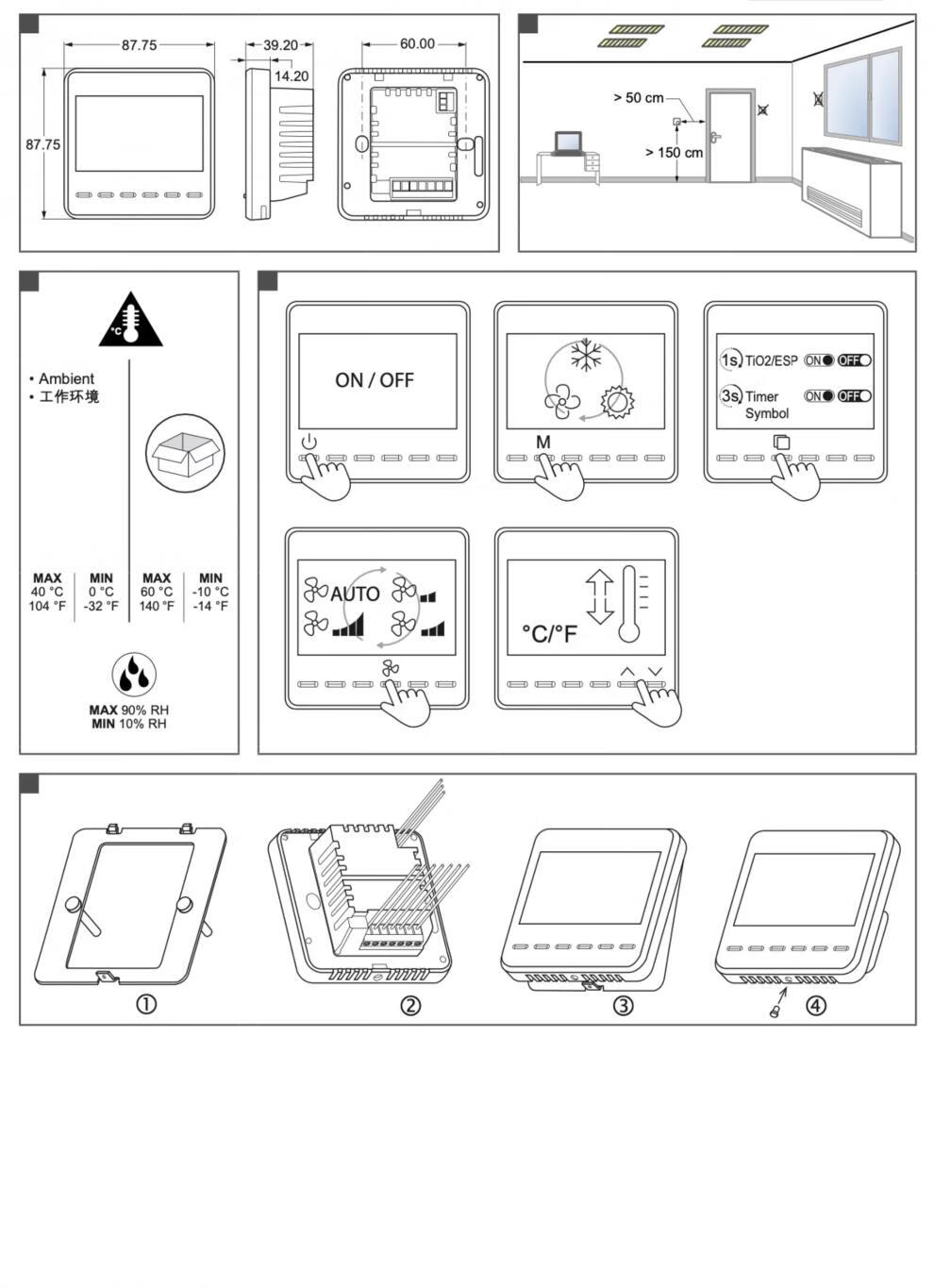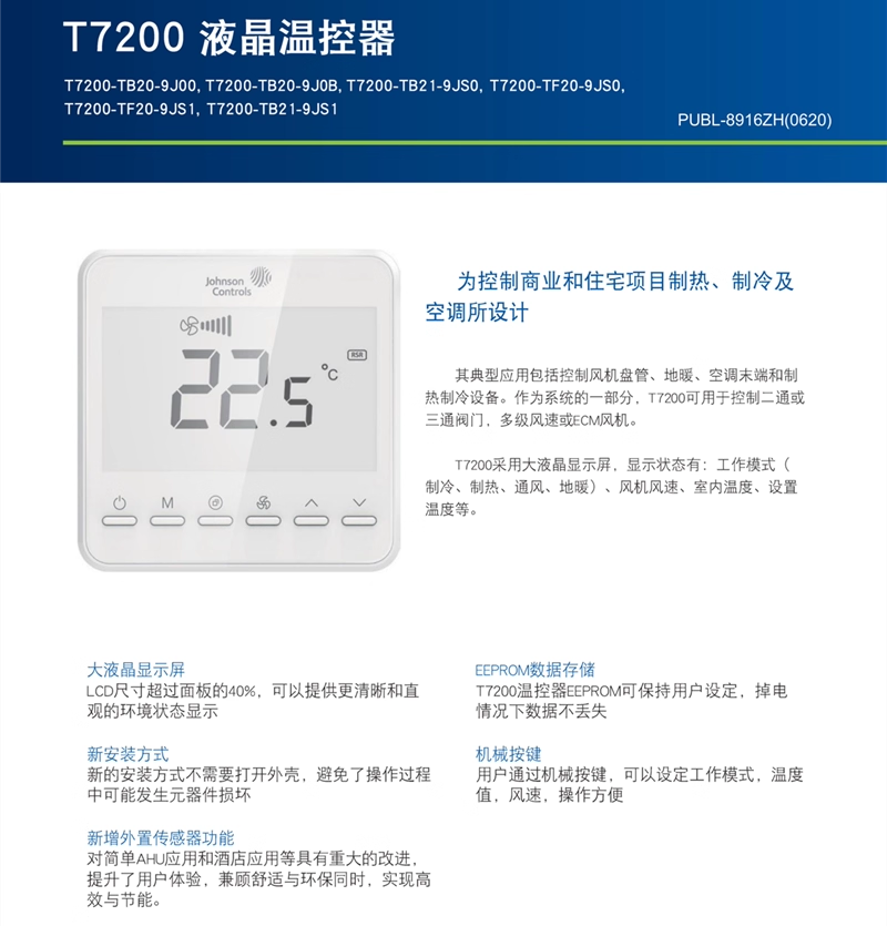 Johnson T7200-TB20-9J00 LCD fan coil panel thermostat central air conditioning switch two-pipe T7200-TB20-9J00_independent packaging_two-pipe
