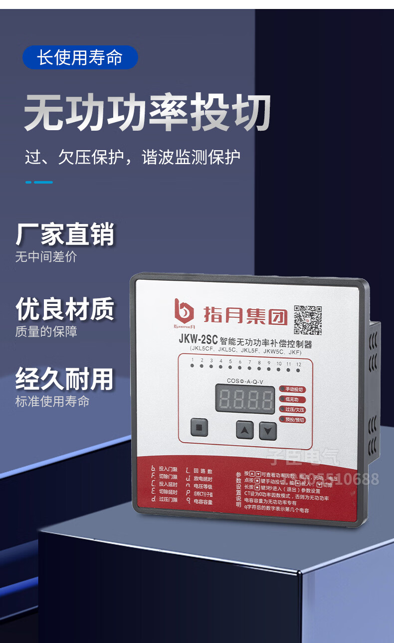 JKL5C Zhiyue intelligent reactive power automatic compensation controller-2SC/4/6/10/12 loop 220V JKW-10FC-12D four-quadrant hybrid for photovoltaic power generation