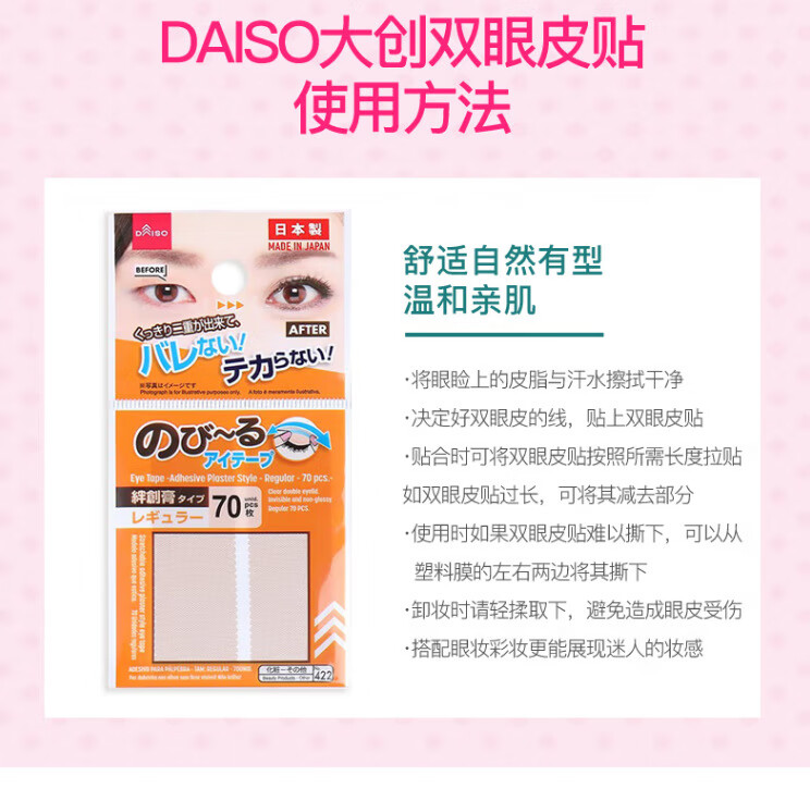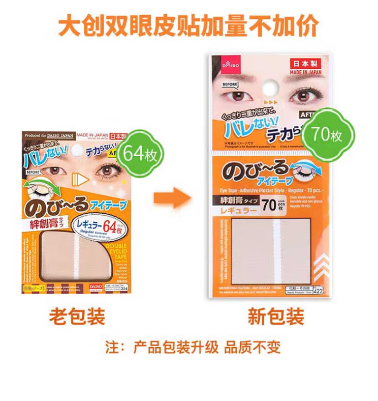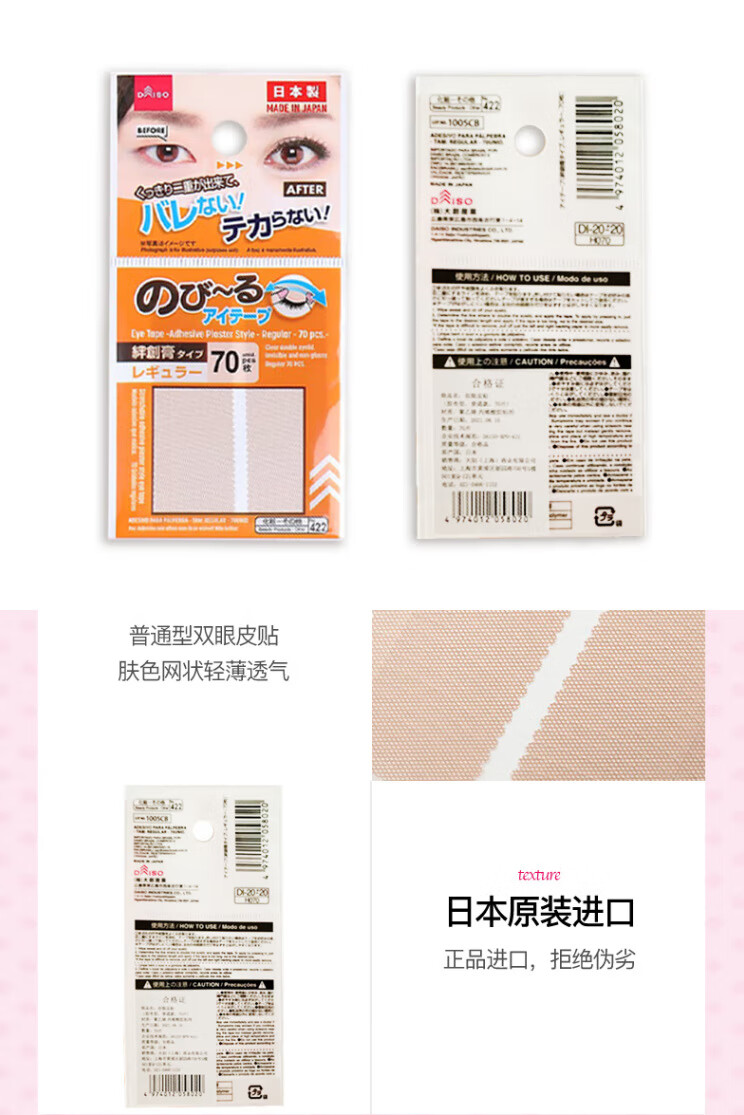 Daiso Japanese double eyelid patch for women, natural invisible, traceless skin color lace, single-sided, transparent and long-lasting, 1 piece, orange standard type, 106 pieces