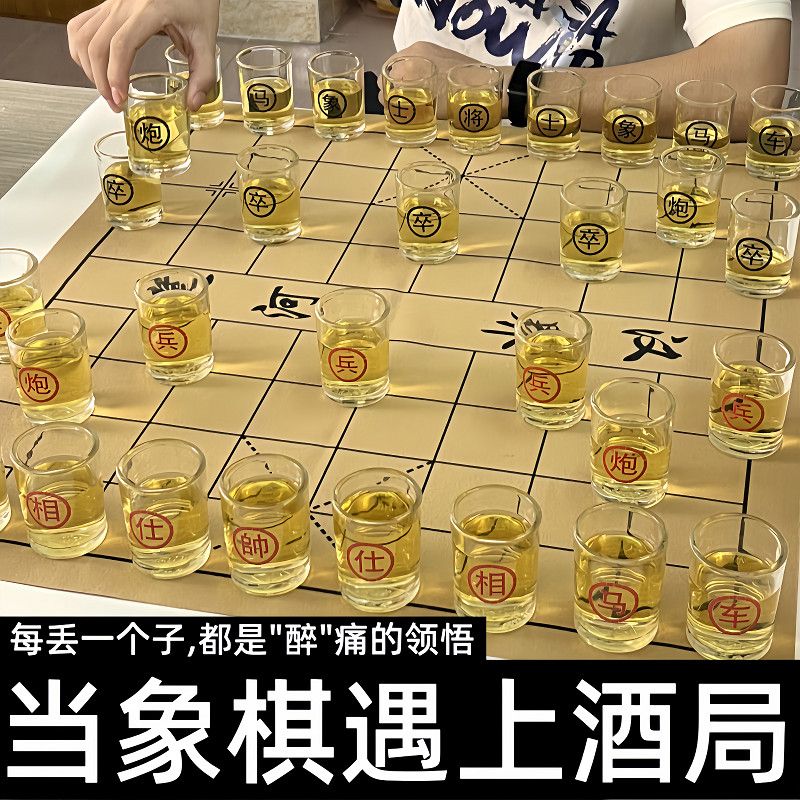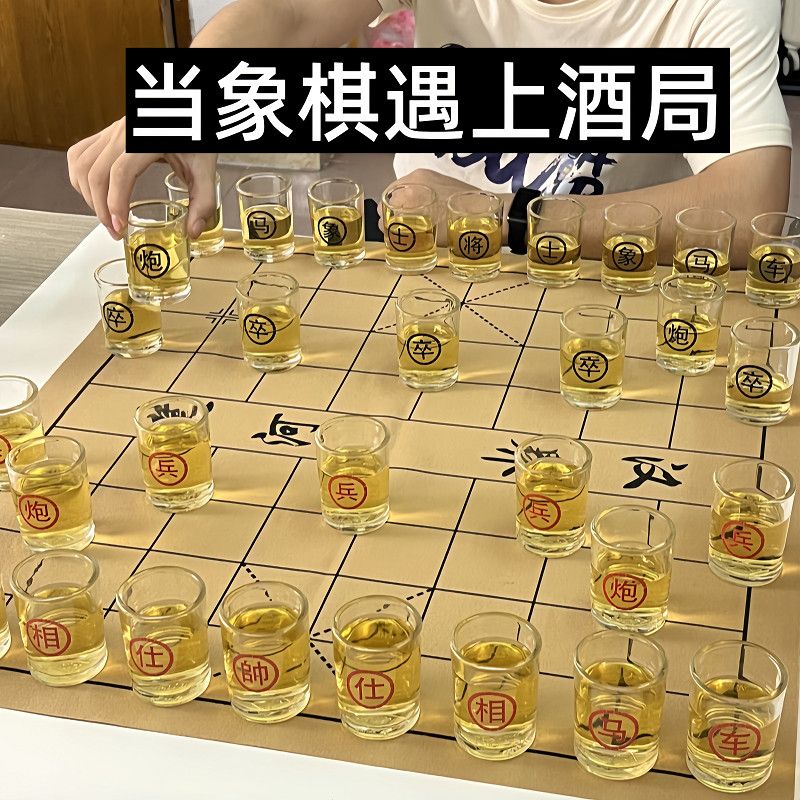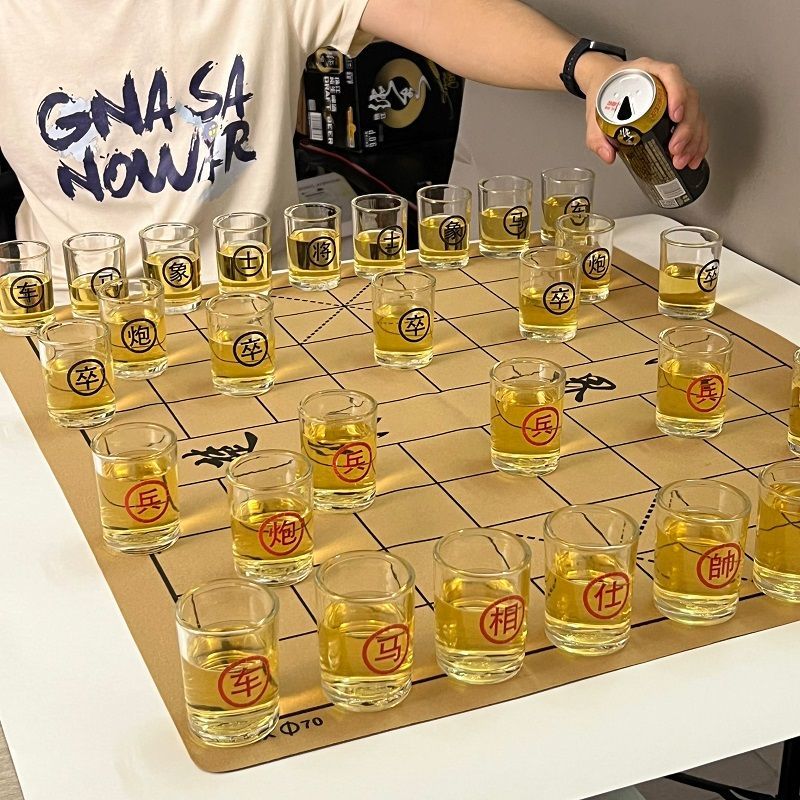 FANCYCHIC Chinese chess beer cup drinking KTV game props family entertainment drinking games new small games Chinese chess cup 32 chess cups with velvet chess cloth