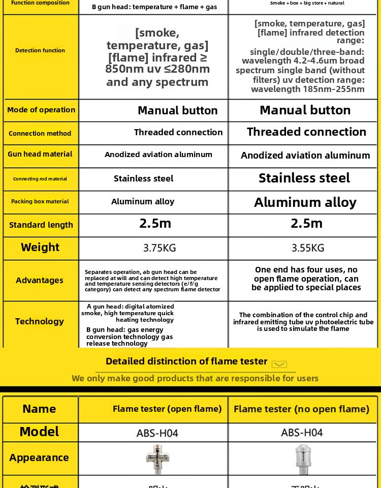 Aobos fire smoke gun and stem two-in-one temperature and smoke device detector flame detector ABS-Y12+_automatic smoke detector (2.2 meters)