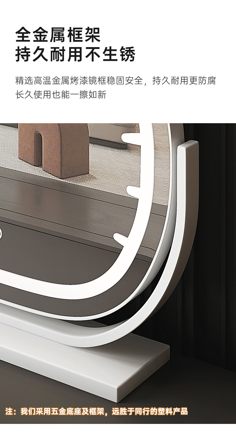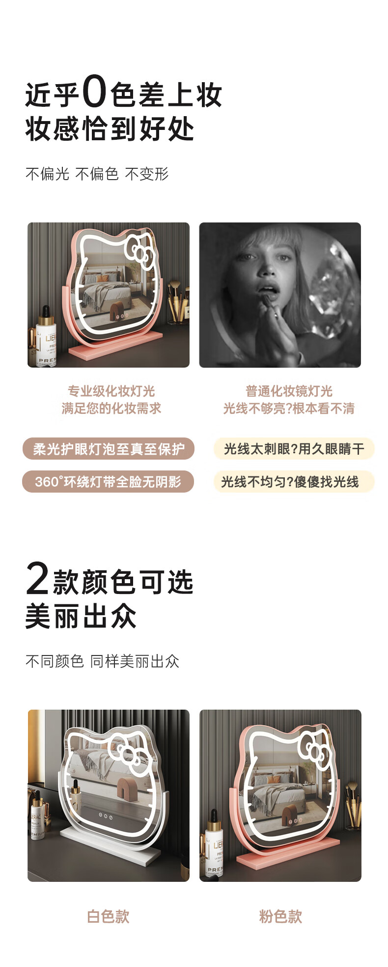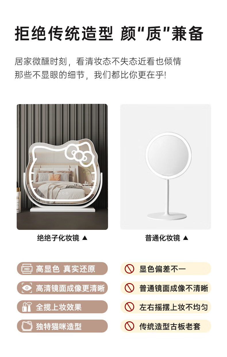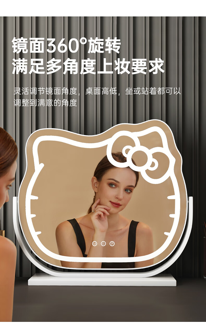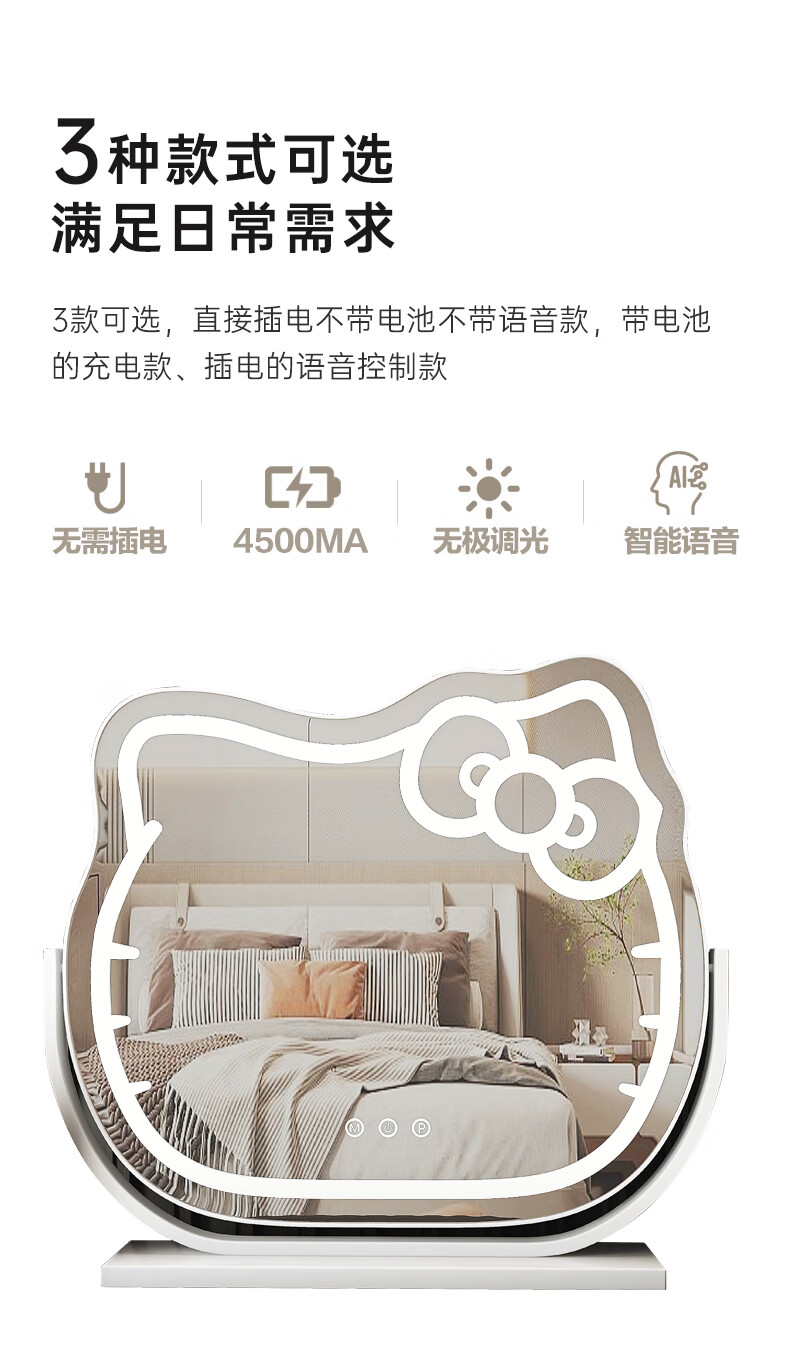 Mirror Kitty Makeup Mirror LED Desktop with Lights Smart Rechargeable Bedroom Makeup Mirror Hello Kitty Internet Celebrity Mirror Cat Large Milky White_Rechargeable Model