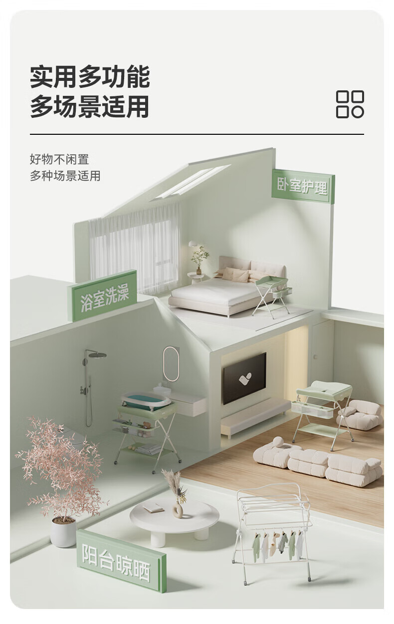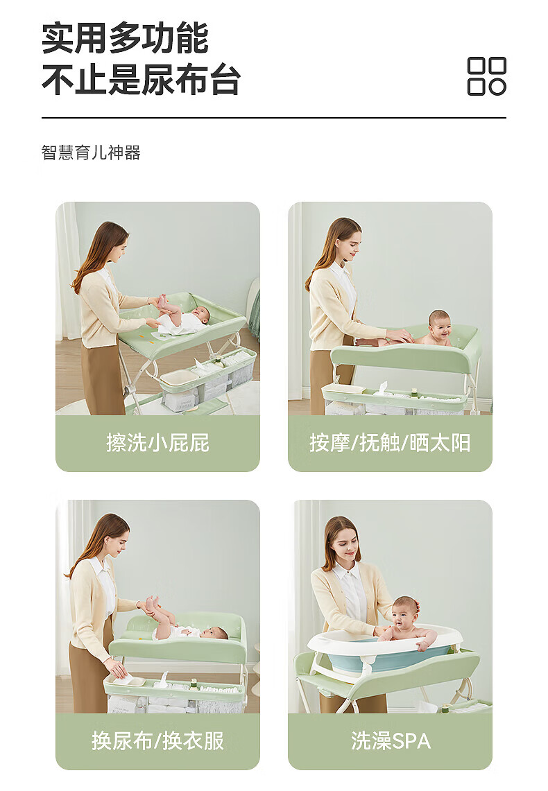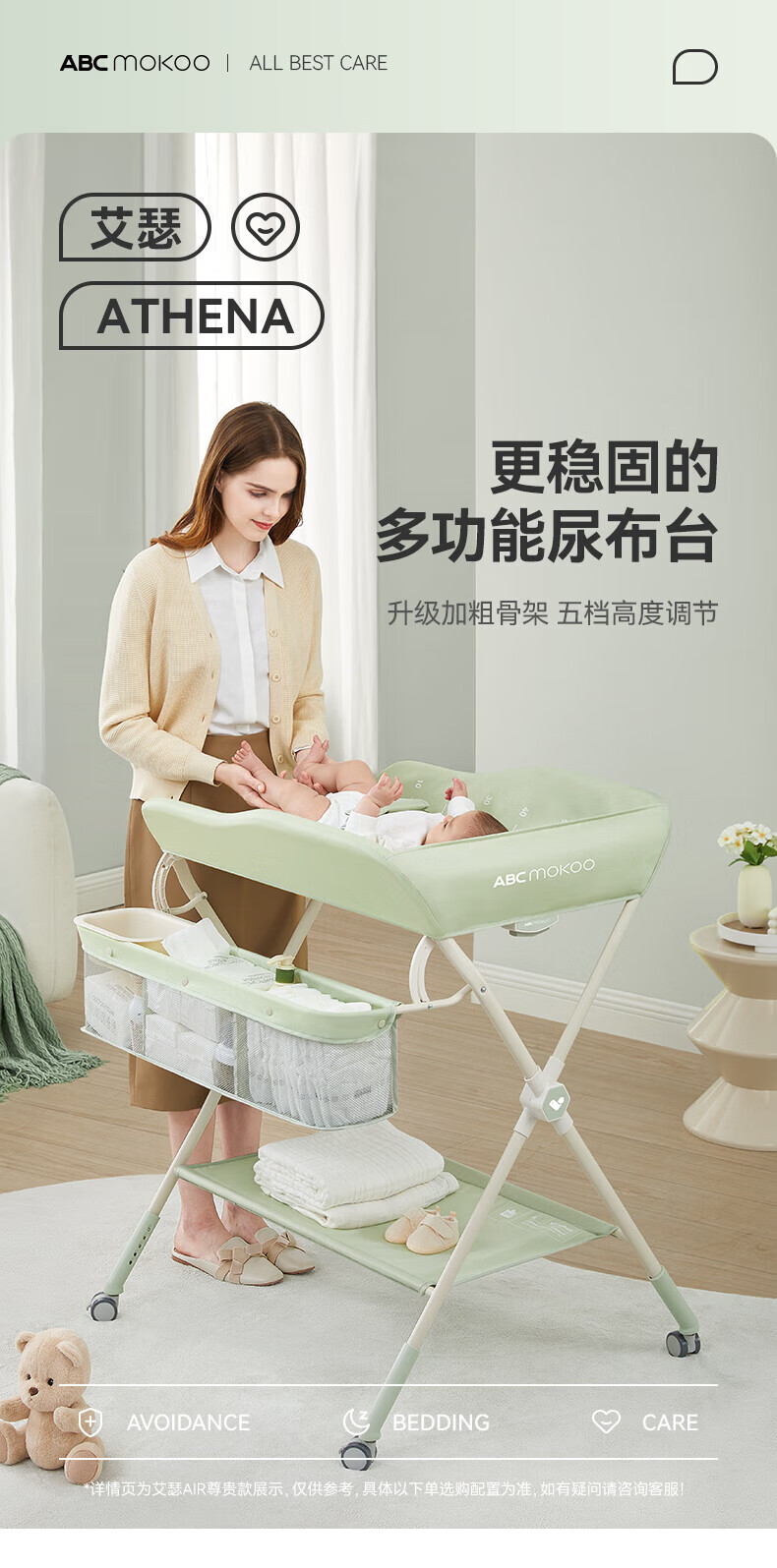MOKOO Esser Diaper Table Baby Care Table Newborn Baby Multifunctional Massage Touch Diaper Changing Table Morandi Gray Esser-AIR 5-speed Lift