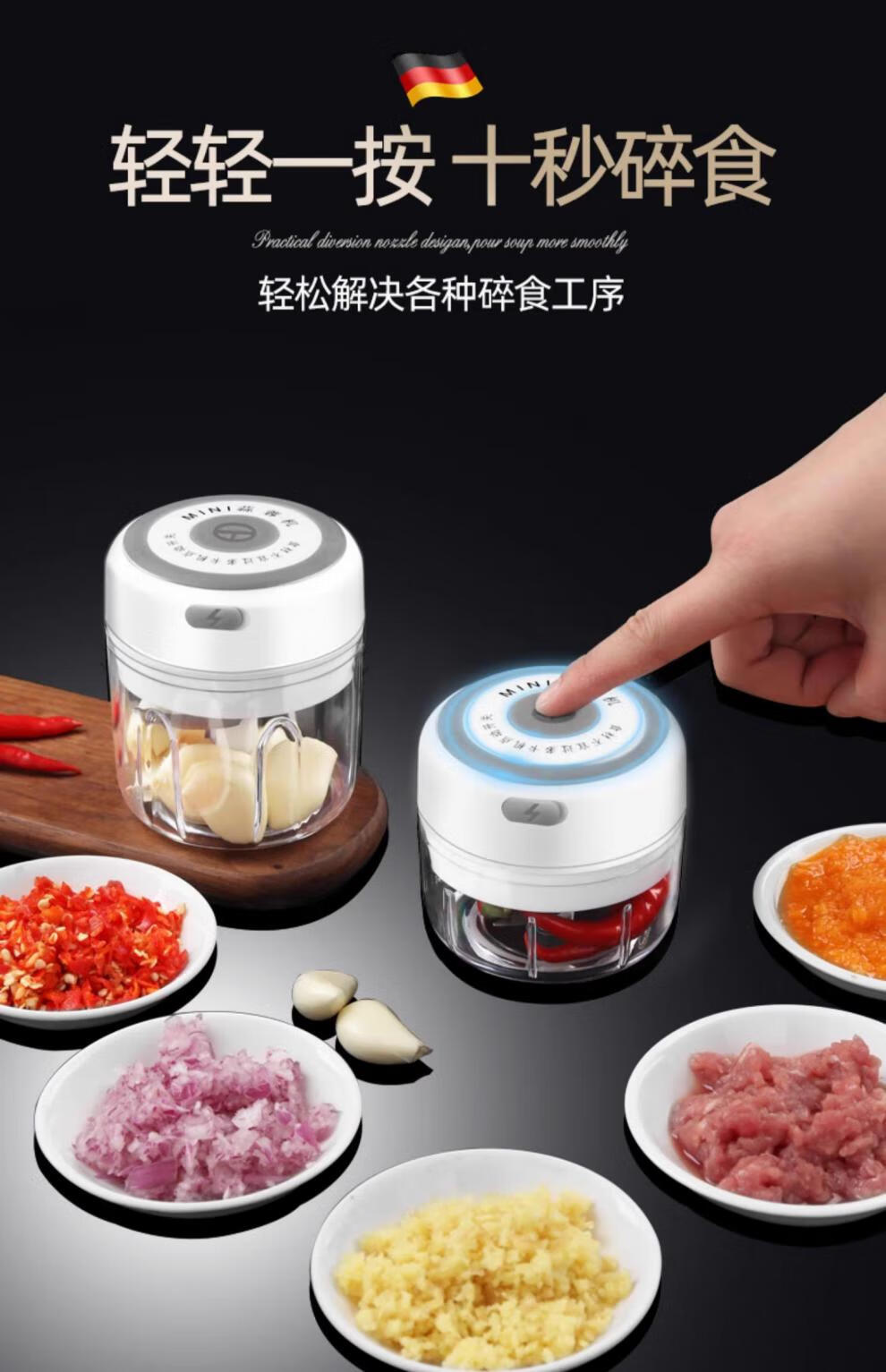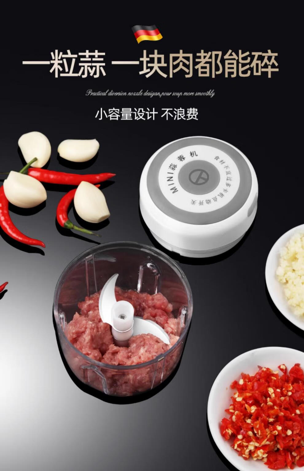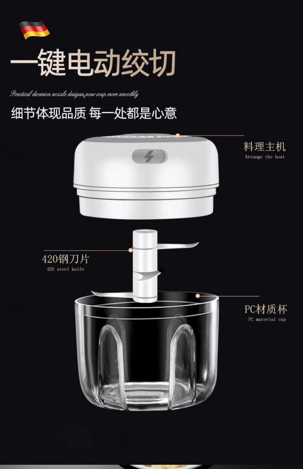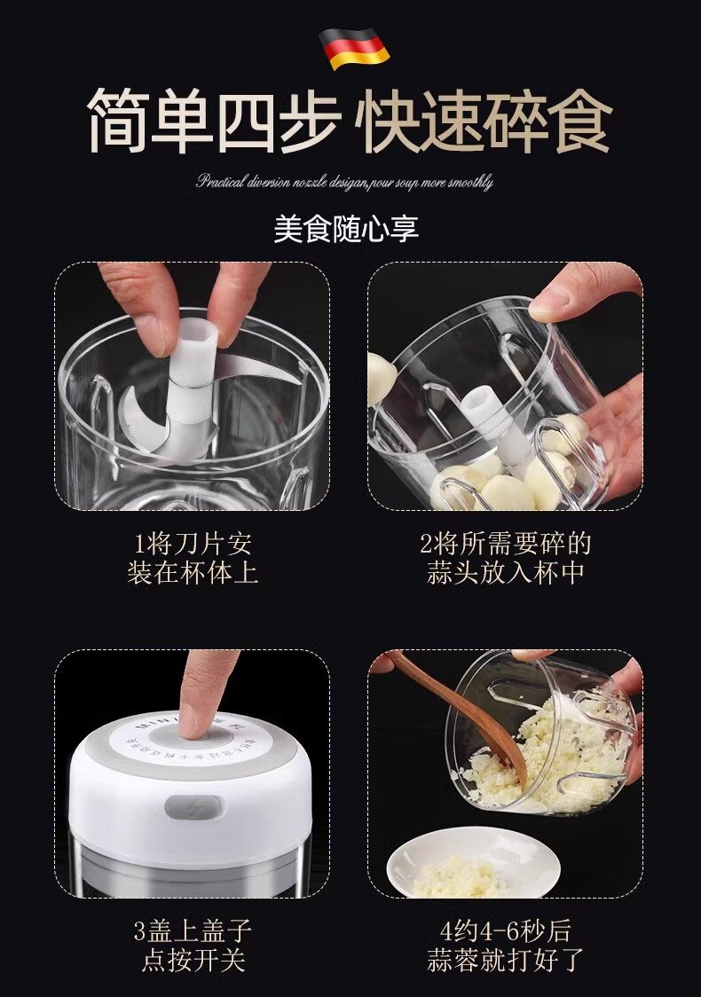 German craft garlic masher electric garlic mashed artifact household mini meat grinder multi-functional chili garlic masher wireless electric garlic masher small
