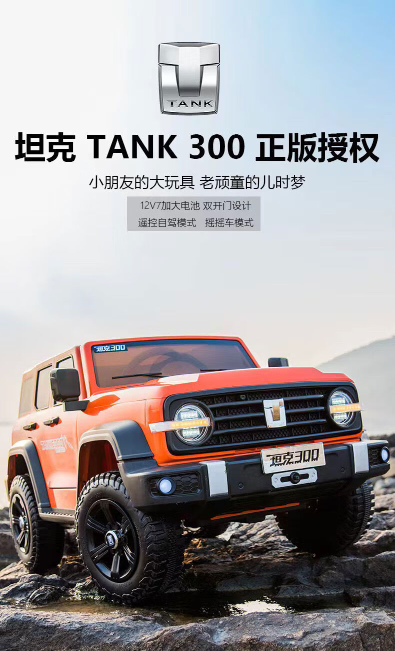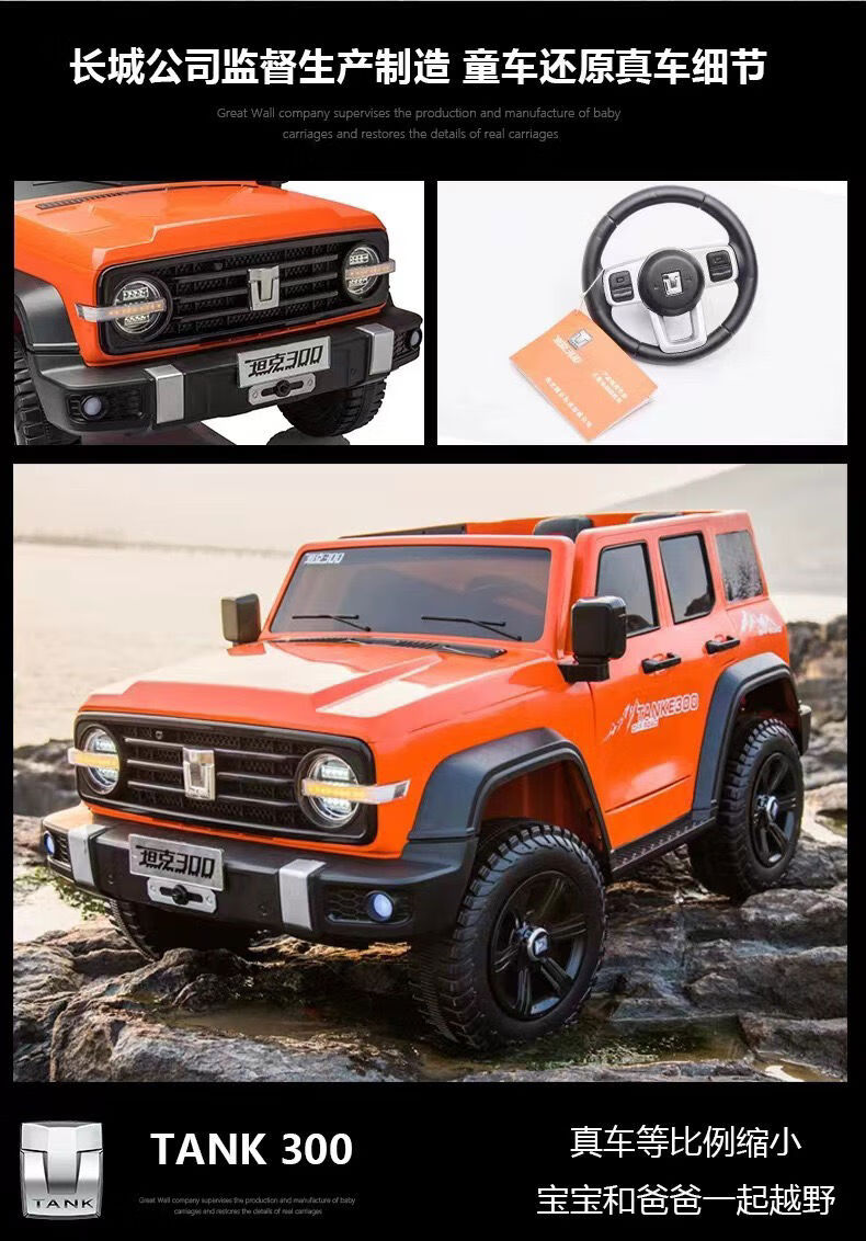 Genuine Tank 300 children's electric car four-wheel off-road vehicle that can sit on a child's remote control car baby toy car orange + four-wheel drive 12v7 + leather seat + Bluetooth remote control electric drive