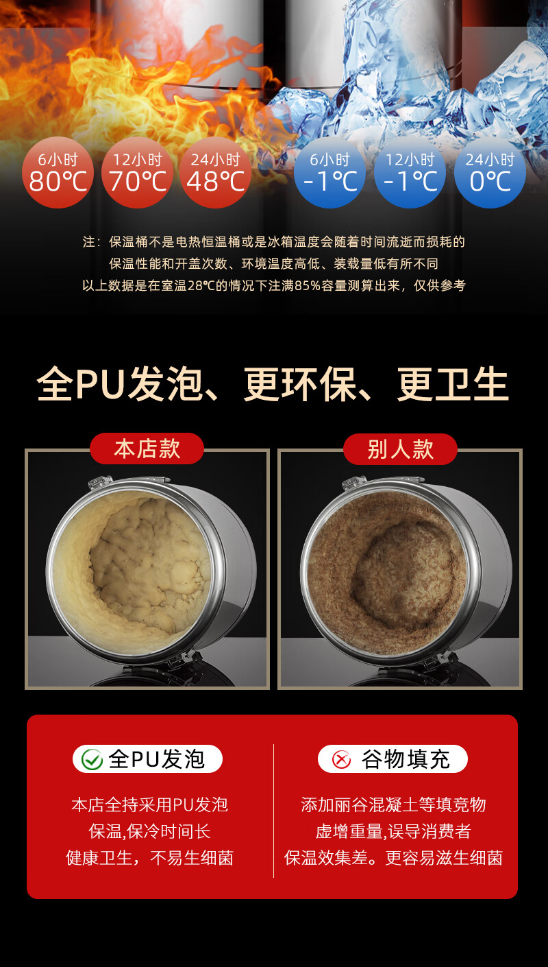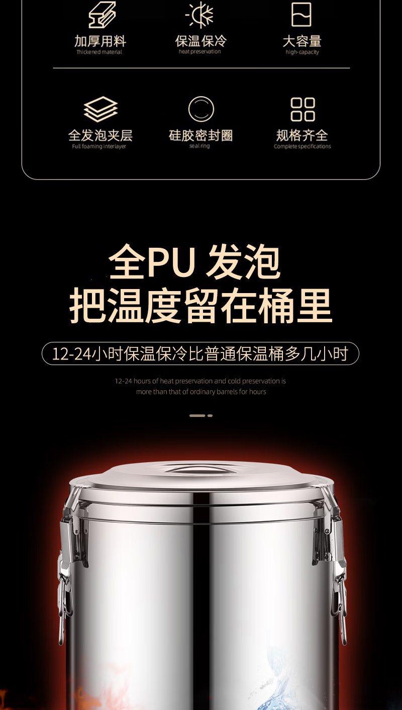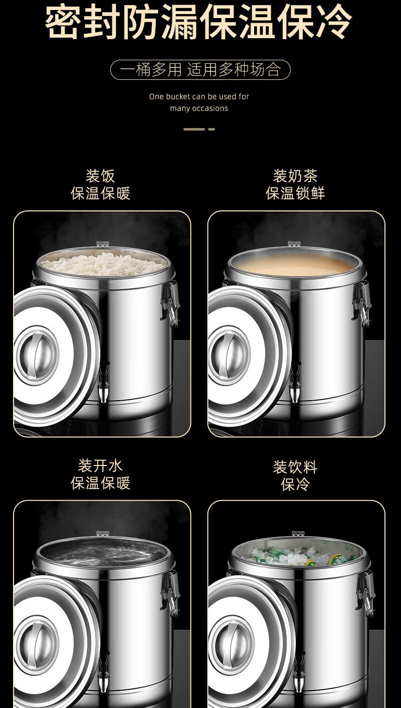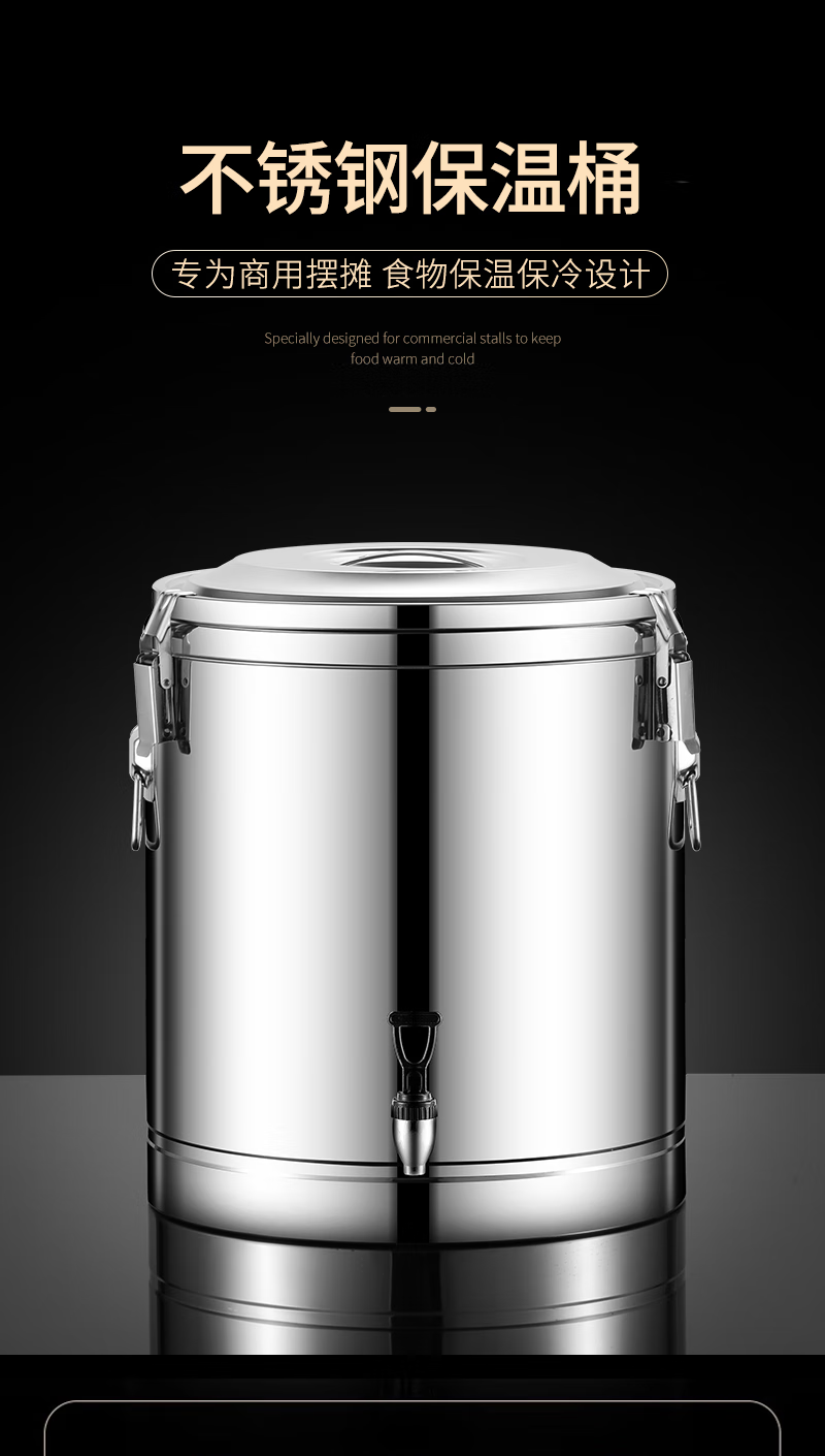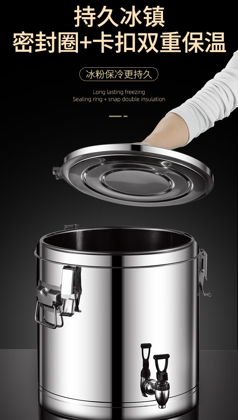 Stainless steel insulation bucket commercial large capacity rice bucket soup porridge bucket soy milk stall ice bucket insulated box ice powder bucket extra thick foam single faucet insulation bucket 20L quality model three layers of insulation - with sealing cover