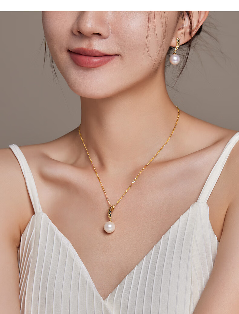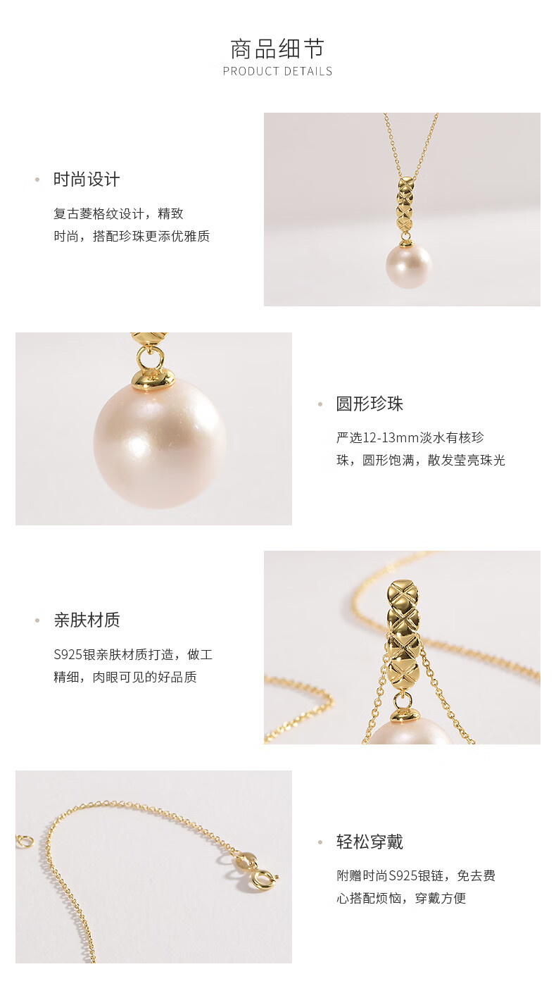 Pearl Necklace for Women Pearls Muyan Silver 925 Freshwater Nucleated Pearls 12-13mm Round Simple Commuting Style Pearls 12-13mm + Silver Chain