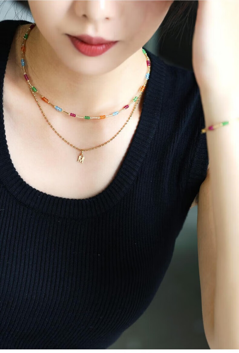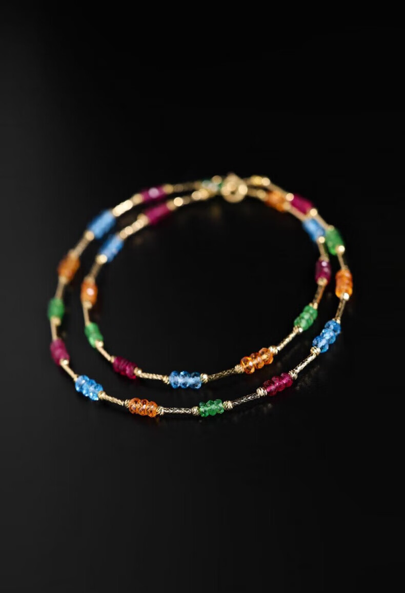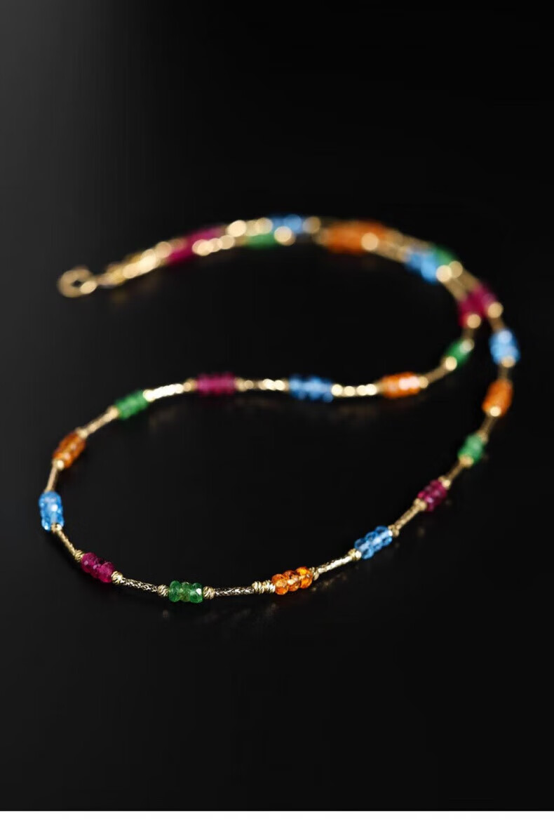 Book pocket full of stars, tourmaline, garnet, topaz, multi-treasure necklace, 18K gold clavicle chain for girlfriend, gift for wife, multi-treasure necklace 45cm