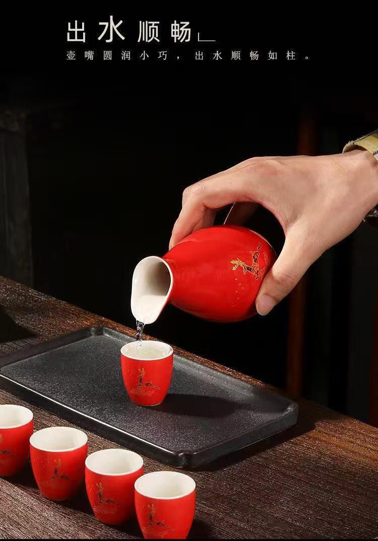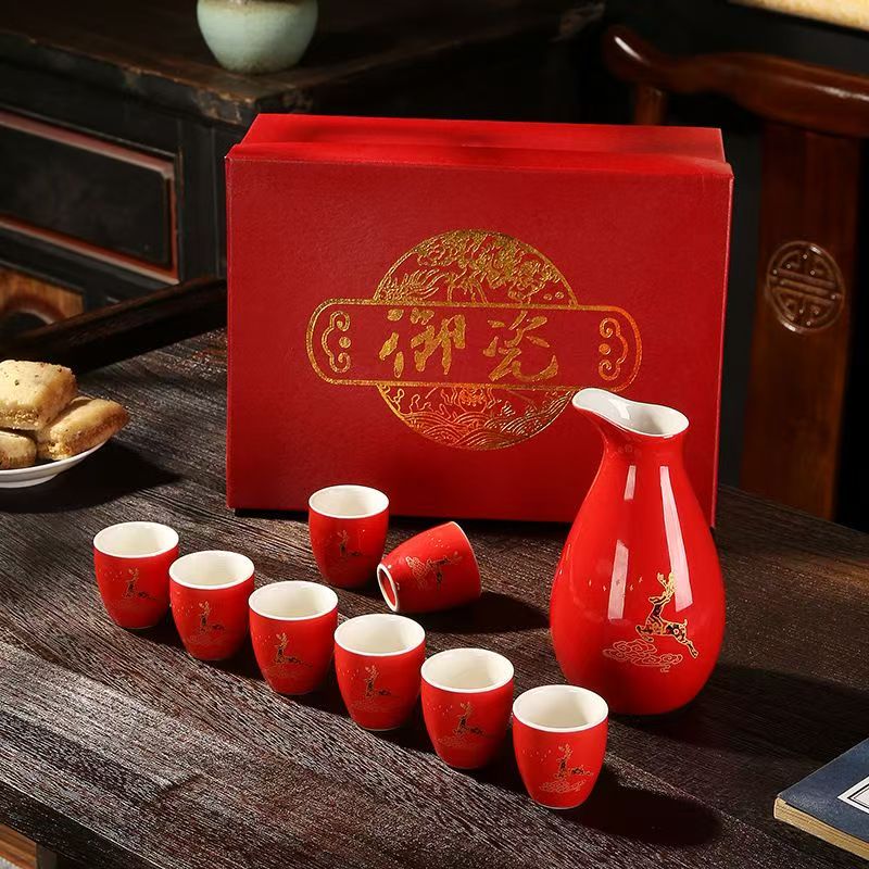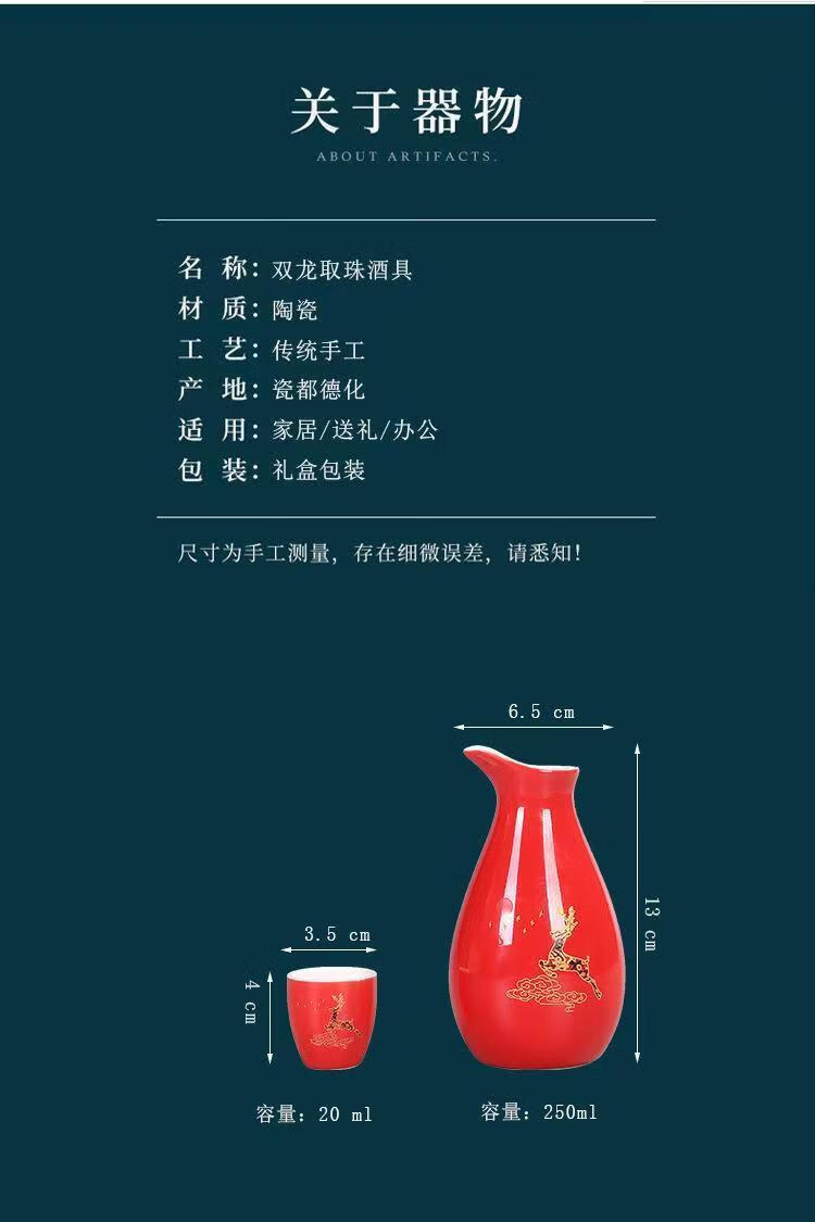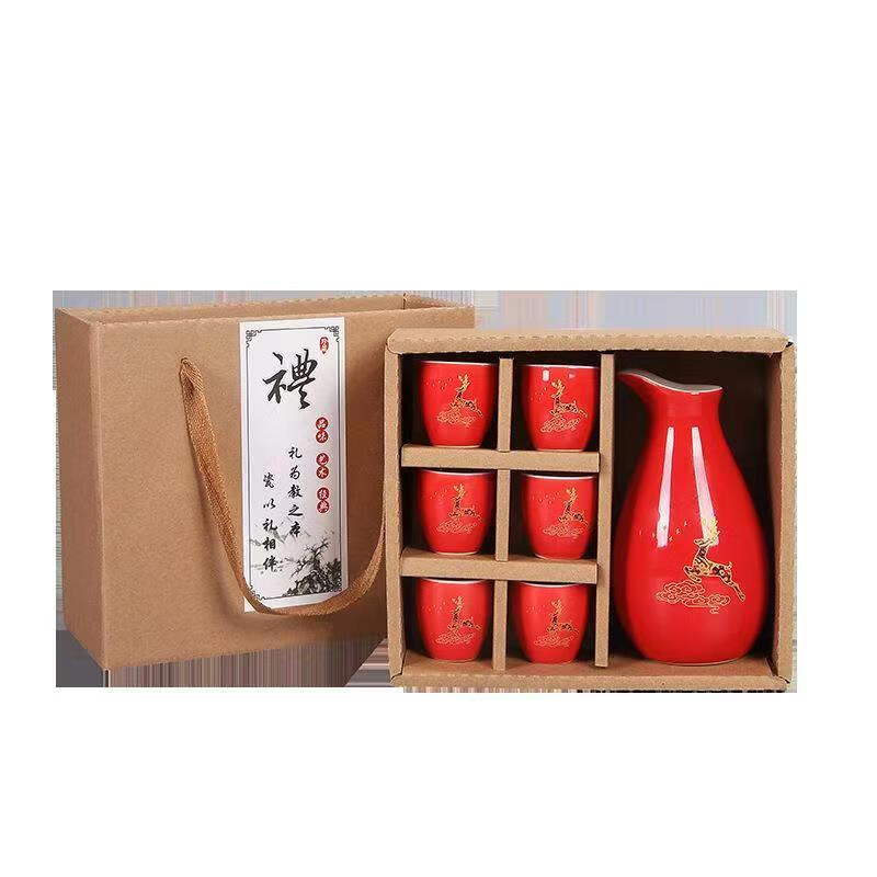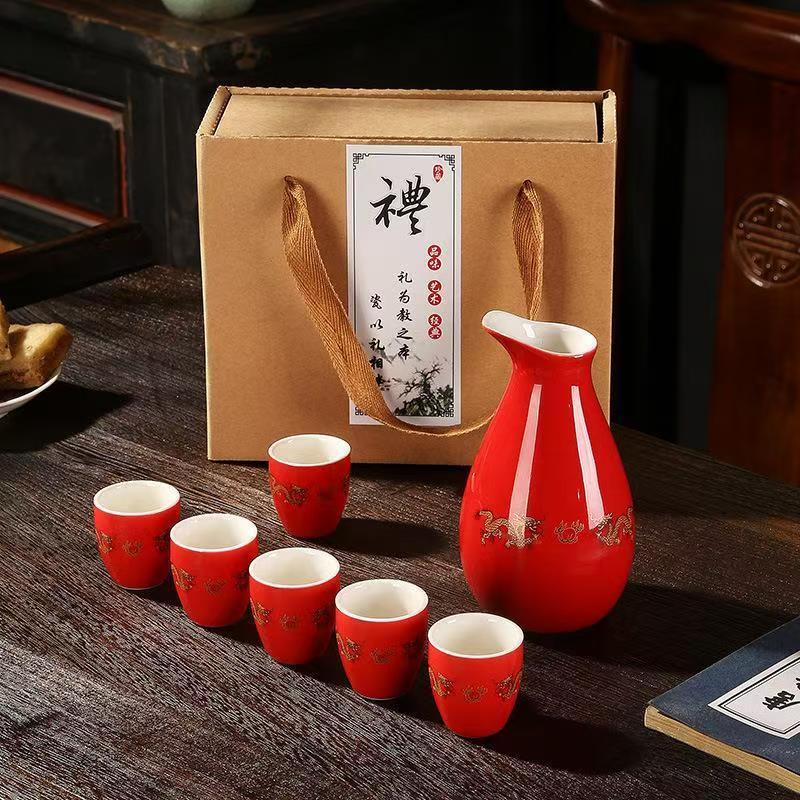 Portable ceramic flask, wine glass, wine set, household leather box, white wine cup, household wine dispenser, hot flask gift box set, Penguin Golden Dragon in bulk, 2 cups per pot