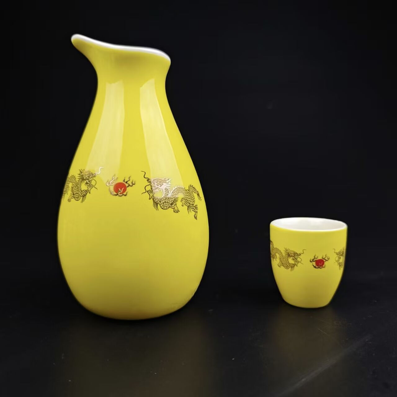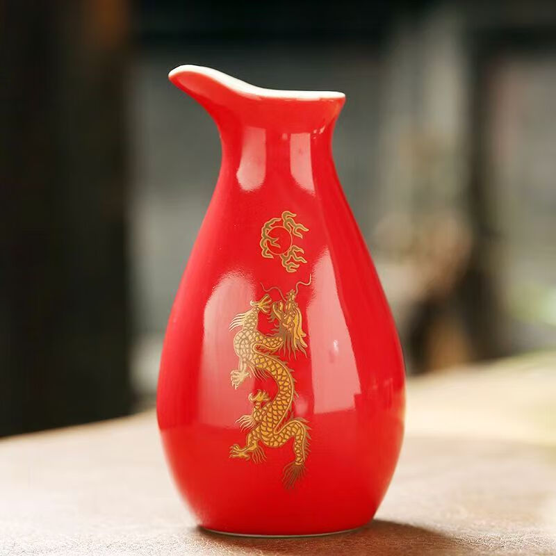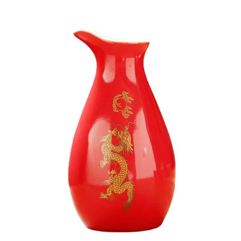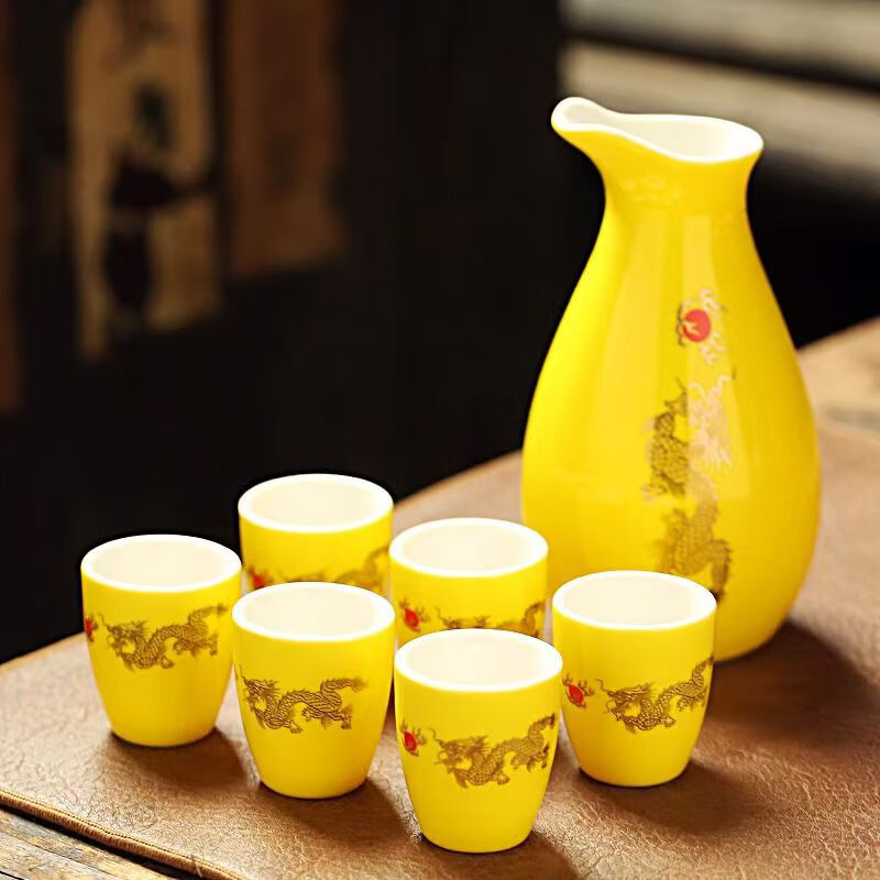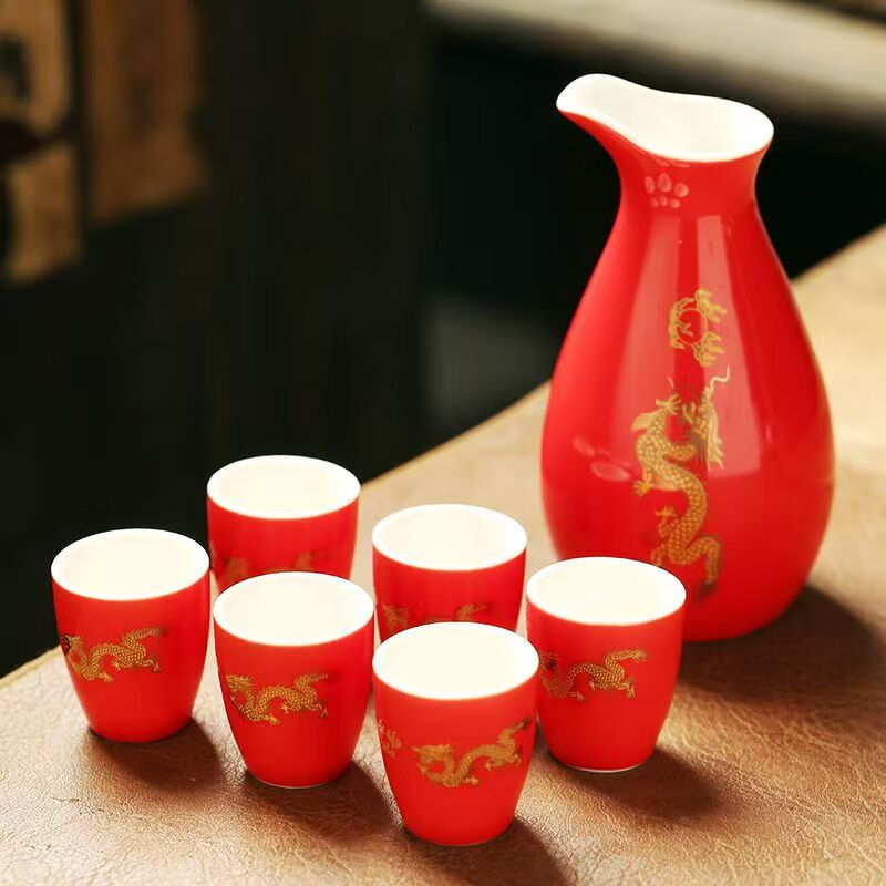 Portable ceramic flask, wine glass, wine set, household leather box, white wine cup, household wine dispenser, hot flask gift box set, Penguin Golden Dragon in bulk, 2 cups per pot