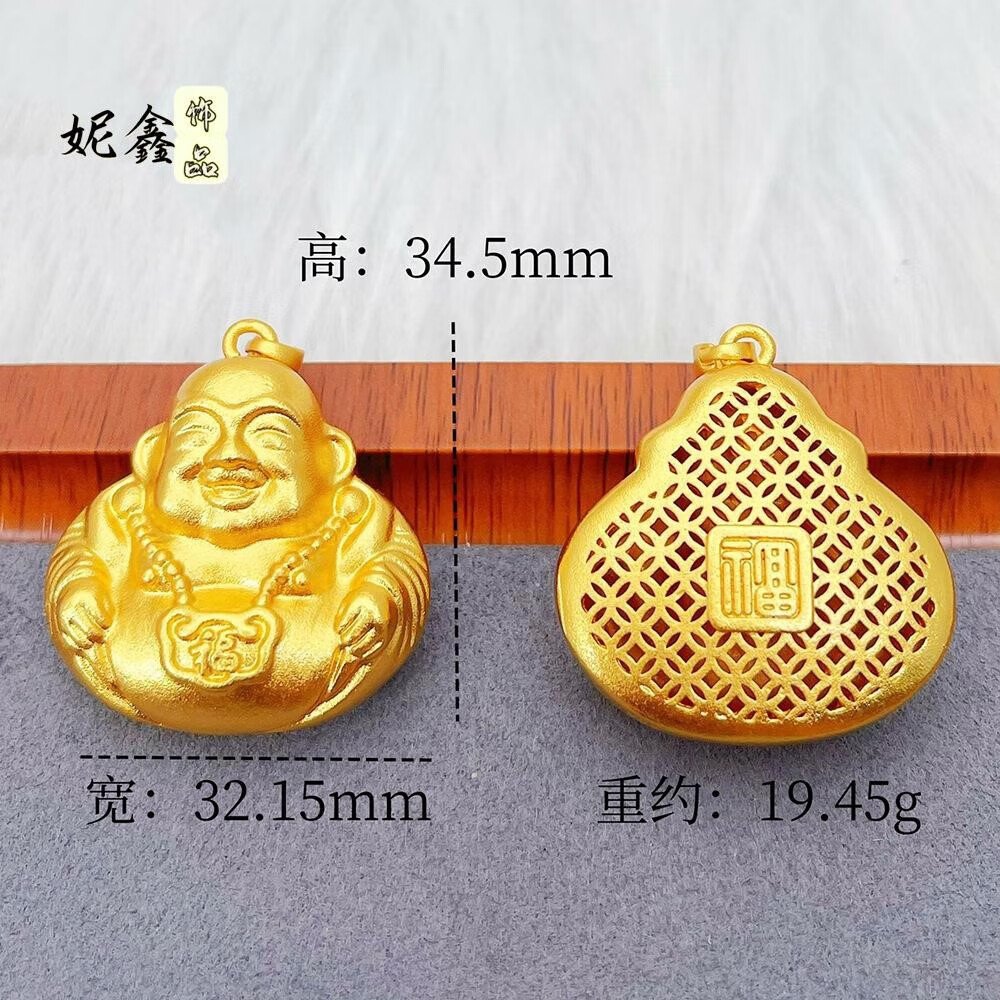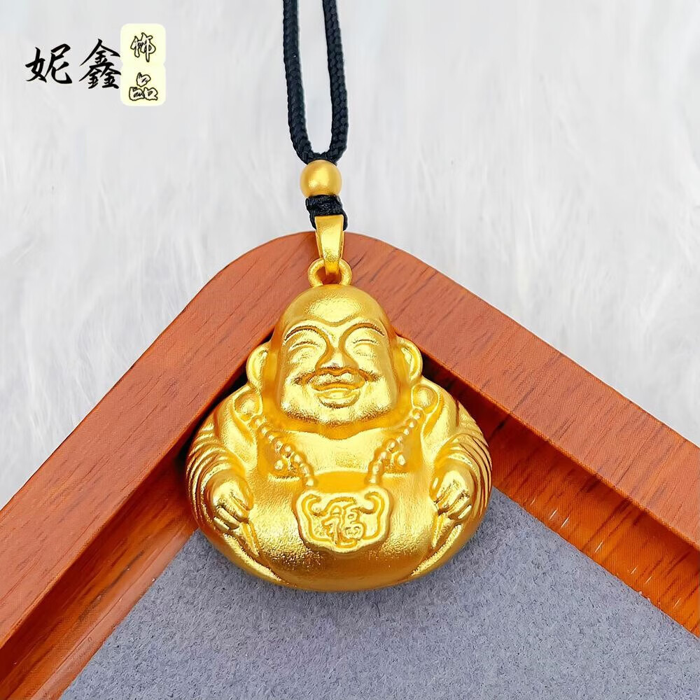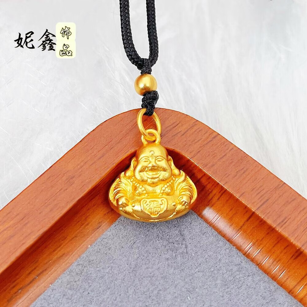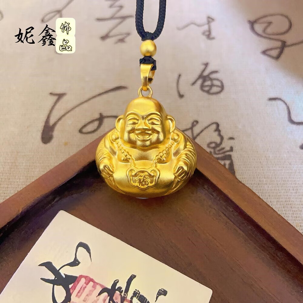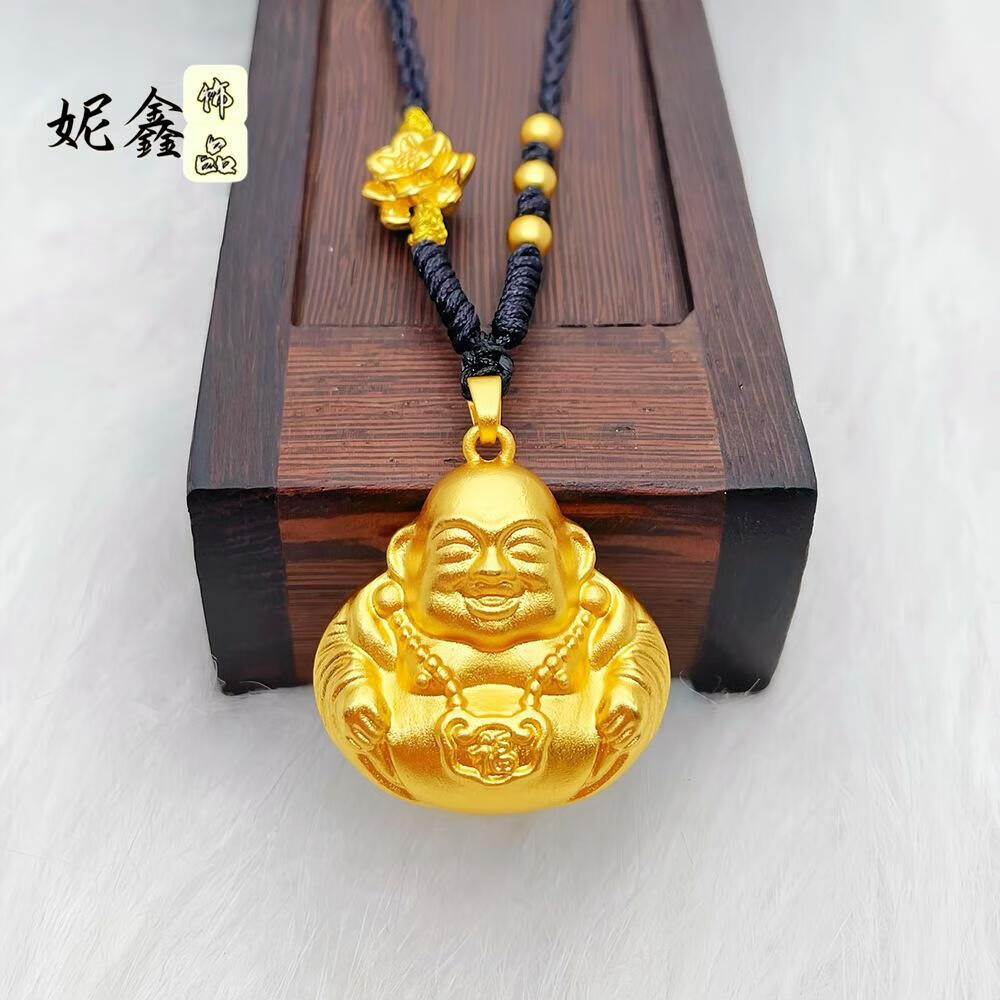 Shudou Lao Phoenix 999 Bengal Red Gold Women's Necklace Big Belly Maitreya Buddha Female Copper Imitation Gold Hollow Buddha Statue Buddha Small Maitreya Buddha Pendant Lao Fengxiang Quality