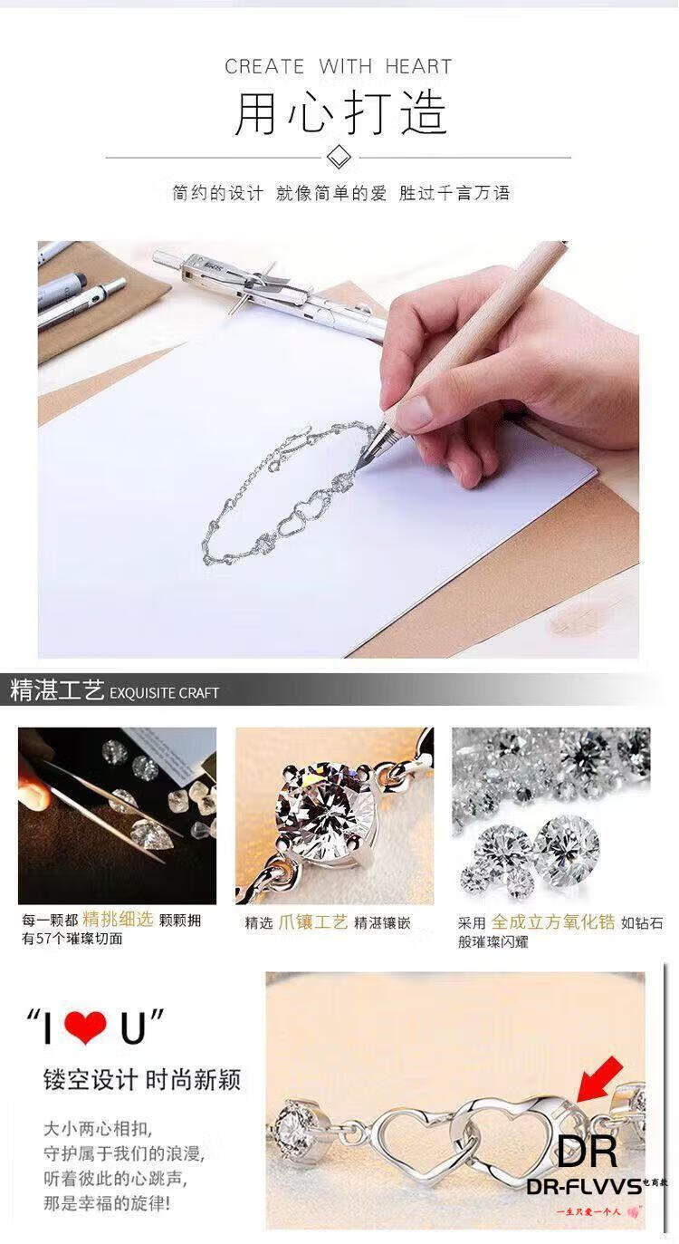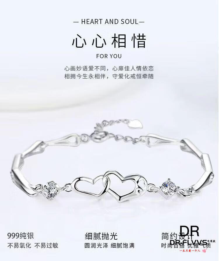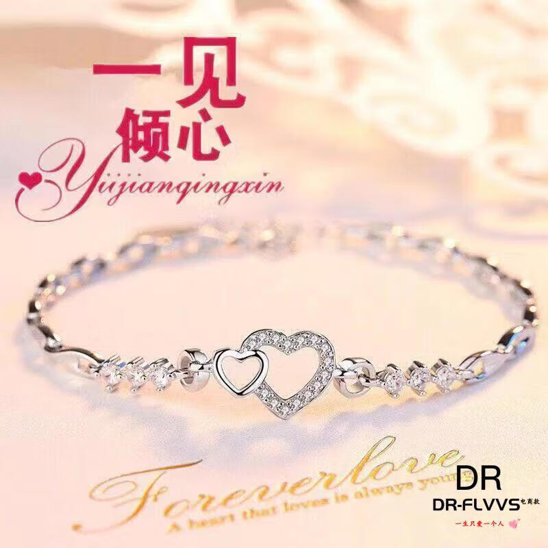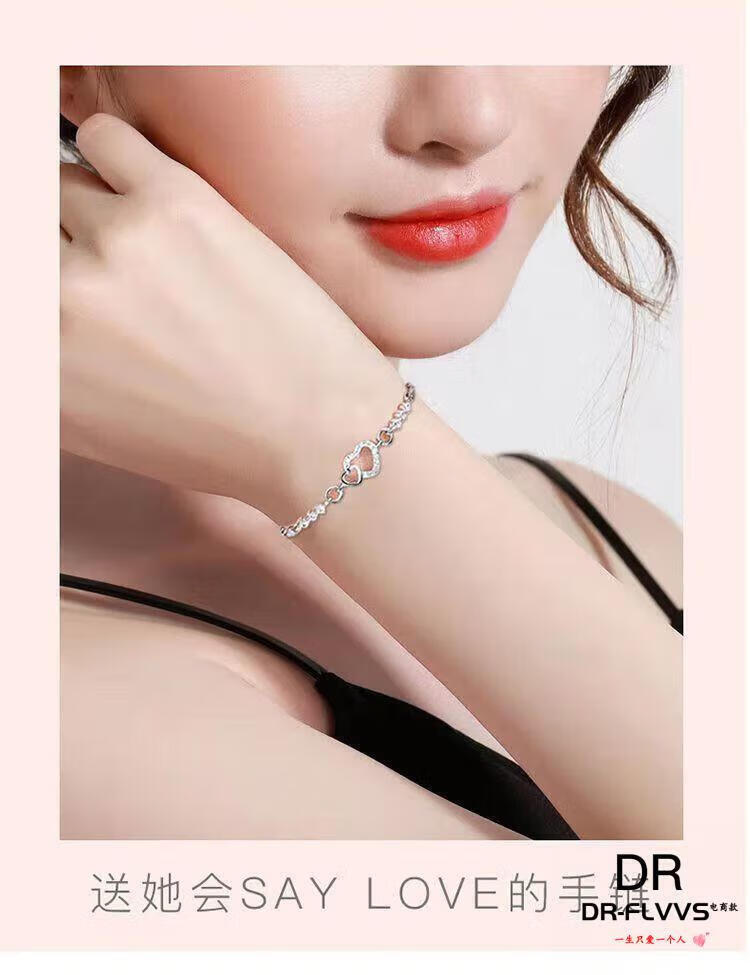 Shudou 999 quality heart-to-heart platinum bracelet plated pt950 bracelet female moissanite simple bright heart dream + certificate + gift box