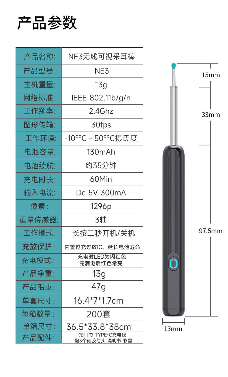 Shantou Lincun Visual Ear Pick High Definition Visible Ear Pick Luminous Ear Pick Ear Picking Tool Ear Cleaning Artifact New Waterproof High Definition No Delay White + 8-piece Set