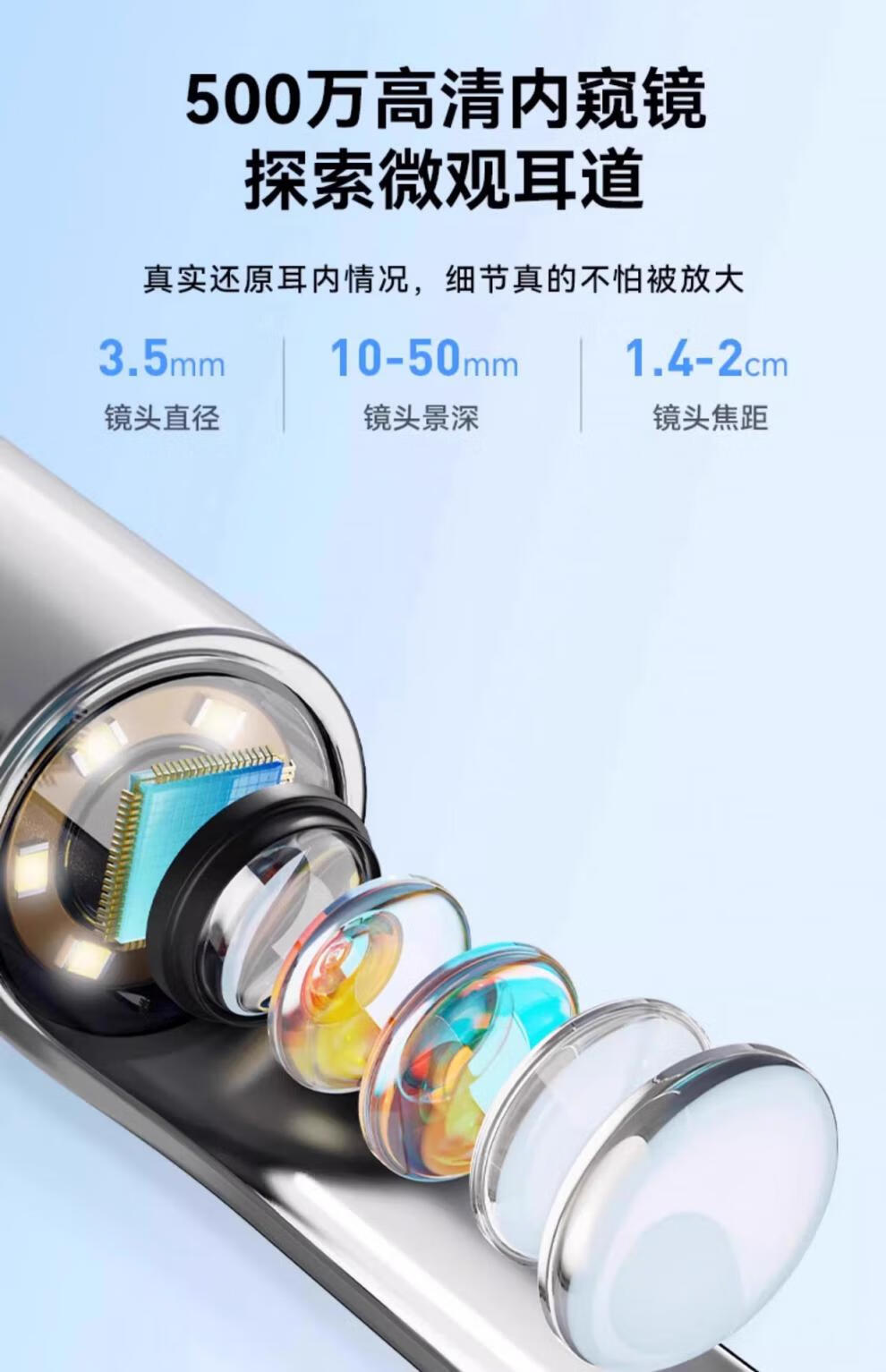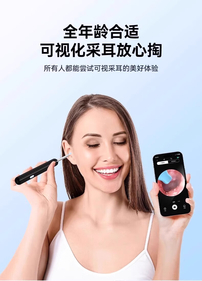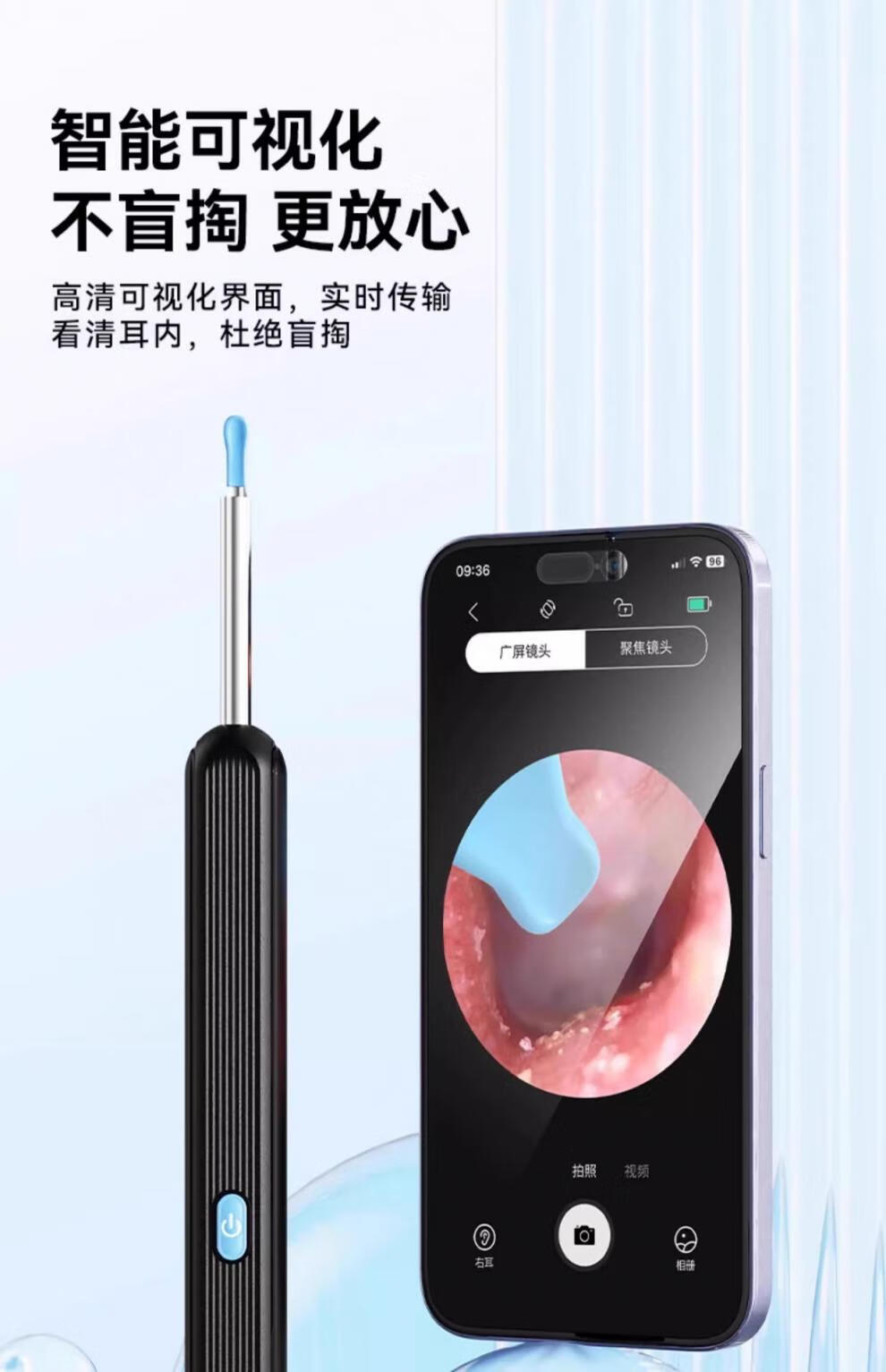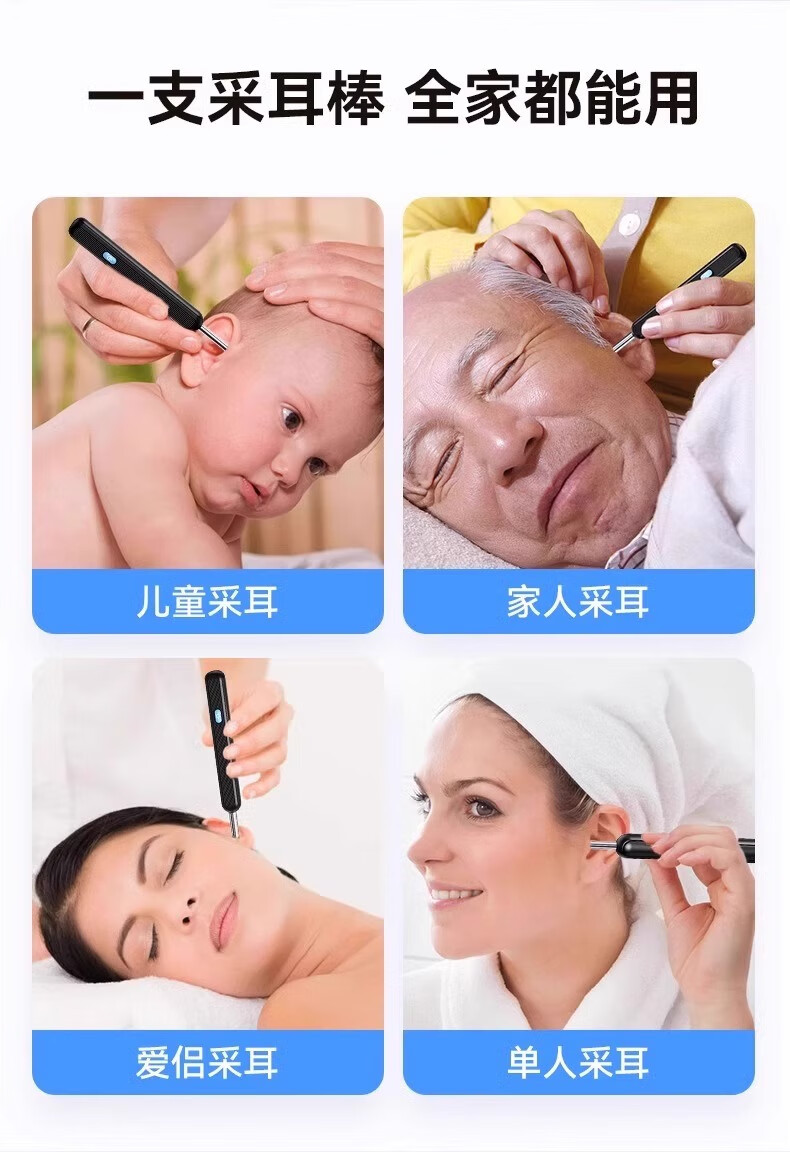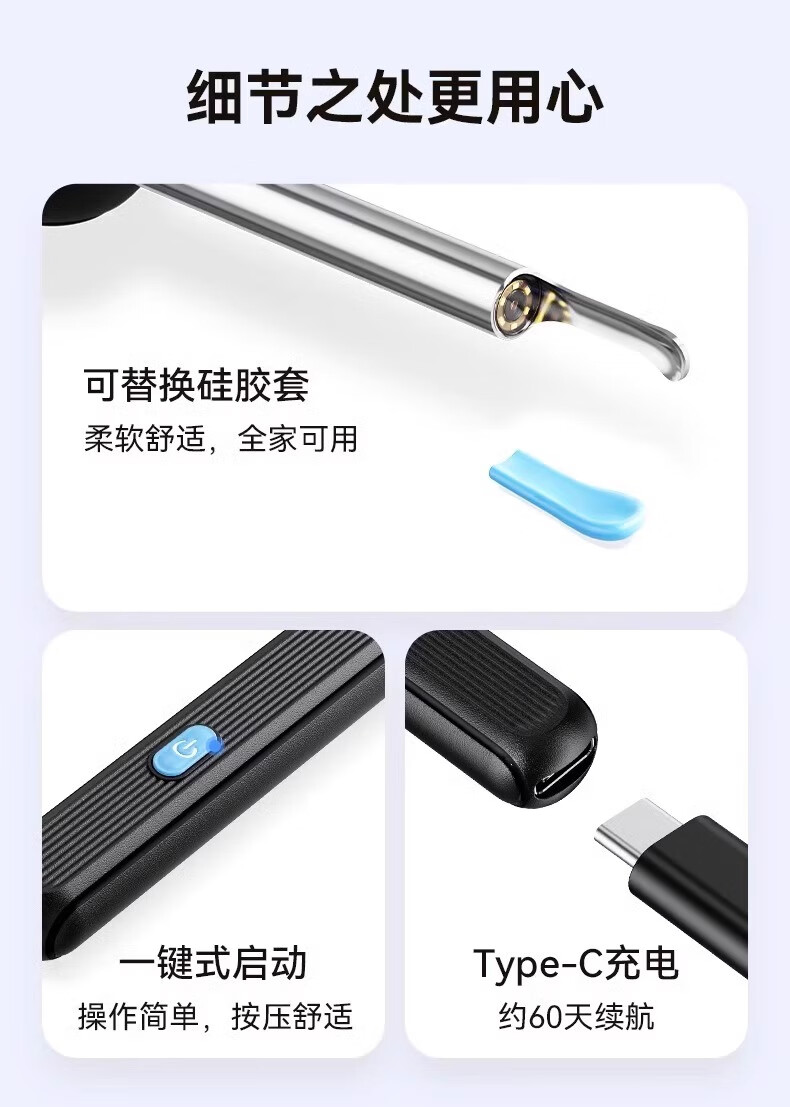 Shantou Lincun 2025 New Visible Ear Pickup Scoop Cleaning Endoscope Intelligent Luminous Ear Picking Stick Ear Picking Tool Huawei Black 300 Million Clear Pixels Fast Charging Compatible with Apple Android