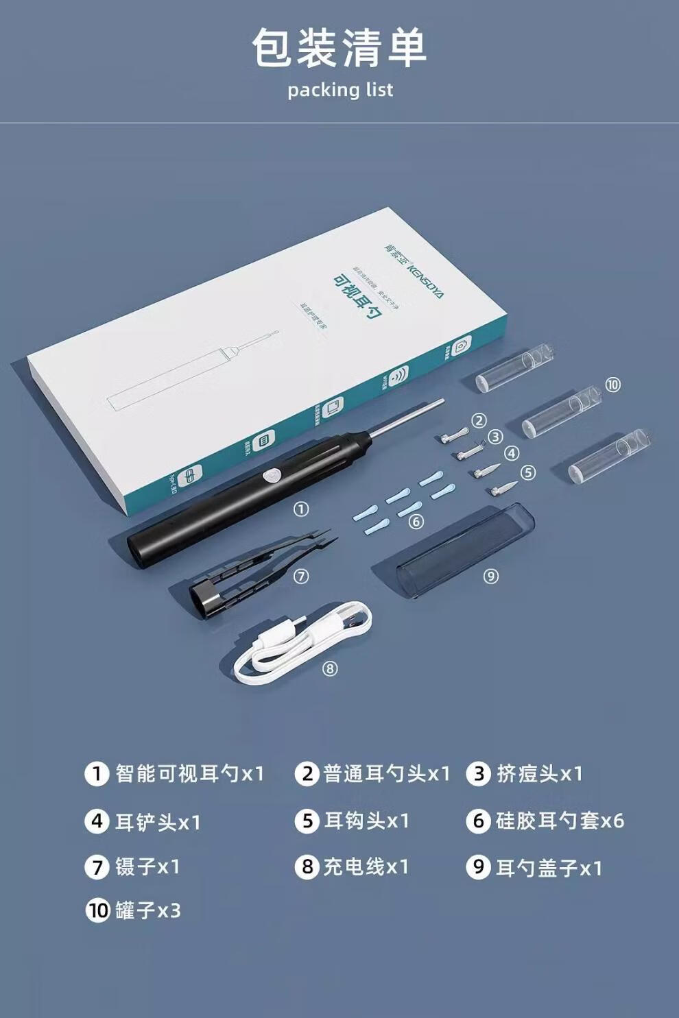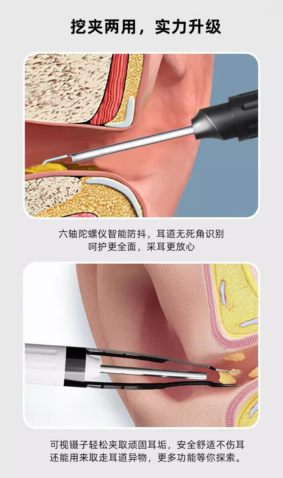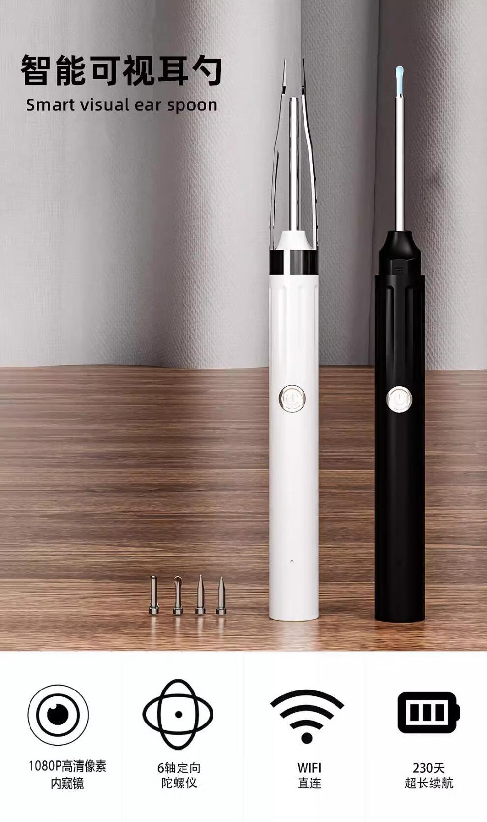 Shantou Lincun Ear Picking Spoon V12Pro HD Visual Ear Picking Spoon with Clip Tweezers Home Ear Picking Artifact for Ear Picking Classic Black V12 Pro comes with 6 silicone earmuffs/no jams