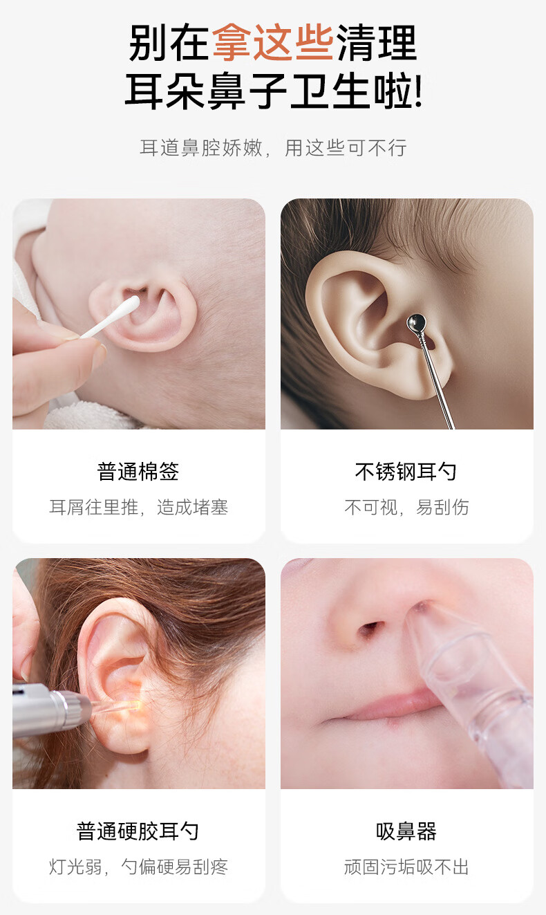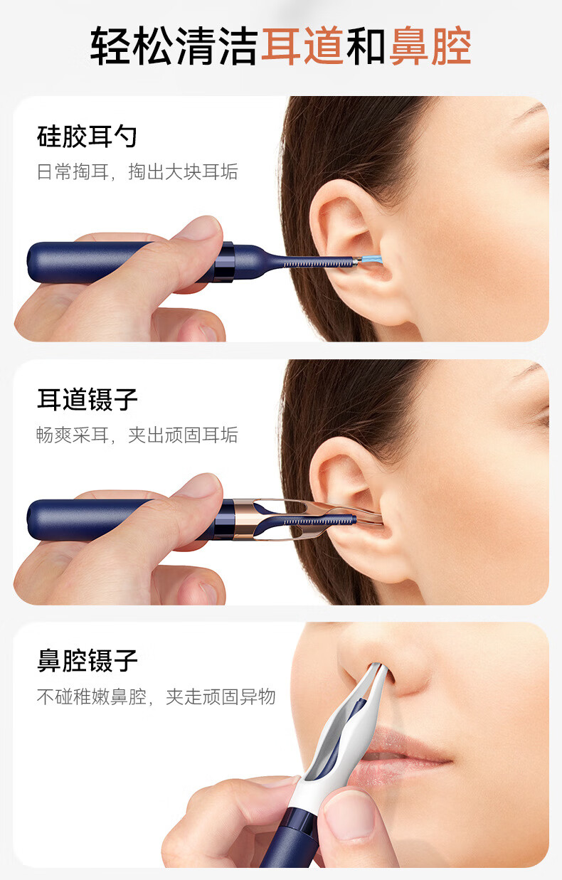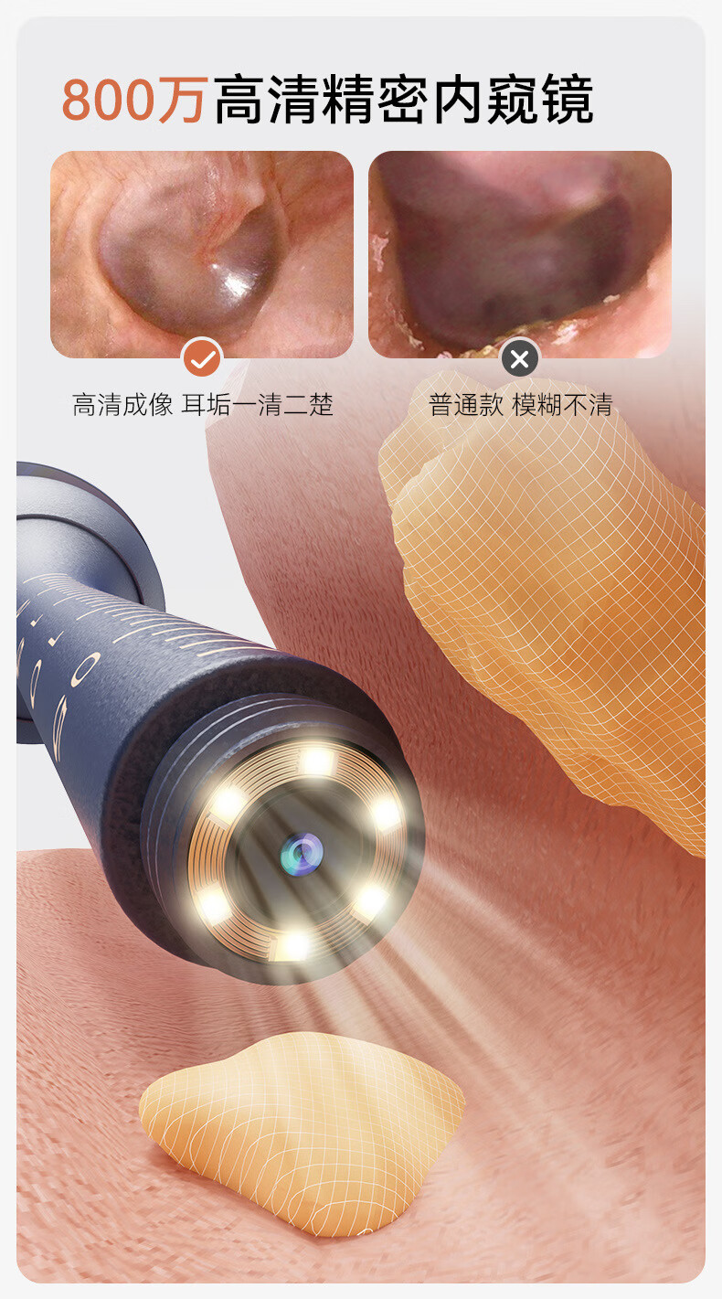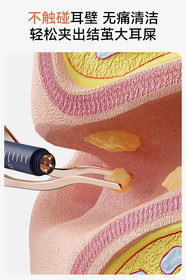 Shantou Lincun visual ear scoop high-definition ear scoop with tweezers, ear scoop tool, ear endoscopy tool, earwax cleaning tool, off-white, 17 accessories + storage box