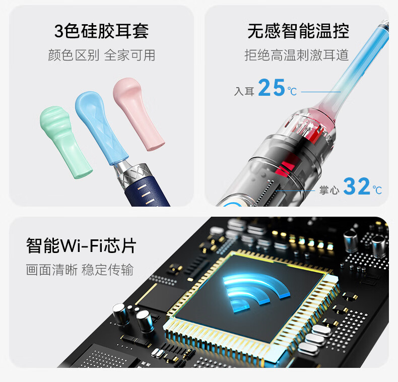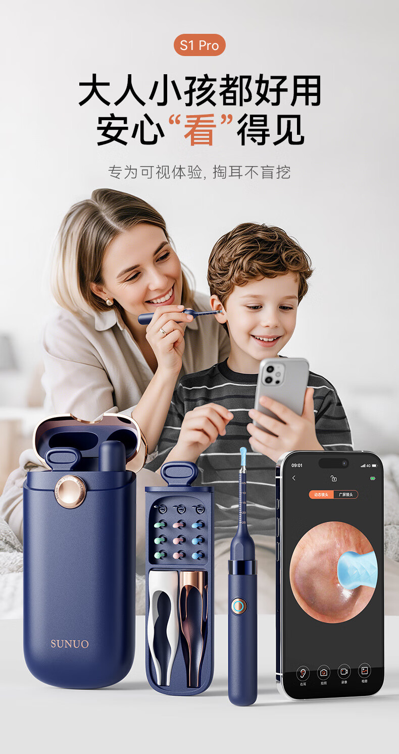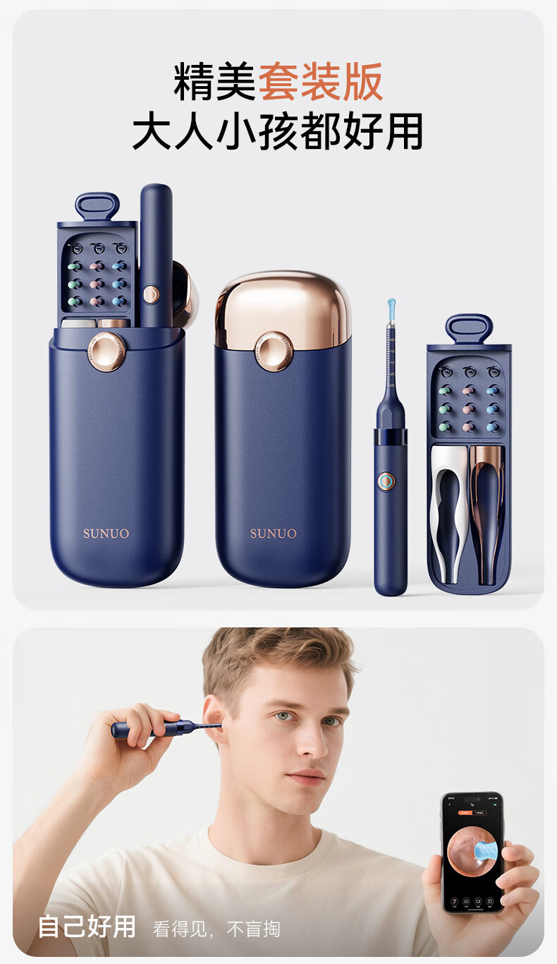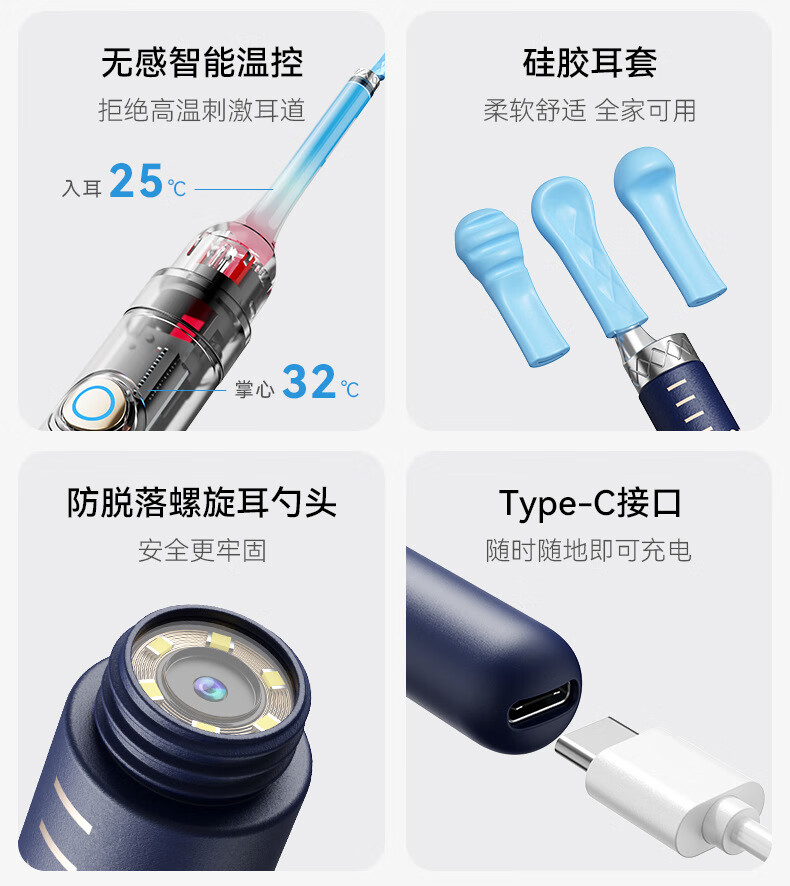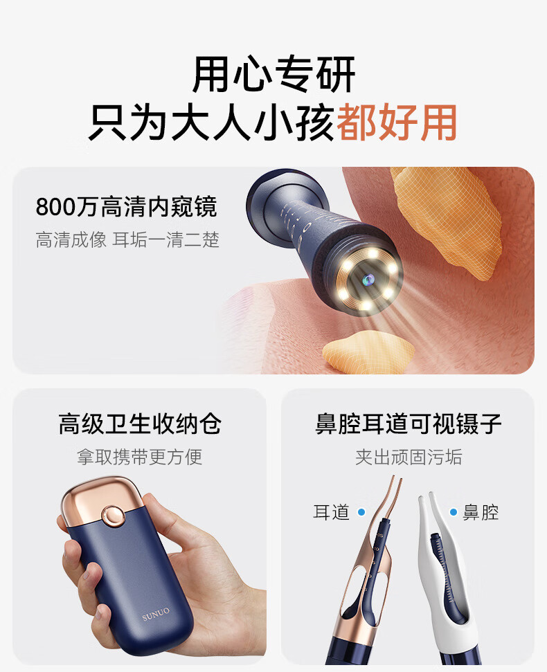 Shantou Lincun visual ear scoop high-definition ear scoop with tweezers, ear scoop tool, ear endoscopy tool, earwax cleaning tool, off-white, 17 accessories + storage box