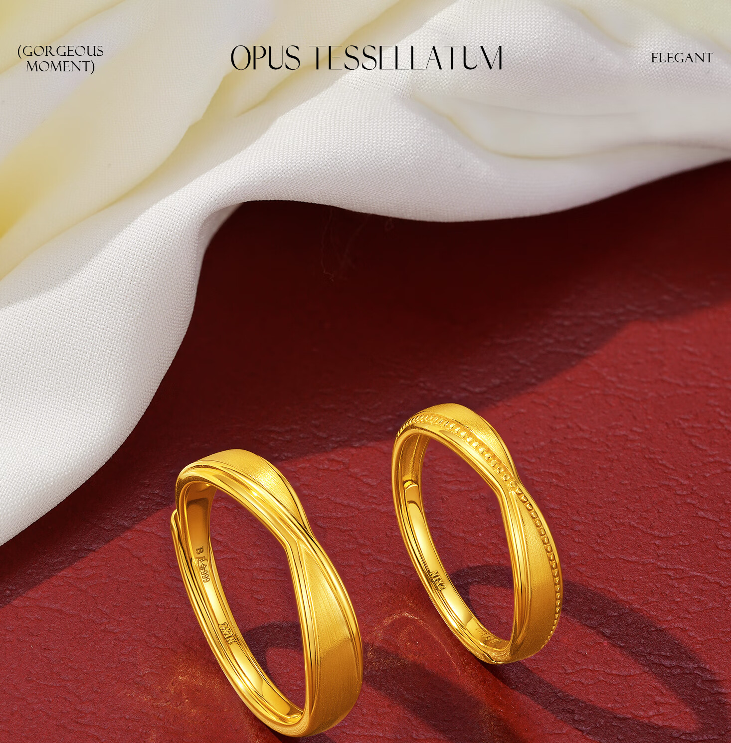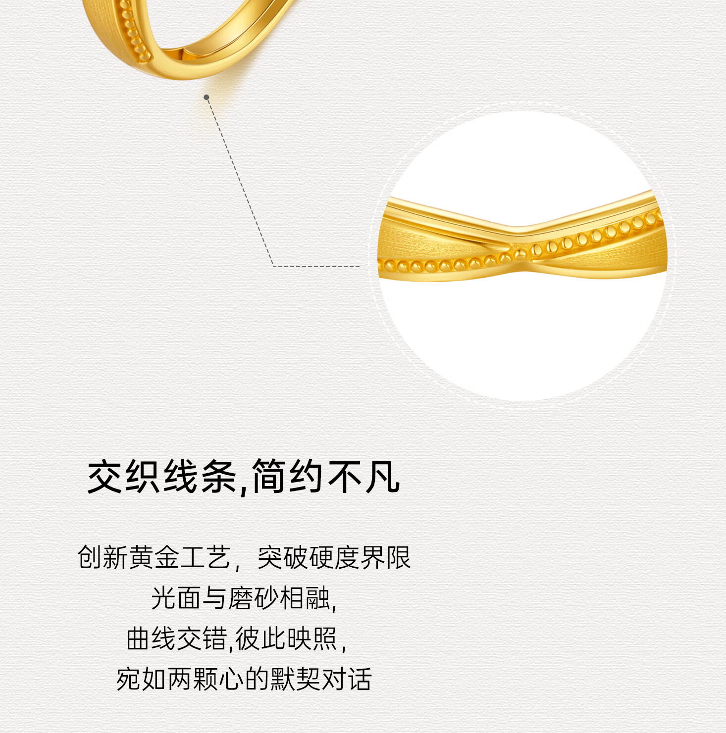 Zhongxin Jewelry 5G technology intertwined surround couple ring solid gold 999 brushed gold ring wedding gift men's ring 3.81g