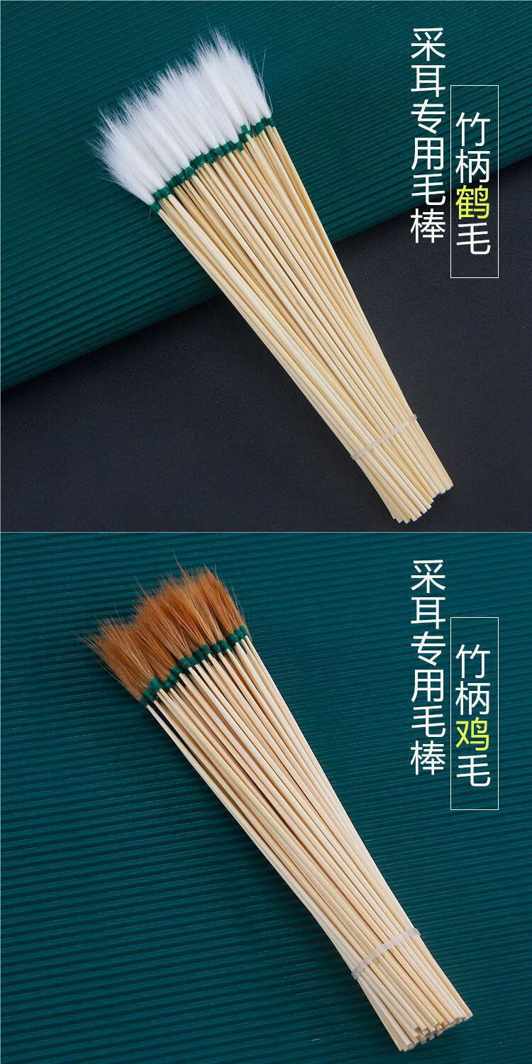 Shantou Lincun ear picking tools silver needle goose feather stick chicken feather stick horsetail hair stick ear picking set ear picking spoon silver needle handle crane feather stick 100 pieces