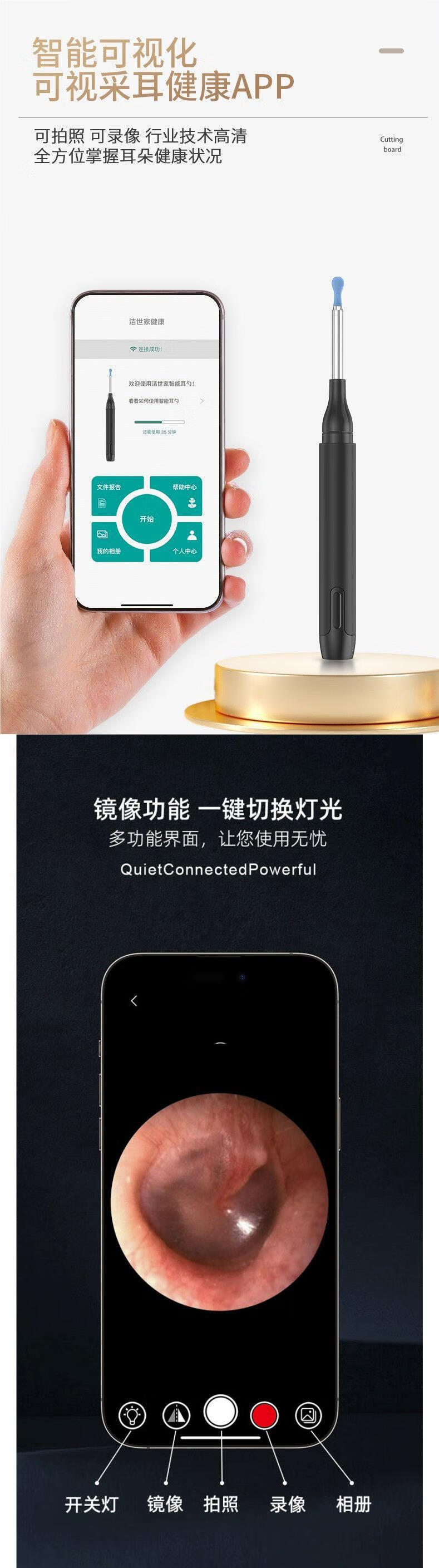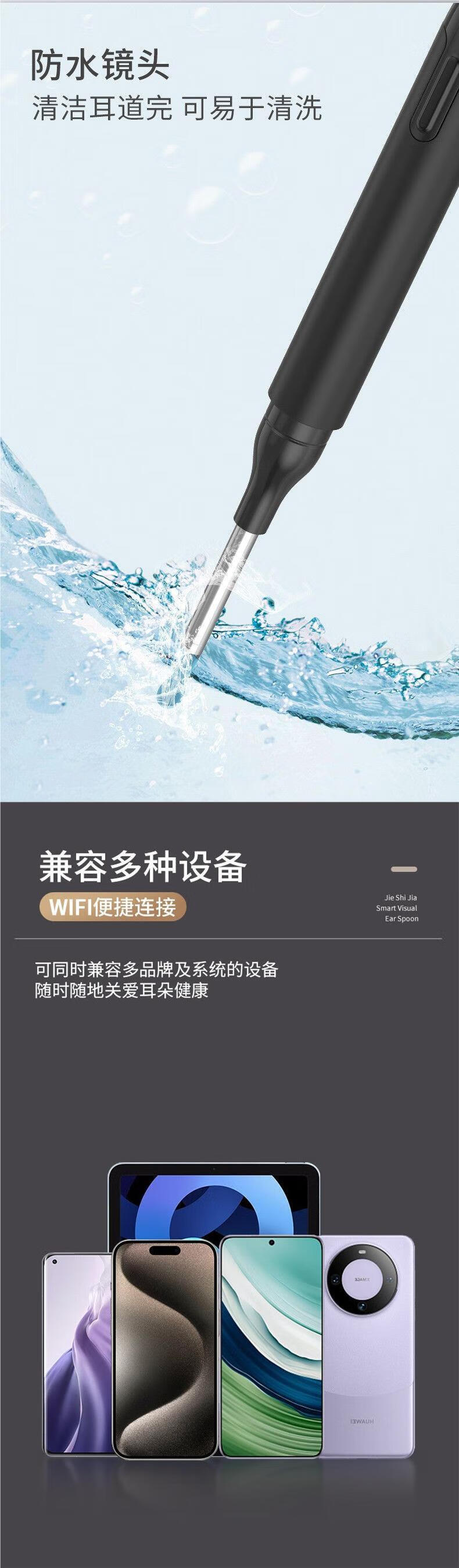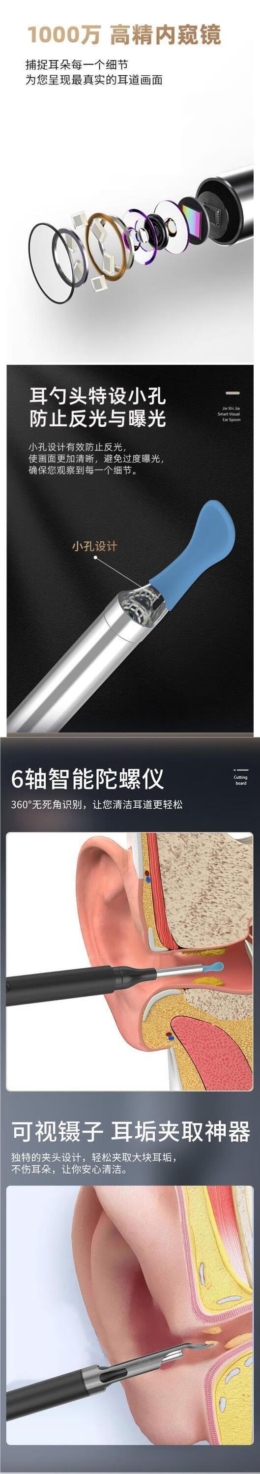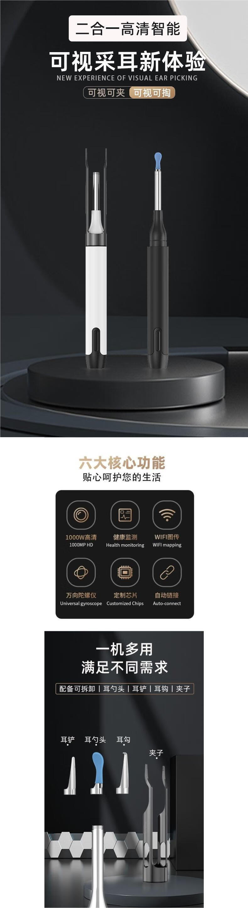Shantou Lincun visible ear scoop with tweezers high-definition ear-picking artifact luminous buckle earwax children's ear cleaner clip FEI Feijie Shijia 10 million metal + waterproof - white style