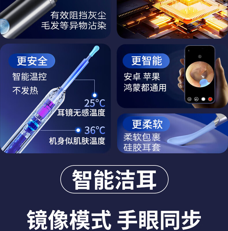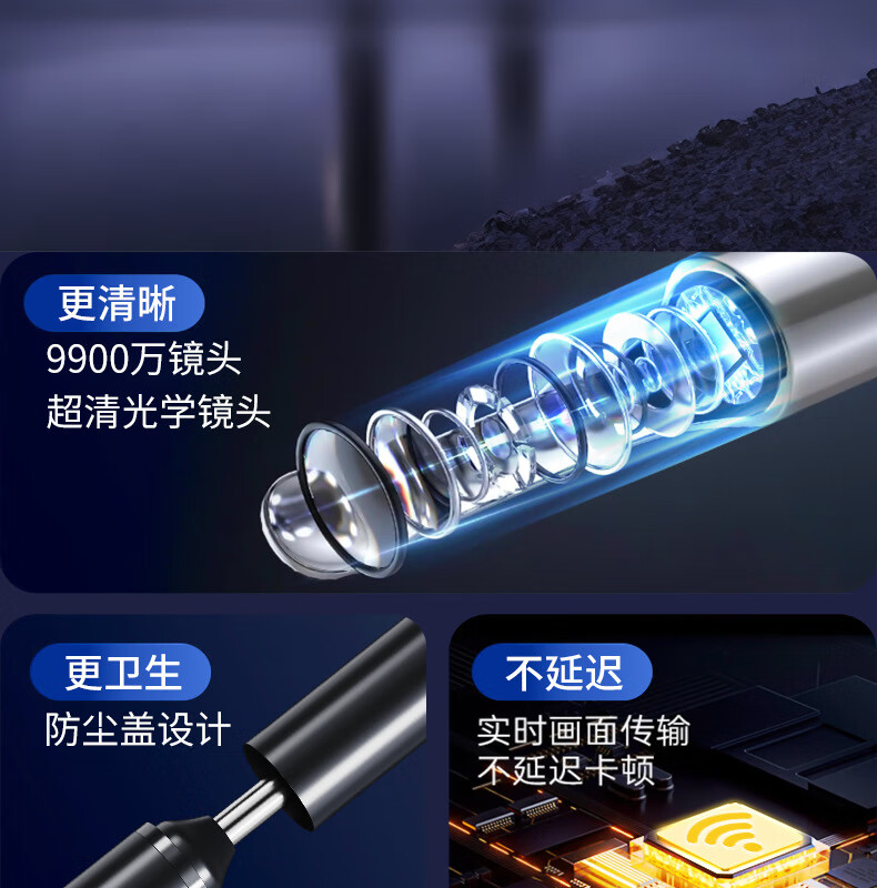 Shantou Lincun Douyin wholesale children's smart visual ear scoop clean and comfortable ear picking artifact high-definition home luminous endoscope visual ear scoop-Y36-9 piece set Galaxy Black