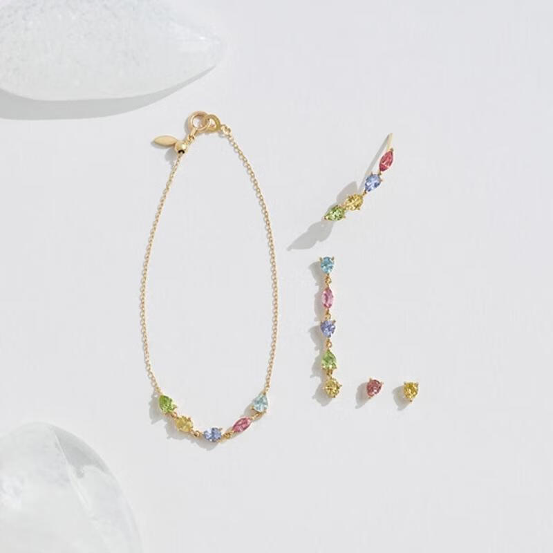 AHKAH women's earrings are exquisite, elegant, gorgeous and fashionable 18K gold pink tourmaline tanzanite date commuting picture color