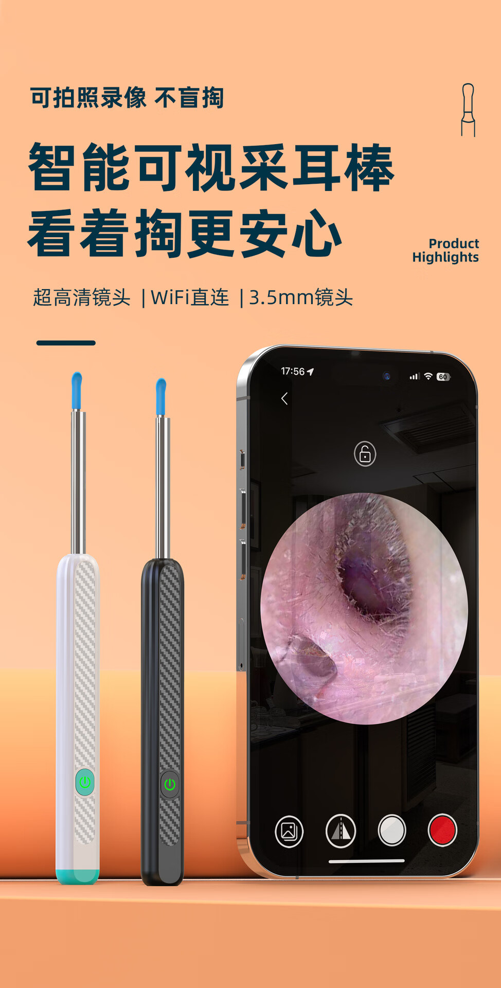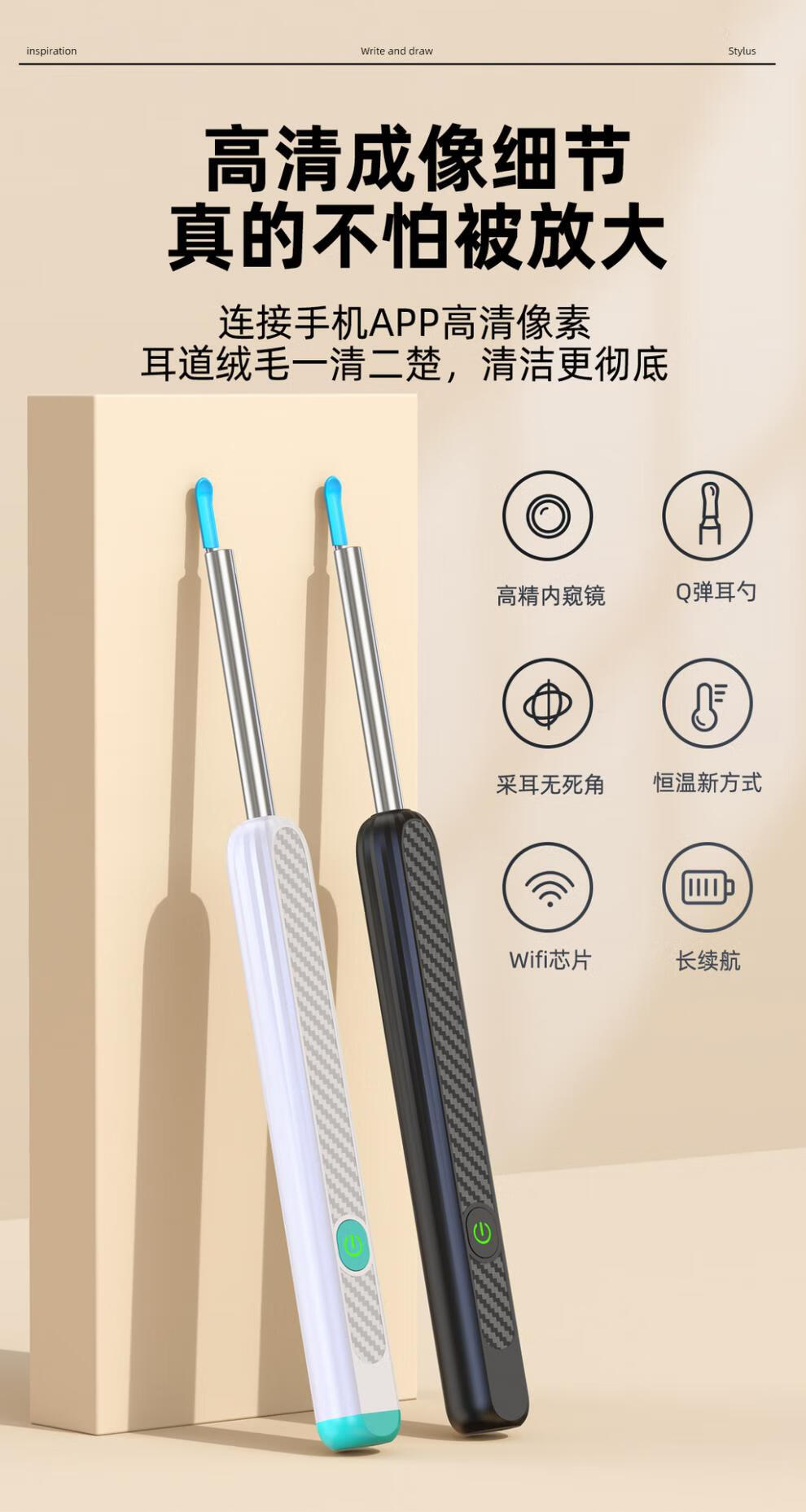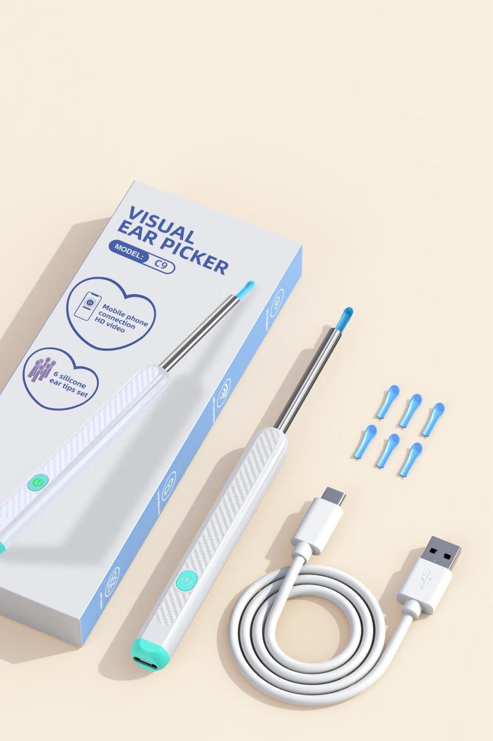 Shantou Lincun's new high-definition visual ear scoop, smart wireless visual ear scoop, ear picking artifact manufacturer, C6 white model + 8-piece set