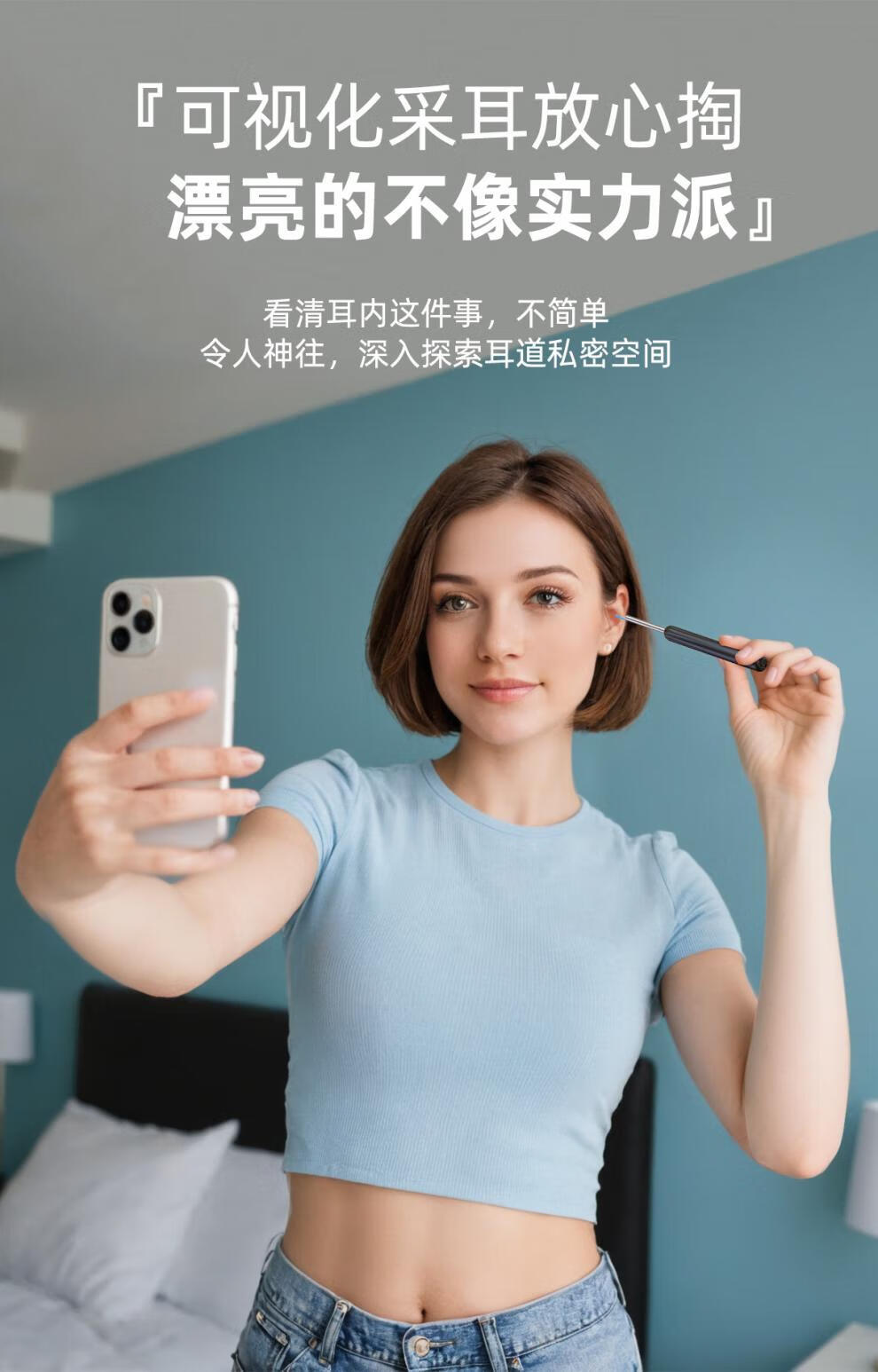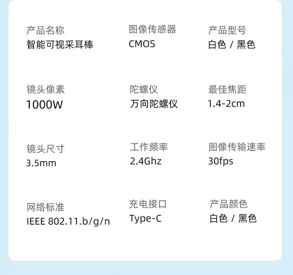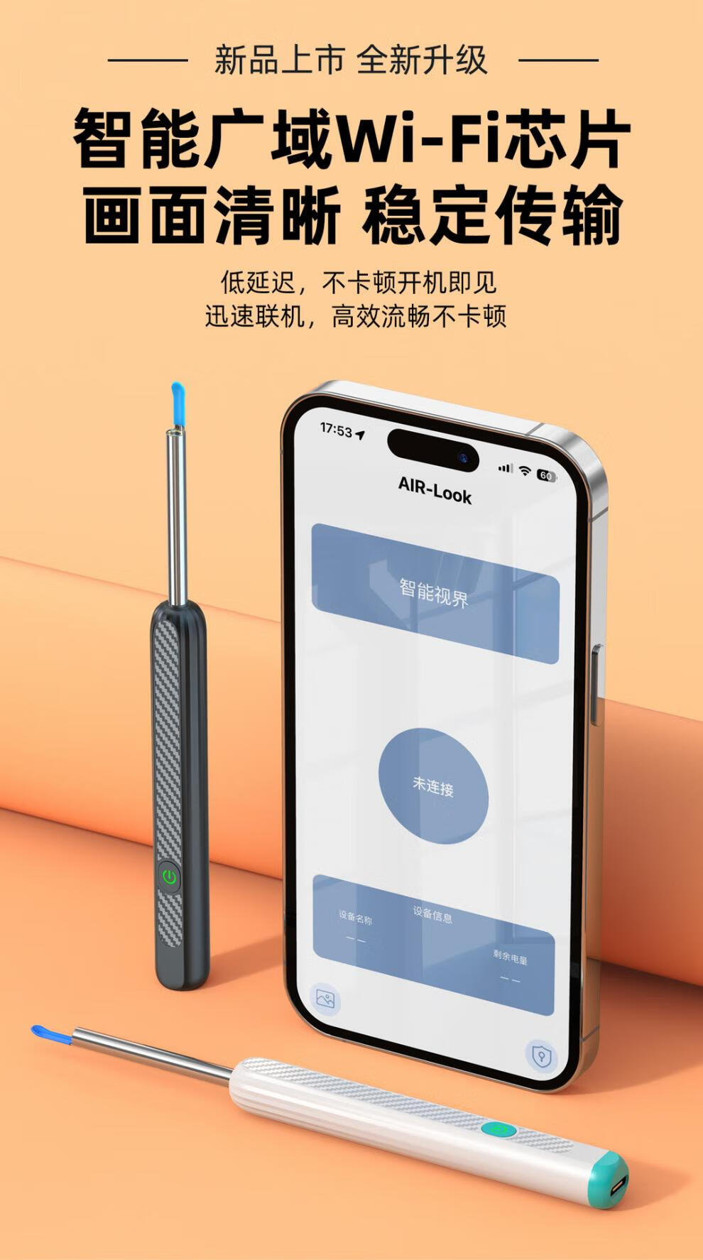 Shantou Lincun's new high-definition visual ear scoop, smart wireless visual ear scoop, ear picking artifact manufacturer, C6 white model + 8-piece set